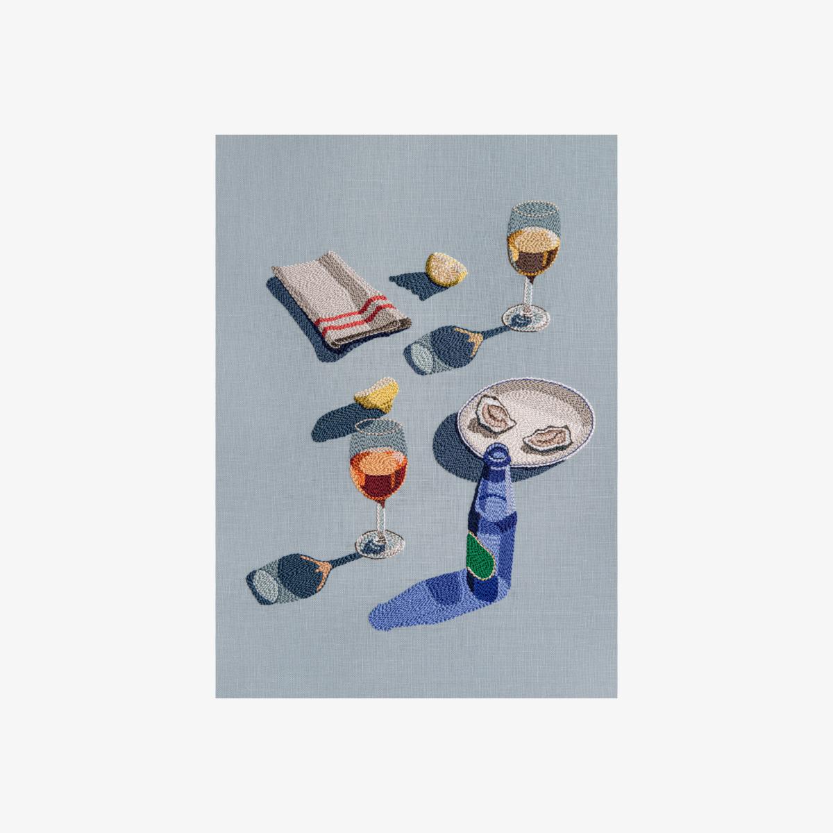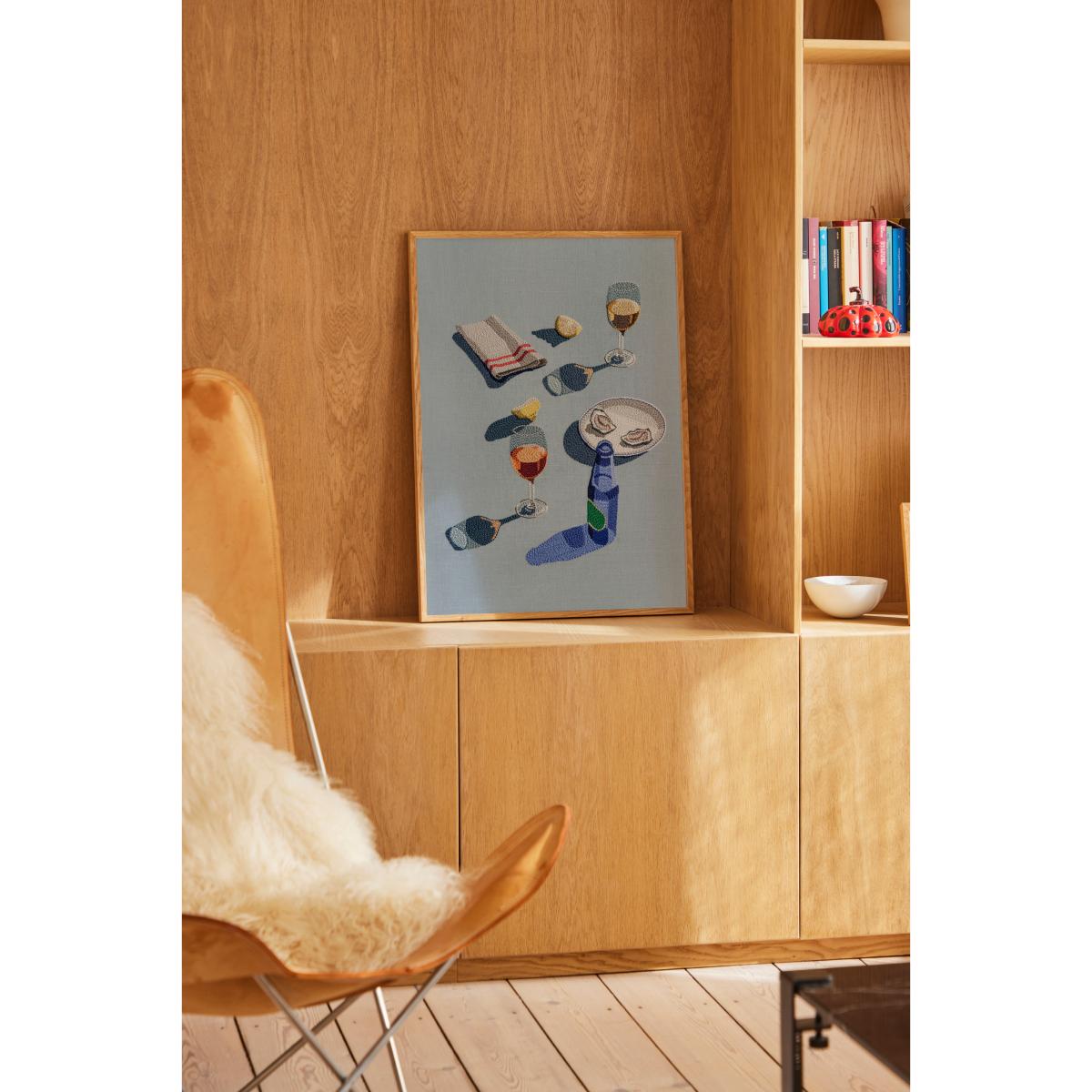 The World is Your Oyster poster from Paper Collective, designed by Adrienna Matzeg, captures the feeling of warm afternoons and togetherness through a detailed embroidery motif. The photograph's nostalgic sheen is translated into textile, providing a unique and artistic dimension. Printed on 100% paper, the poster works equally well on its own as it does alongside other posters on a picture wall.