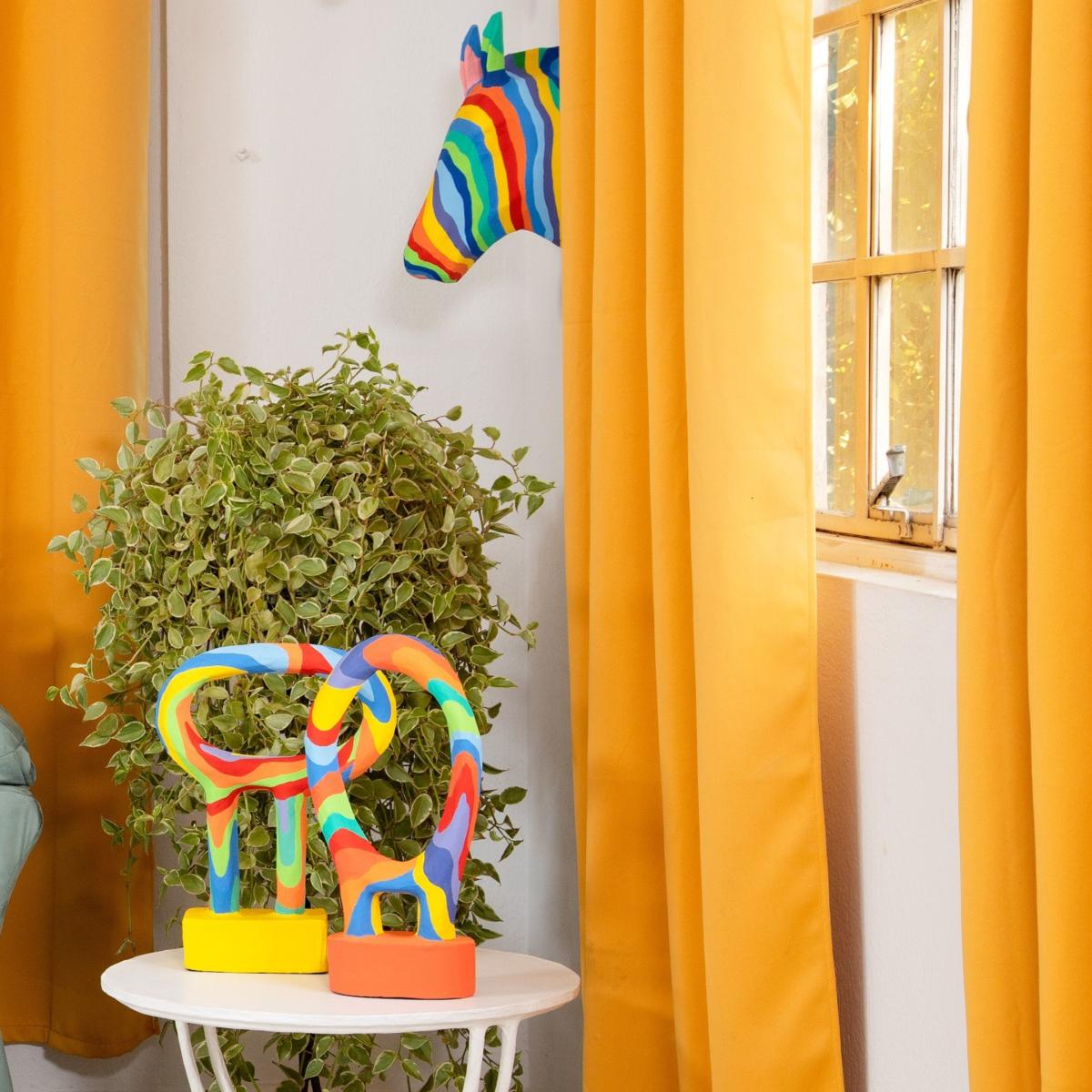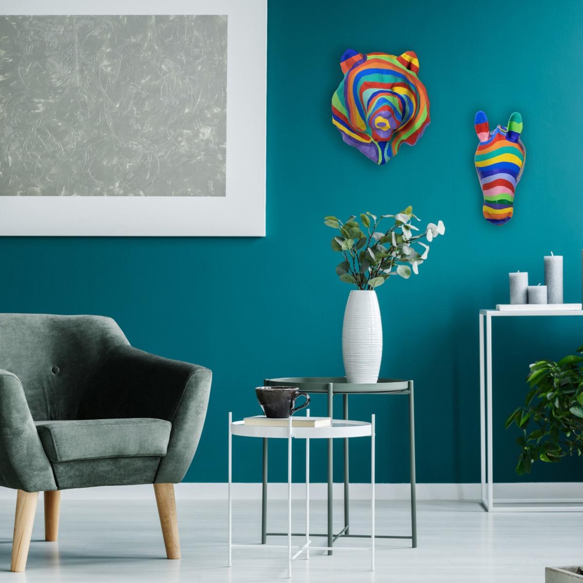 The paper mache rainbow zebra head adds a fun and vibrant statement to any space. I love it for its playful take on traditional sculpture, making it a perfect centrepiece or accent in eclectic, contemporary, or bohemian interiors. It works particularly well when paired with neutral backgrounds, allowing the colours to really pop, or by blending into eclectic schemes that embrace bold patterns and colours. For styling tips, consider positioning it on a bookshelf, console table, or wall-mounted to create a quirky gallery feel. Keep surrounding decor minimal to let the sculpture stand out, or complement its playful spirit with other colourful or textured accessories.