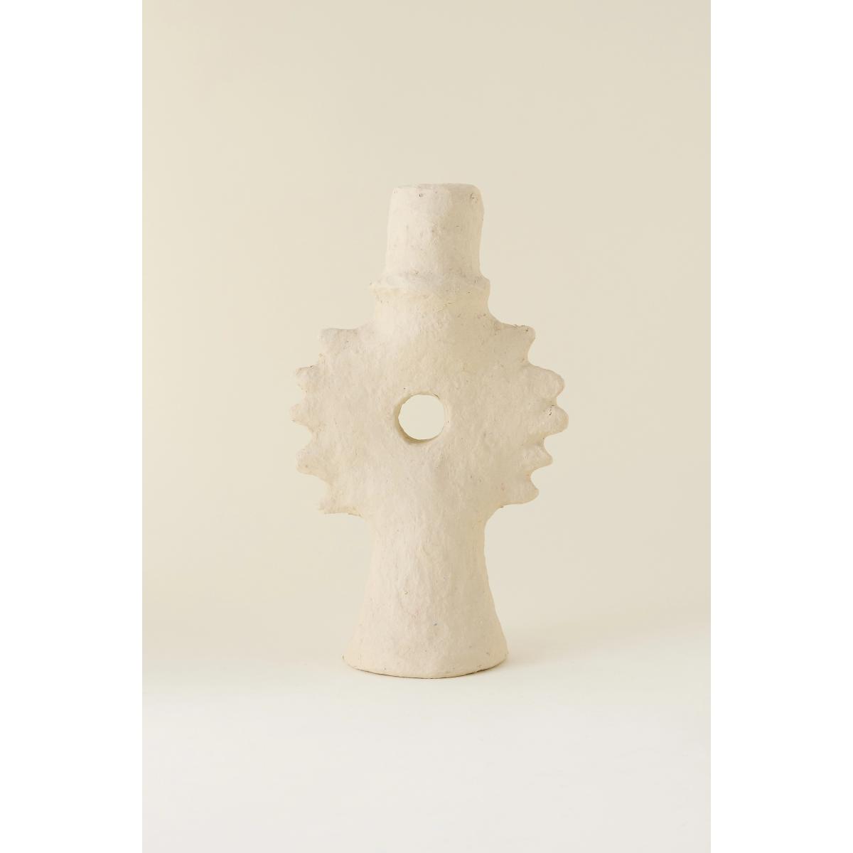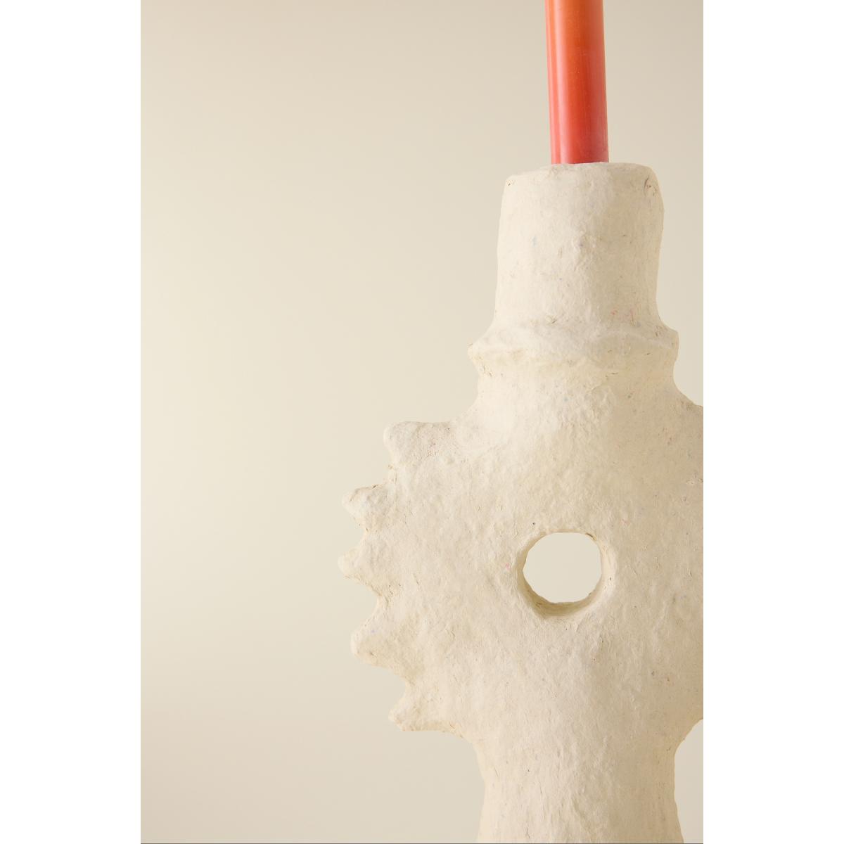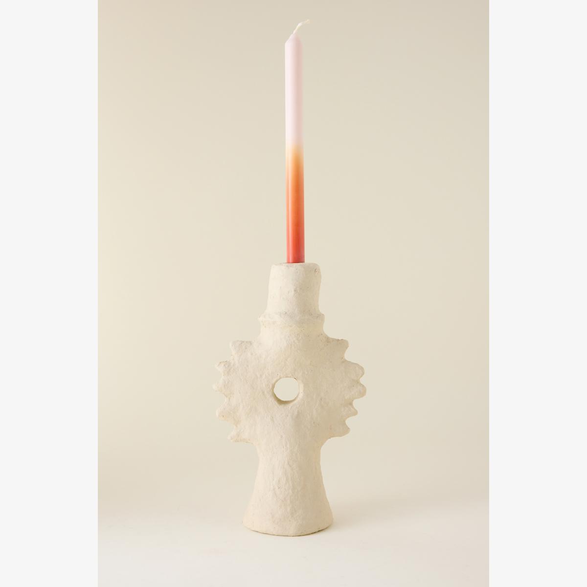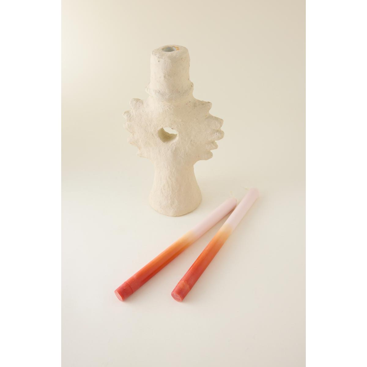 Add some texture and personality to your home with this handmade paper mâché spiked taper holder. * 99% Paper Mache, 1% Iron * Please note, this piece is handmade so no two are exactly alike * Imported