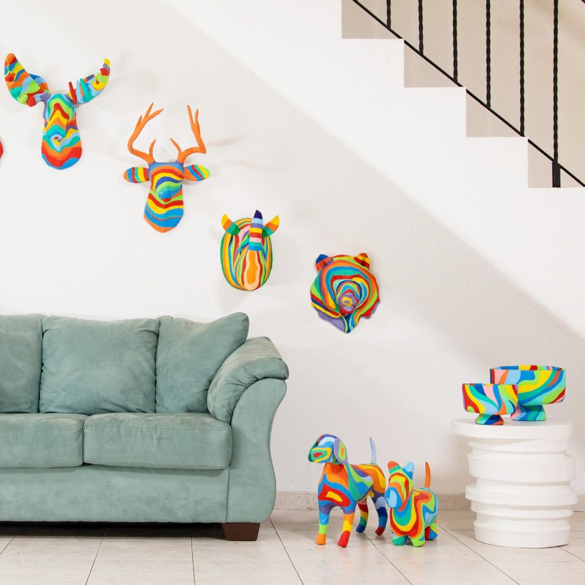 This papier mache large rainbow bowl is adaptable to bold contemporary design spaces. It will add a pop of playful color to any space. From the playroom to the conference room.