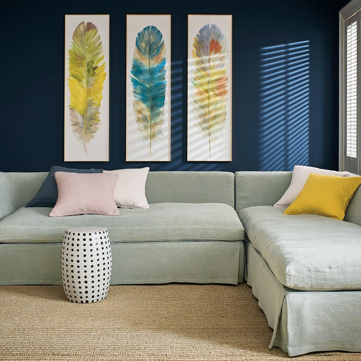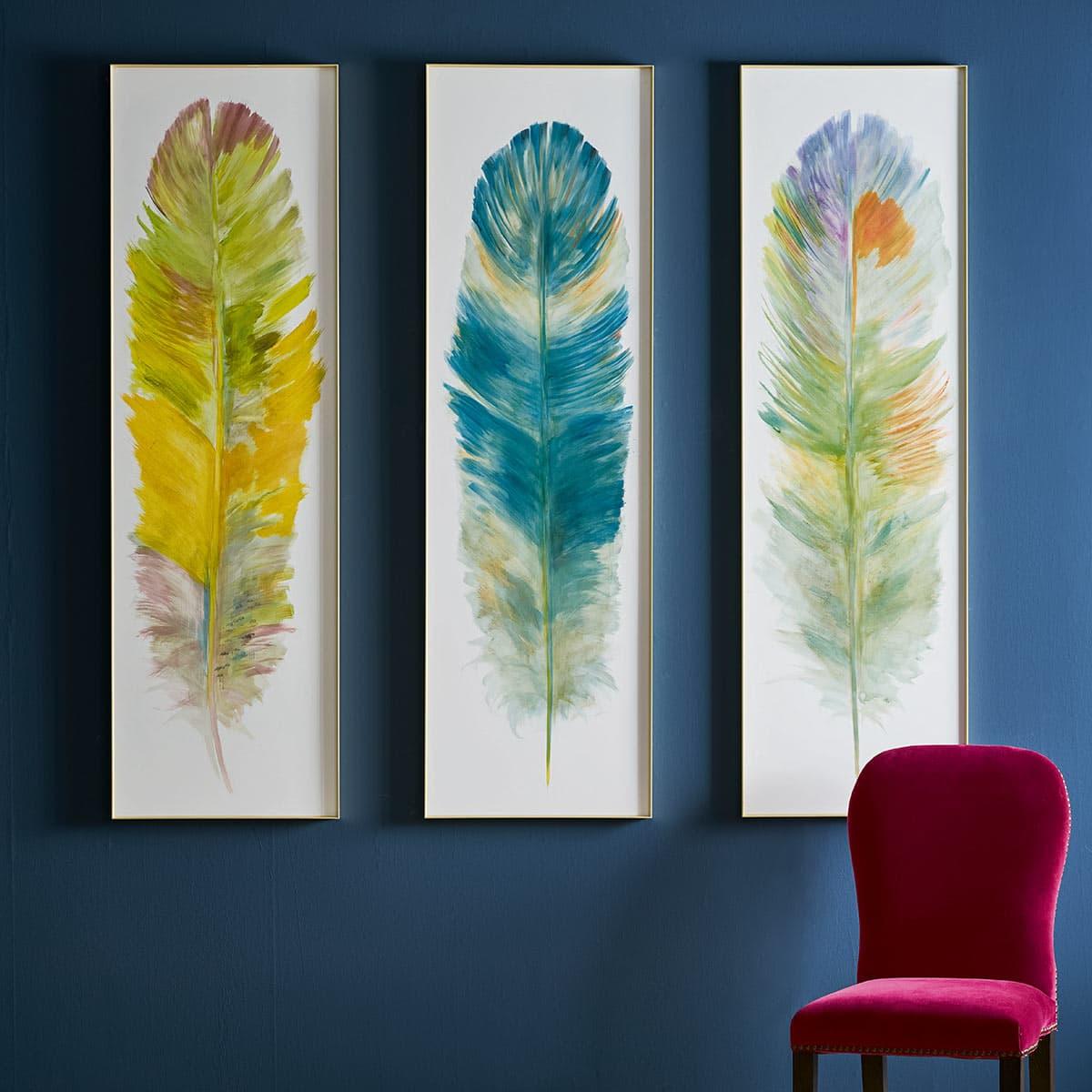 This triptych wall hanging is a great statement piece that adds colour and a sense of movement to any space. I love how the feathers’ vibrant hues can brighten up neutral interiors or complement colourful schemes. It works particularly well in living rooms, bedrooms, or a nursery where a playful, artistic touch is desired. To style it effectively, consider pairing with minimal furniture to let the artwork stand out, or balance the colours with accessories in similar shades. Hanging it at eye level above a sofa or in a corridor can create a focal point, while spacing it appropriately from other wall decor ensures it remains a showstopper without feeling crowded.