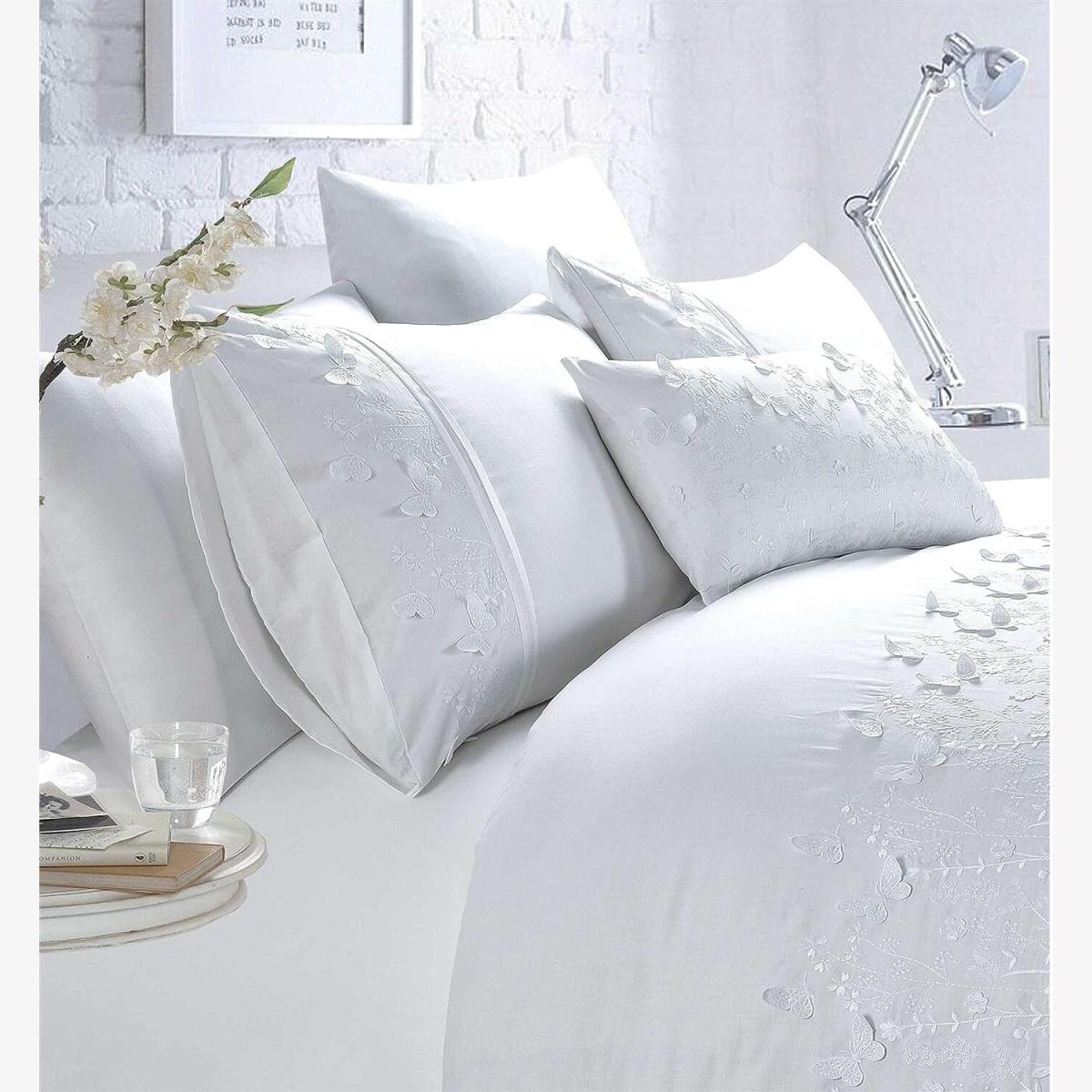Add a touch of spring to your bedroom with these beautiful, butterfly themed embroidered duvet cover sets. Featuring a stunning embroidered floral pattern topped of with beautiful butterflies stitched onto the crisp duvet, this duvet cover set will add some simple, yet luxurious style to any bedroom.