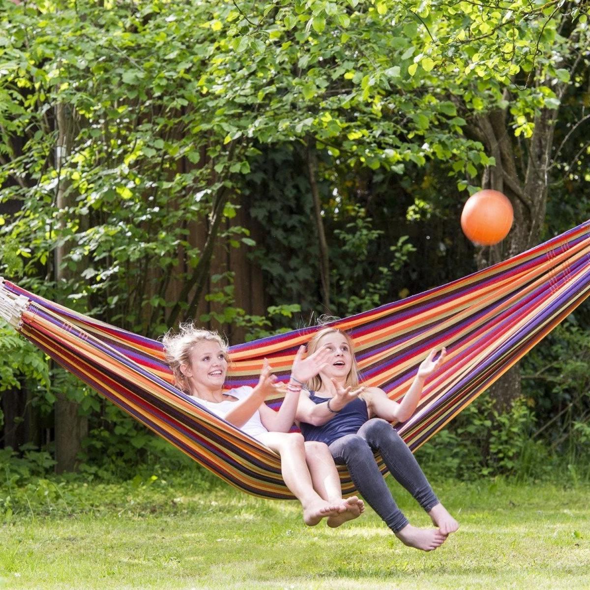 I love the Paradiso Family Hammock for its vibrant, playful design that instantly adds a pop of colour to any space. It's versatile enough to work well in both bohemian and coastal-inspired interiors, as well as in more eclectic or casual settings. For styling tips, consider hanging it in a bright corner of a conservatory or outdoor patio where it can serve as both a practical seating area and a statement piece. Pair it with simple cushions or throws in neutral tones to balance its lively stripes, or incorporate complementary colours from the hammock into nearby accessories for a cohesive look. It’s perfect for creating a relaxed, inviting vibe while adding a splash of colour that enlivens the room.