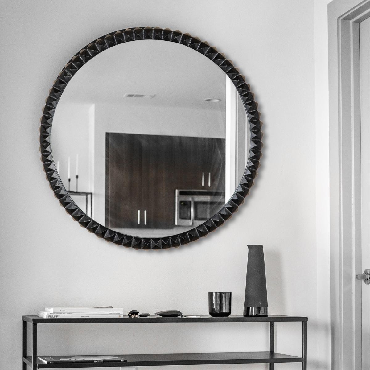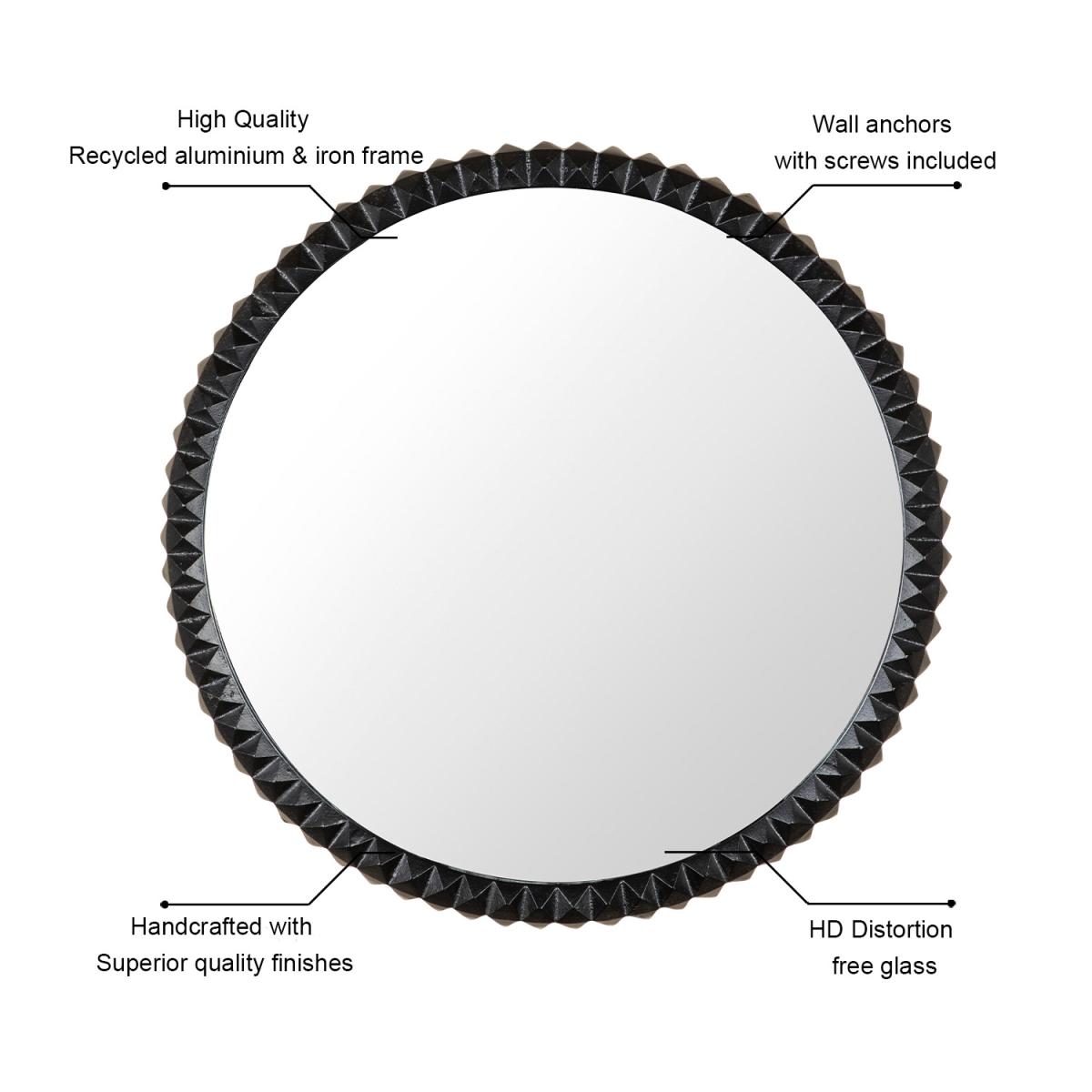 Featuring a circular shape mirror with a diamond edge frame in Matt Black Finish. Our Paragon Wall Mirror is a great look for modern and retro style interiors. This classic style mirror is both functional and decor item.