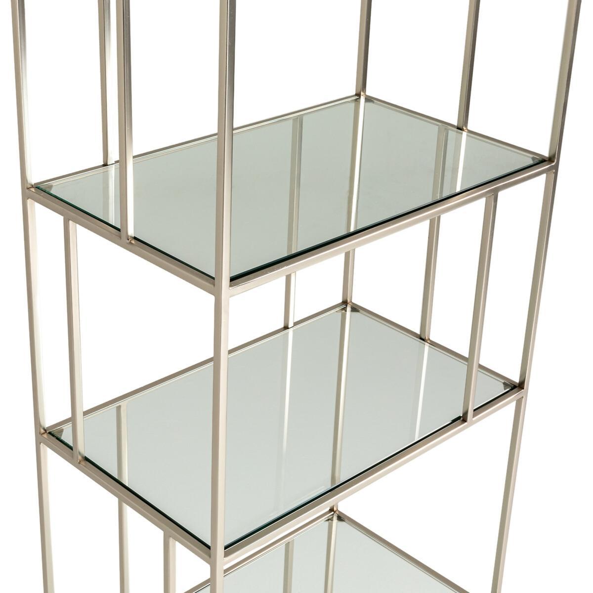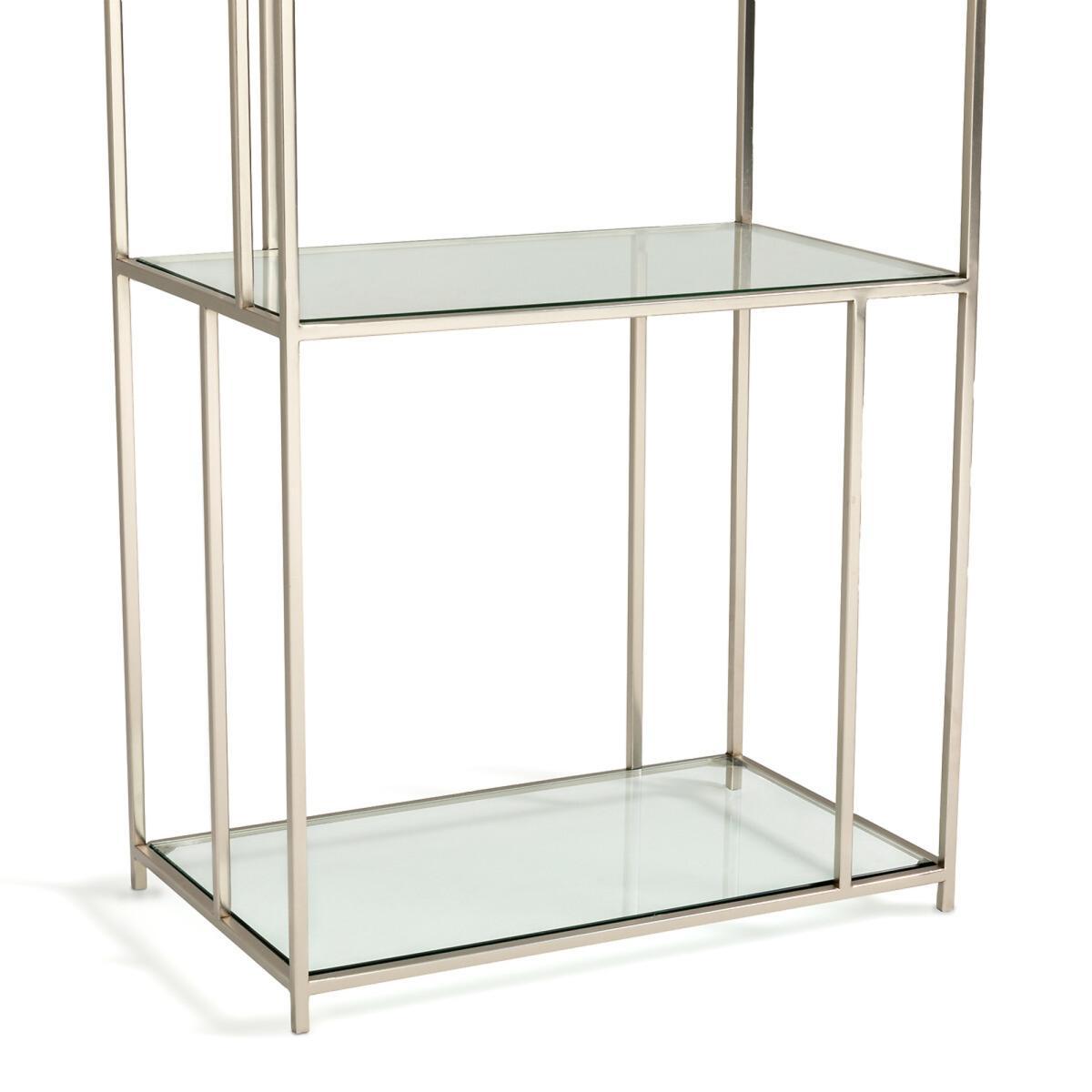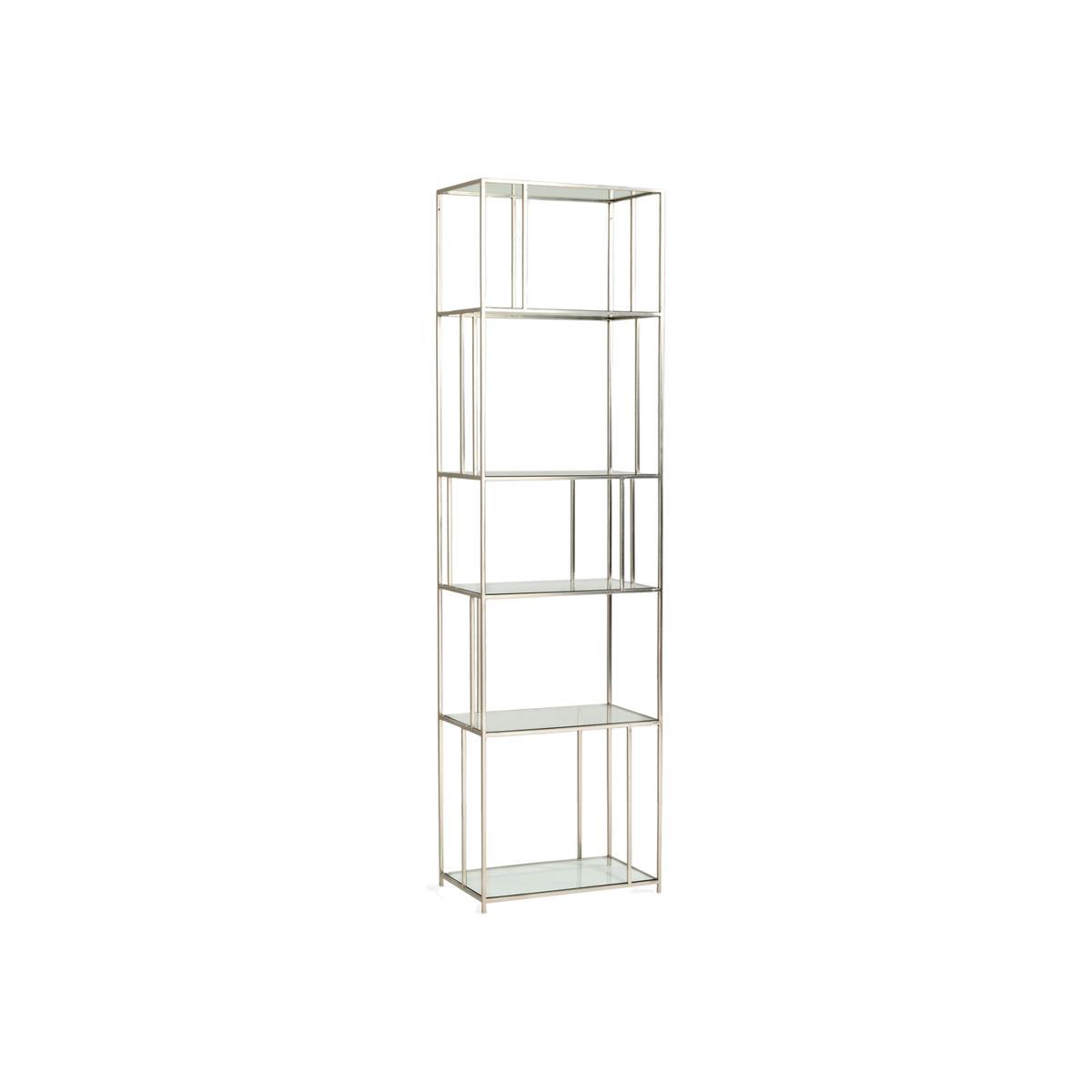 The light and graphic line of this glass and satin nickel metal bookcase will fit into a classic as well as a more contemporary home.
