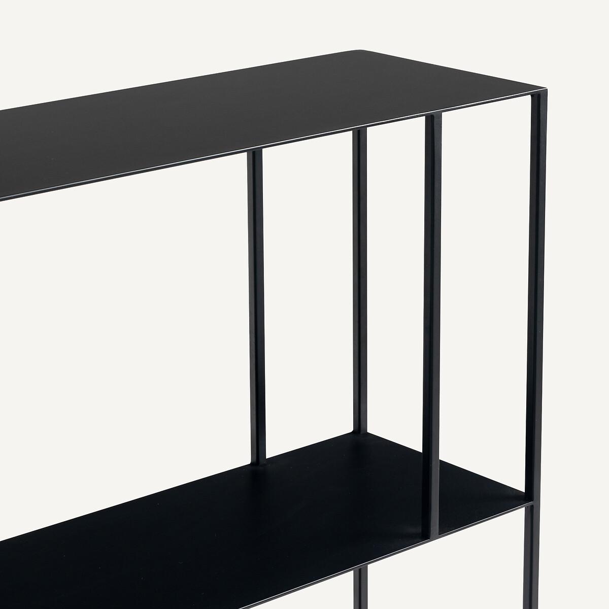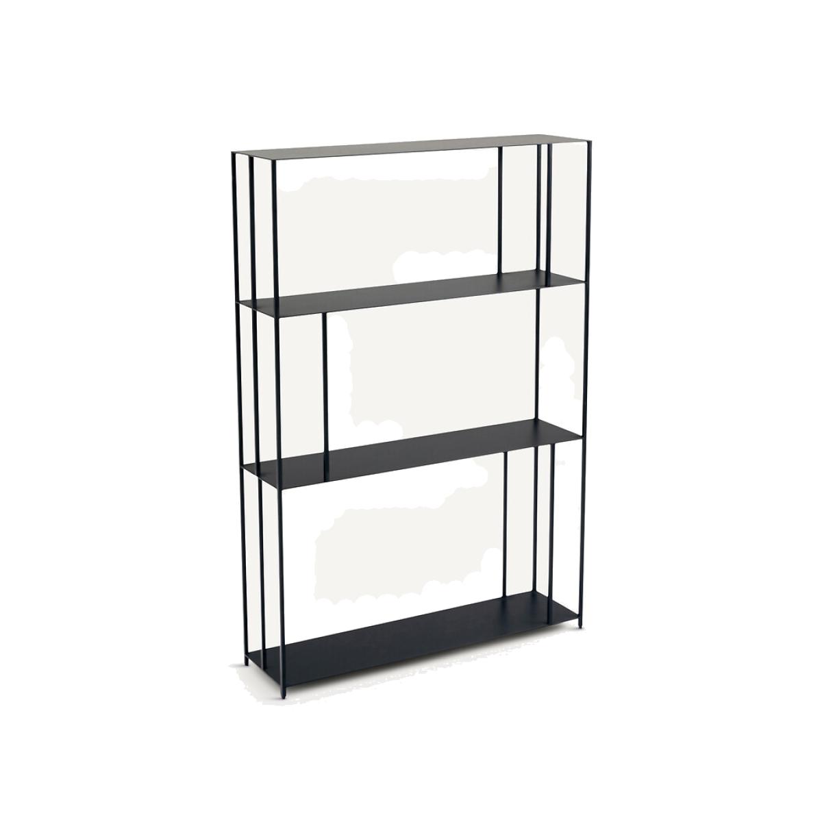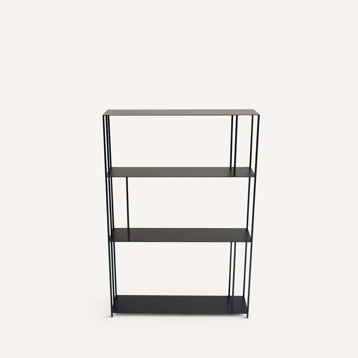 The light, bold look of this metal bookcase will work well in a classic or contemporary setting. Its low height and depth allow it to be positioned easily.