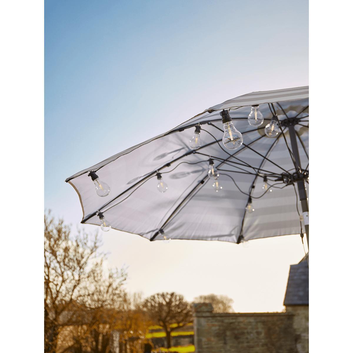 Create a little added magic when gathering in your garden at dusk with our decorative parasol lights. Made up of eight strings from a central wire, our lights are designed to drape easily inside your parasol for a soft light above your table.