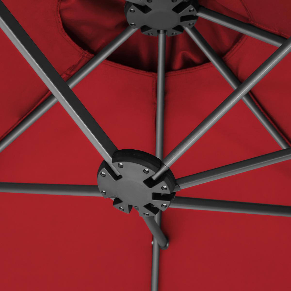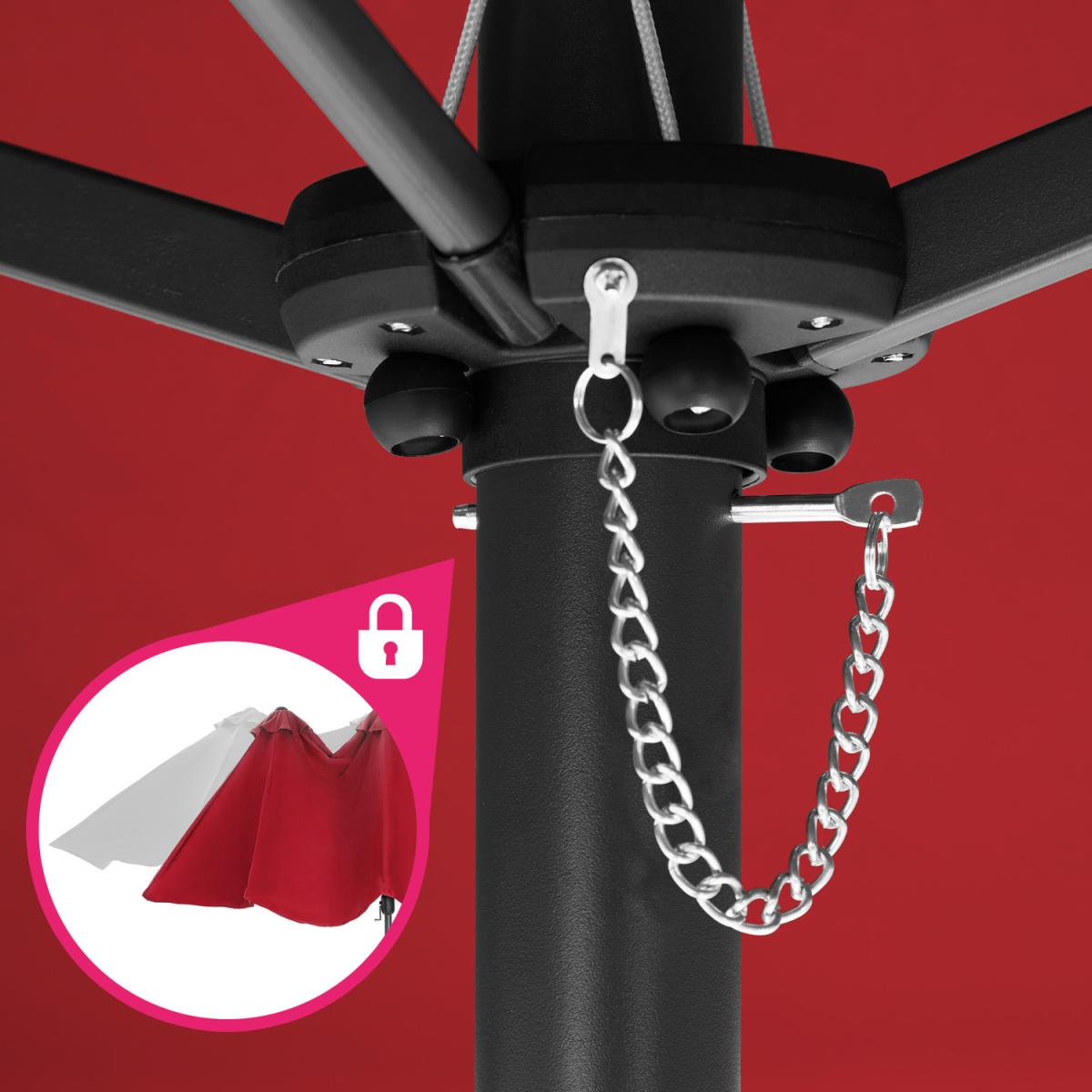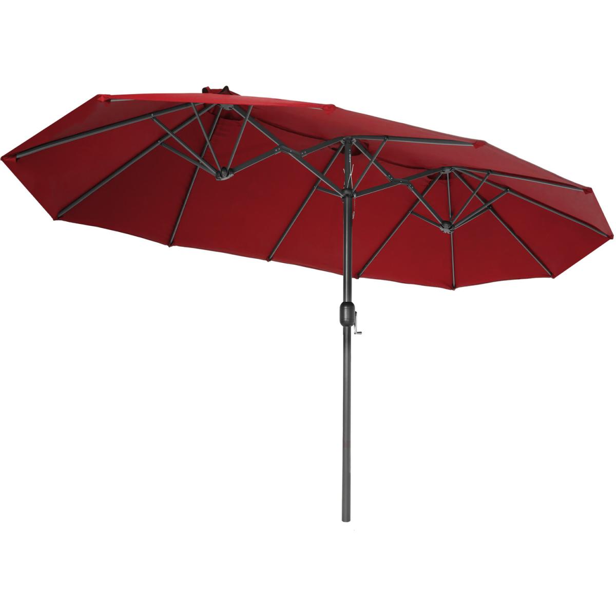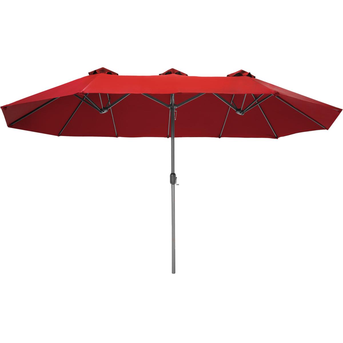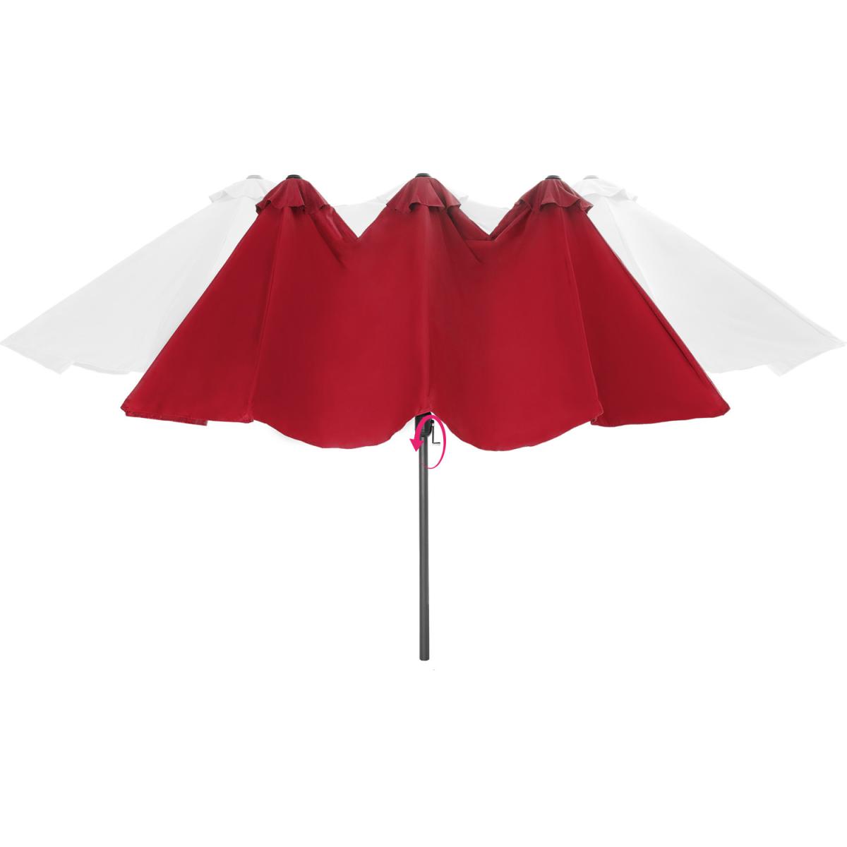 Its special shape makes the large-area Silia parasol by tectake an ideal shade provider for long, oval areas and a real eye-catcher at the same time. With a few turns of the parasols smooth hand crank you can enjoy hot summer days from your home terrace, balcony or garden to the fullest, and ensure you have plentiful shade from the sun. The large covering is also perfect to create more privacy in your garden to use whilst enjoying a sunny day. Despite its low weight, the easy-care outdoor umbrella impresses with its stability and strength. Three small wind roofs help to improve the circulation and reduce the area of attack of the wind. Time to chill under the wide roof of the Silia double parasol from tectake and make the most of your garden.