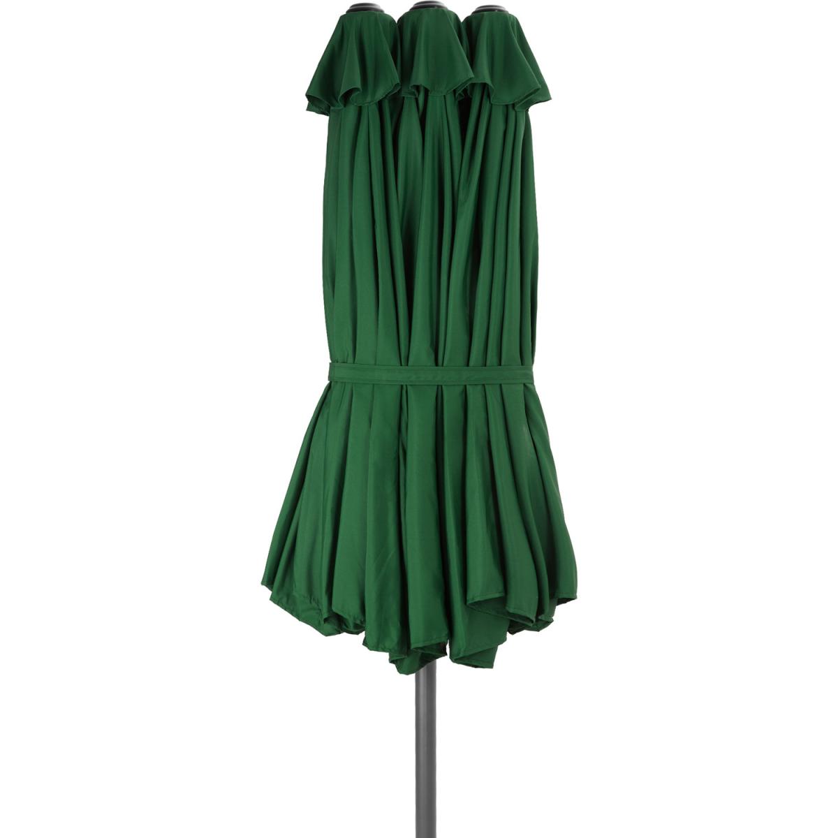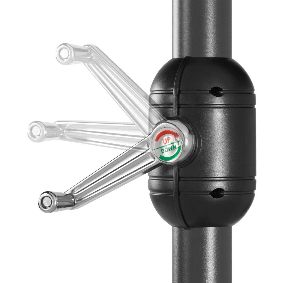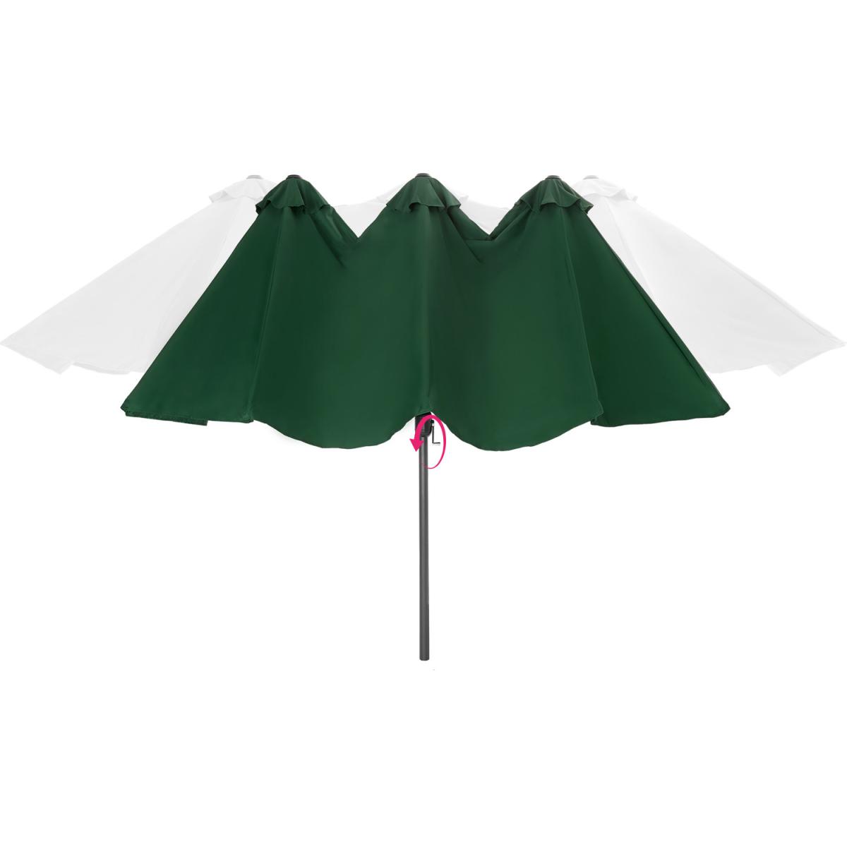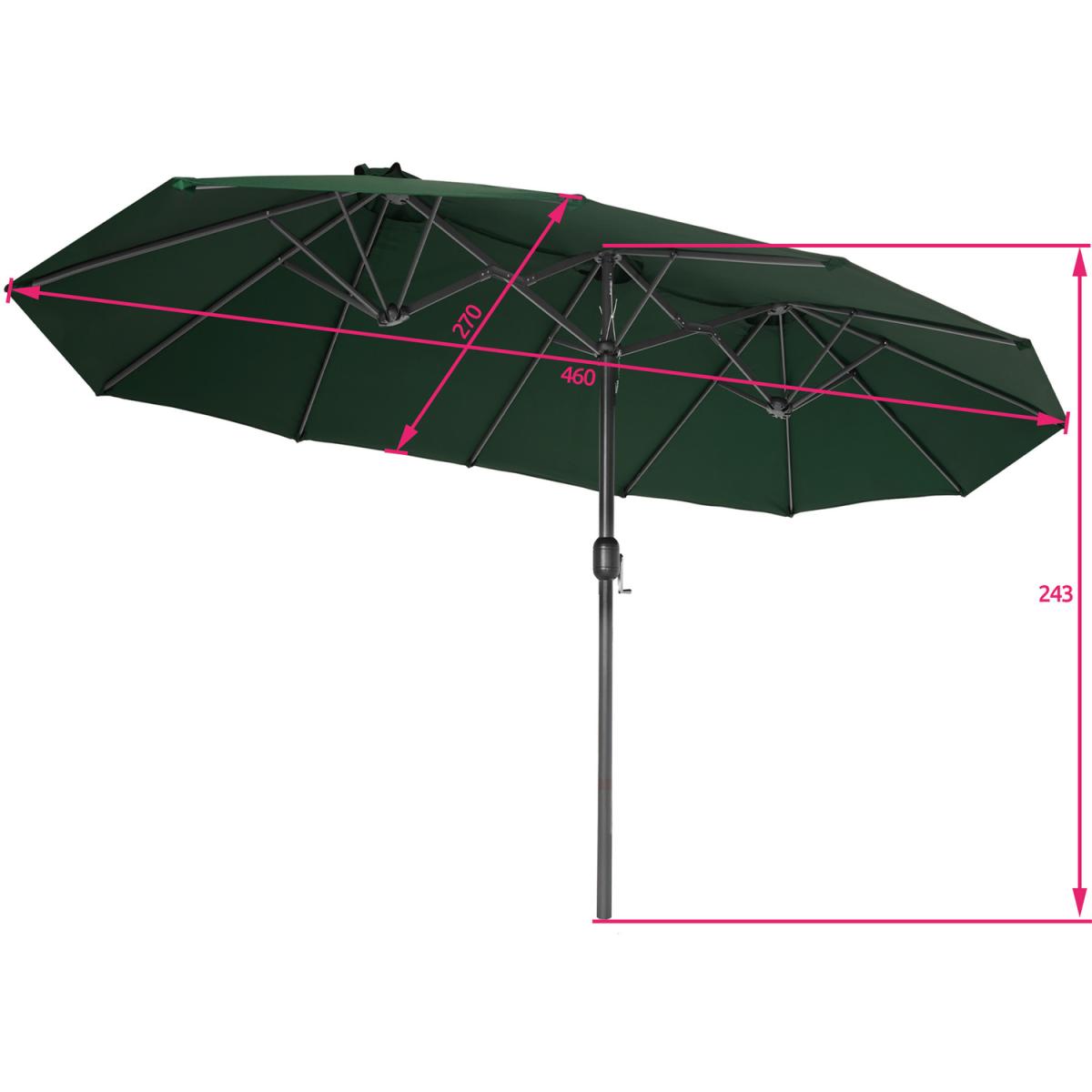 Its special shape makes the large-area Silia parasol by tectake an ideal shade provider for long, oval areas and a real eye-catcher at the same time. With a few turns of the parasols smooth hand crank you can enjoy hot summer days from your home terrace, balcony or garden to the fullest, and ensure you have plentiful shade from the sun. The large covering is also perfect to create more privacy in your garden to use whilst enjoying a sunny day. Despite its low weight, the easy-care outdoor umbrella impresses with its stability and strength. Three small wind roofs help to improve the circulation and reduce the area of attack of the wind. Time to chill under the wide roof of the Silia double parasol from tectake and make the most of your garden.