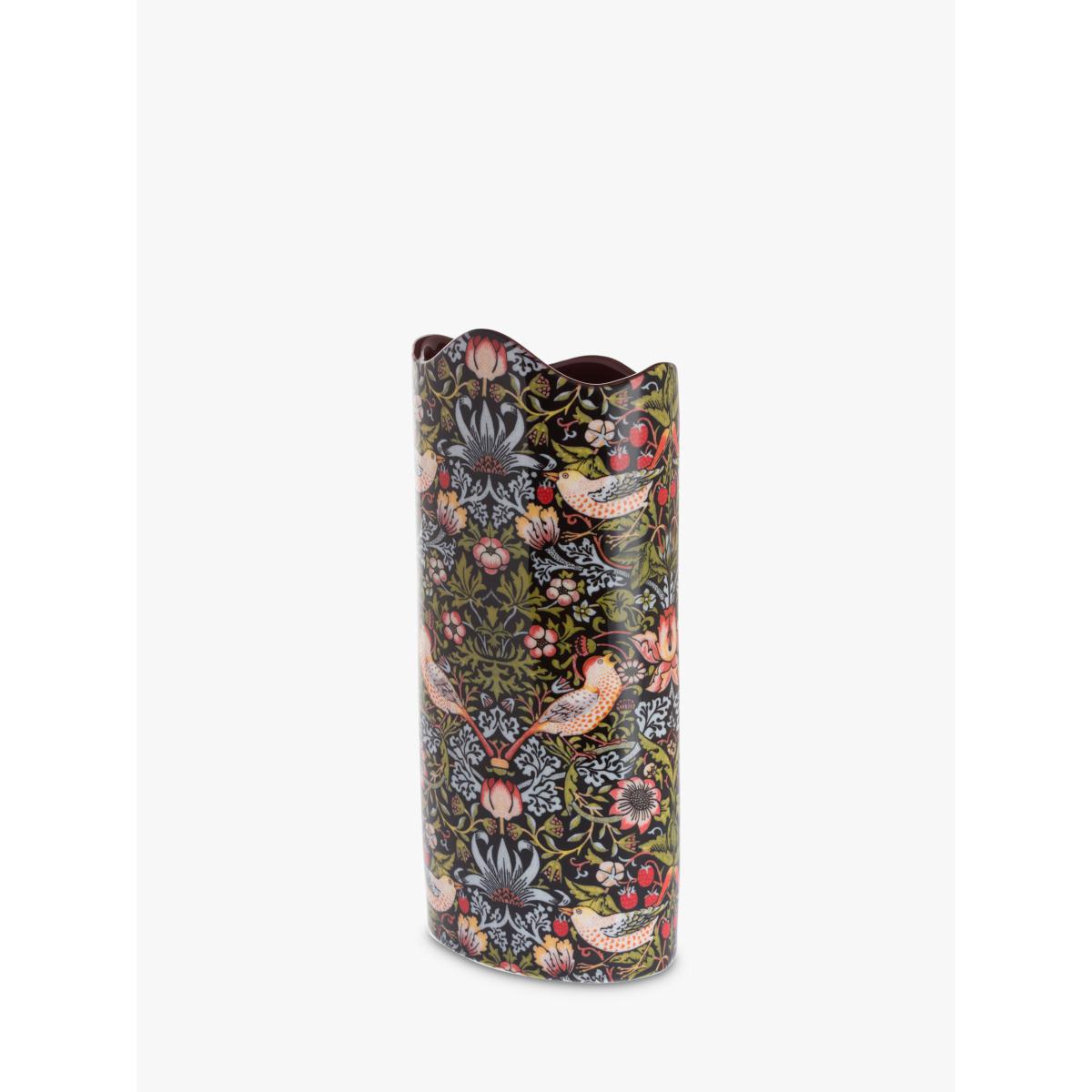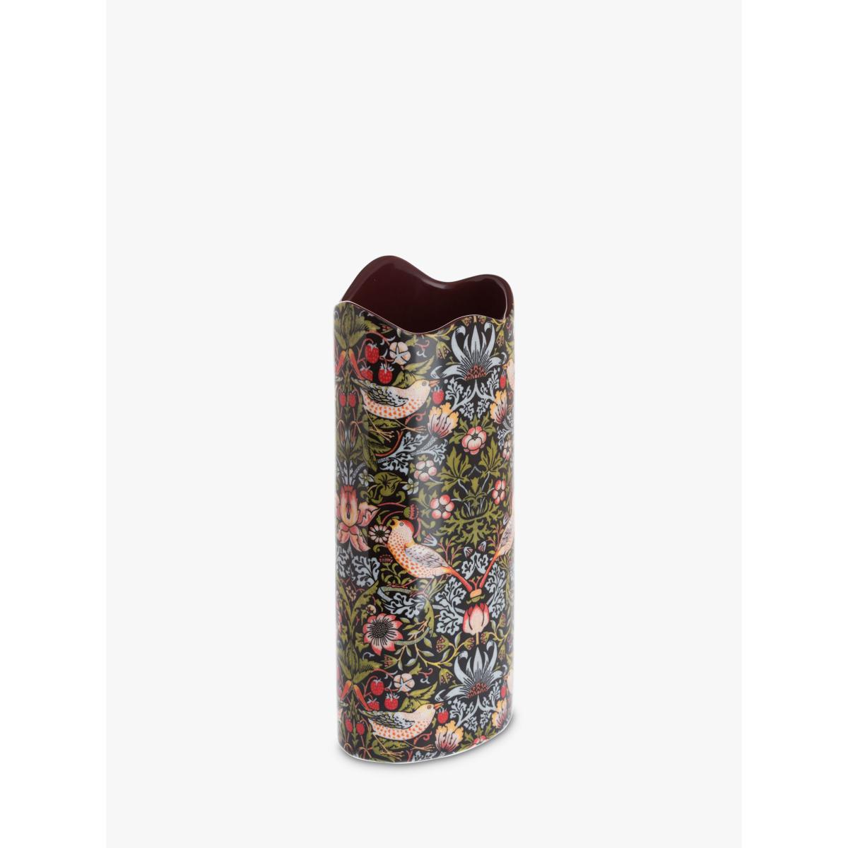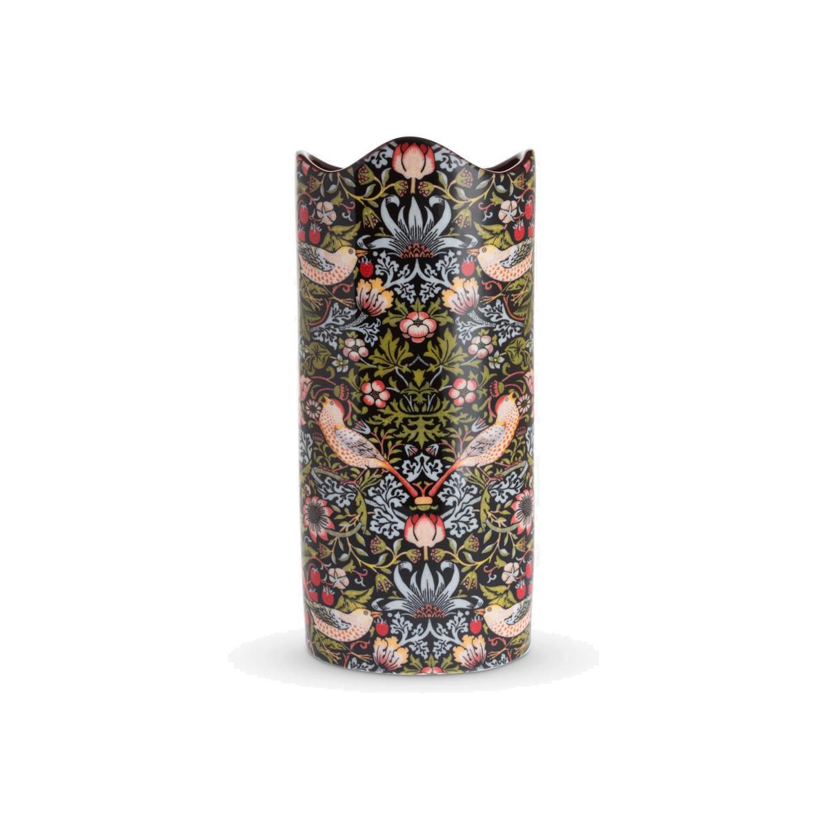Inspired by one of the most popular William Morris designs, the 'Strawberry Thief' is reproduced on this vase, with thrushes and strawberries wrapping themselves around the column. Thanks to the colourful design this vase can hold its own as a standalone piece or be put to full use to display your favourite blooms. Part of an eclectic range of ceramic vases from John Beswick, each showcasing world-renowned pieces of art in silhouette.
