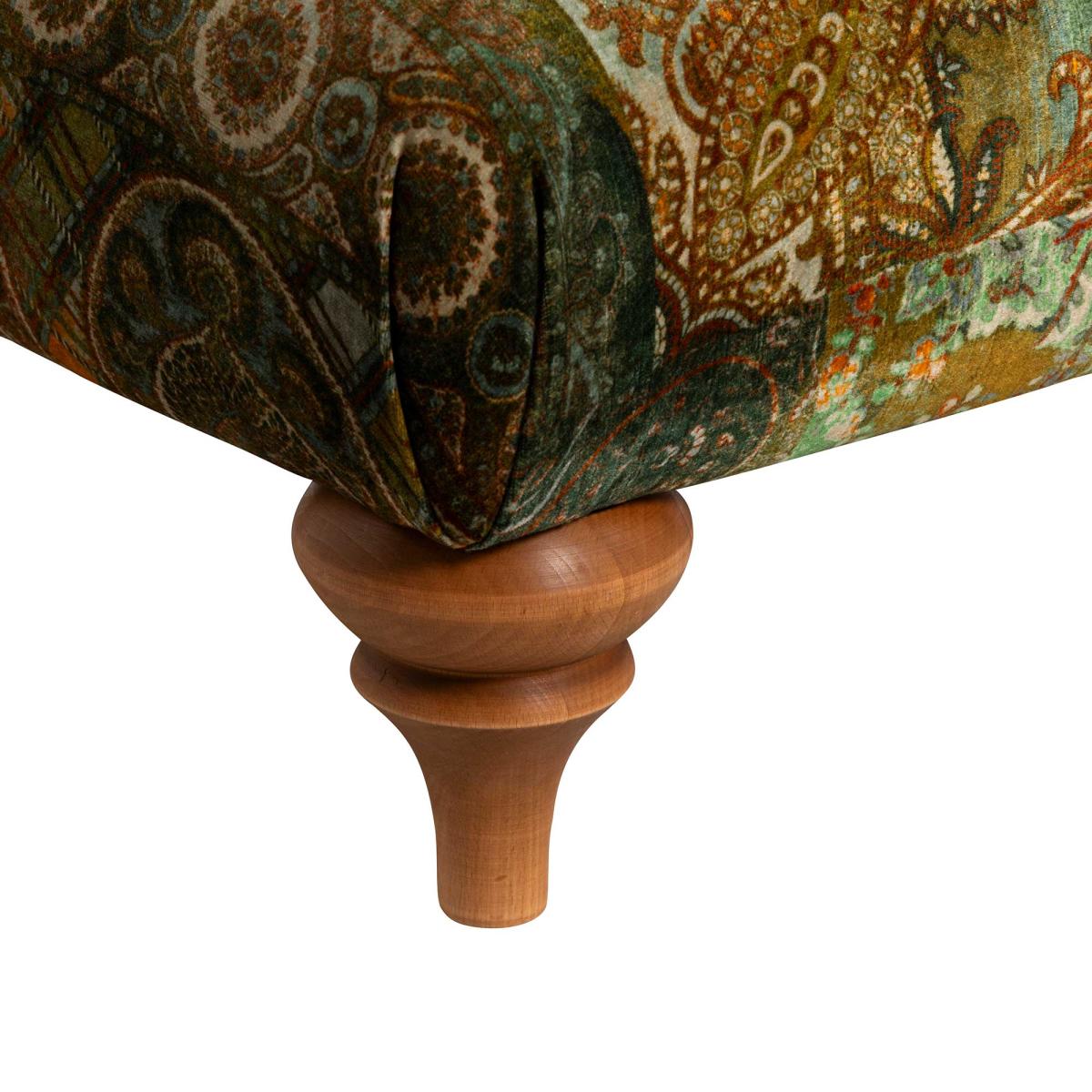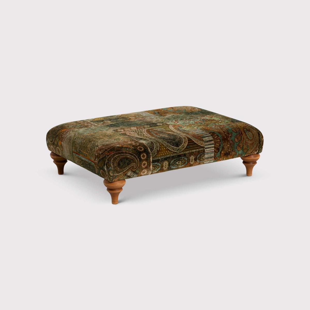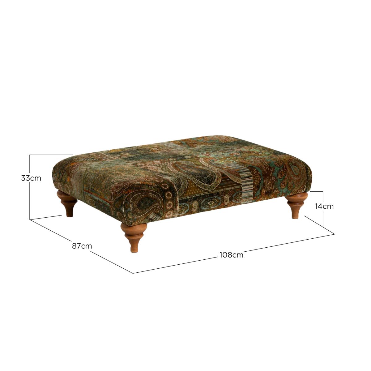 The green footstool is a versatile piece that adds a pop of colour and a touch of personality to both traditional and contemporary interiors. I love it for its compact size and understated wooden legs, which make it adaptable as a footrest, additional seating, or even as a low side table when styled with a tray. Its rich patterned fabric can anchor a neutral colour scheme or complement botanical or vintage-inspired spaces. For styling tips, try pairing it with muted upholstery or layering with textured cushions to create a cosy corner. It works particularly well in living rooms or bedrooms, where it can serve both functional and aesthetic purposes, making it a practical yet stylish addition.
