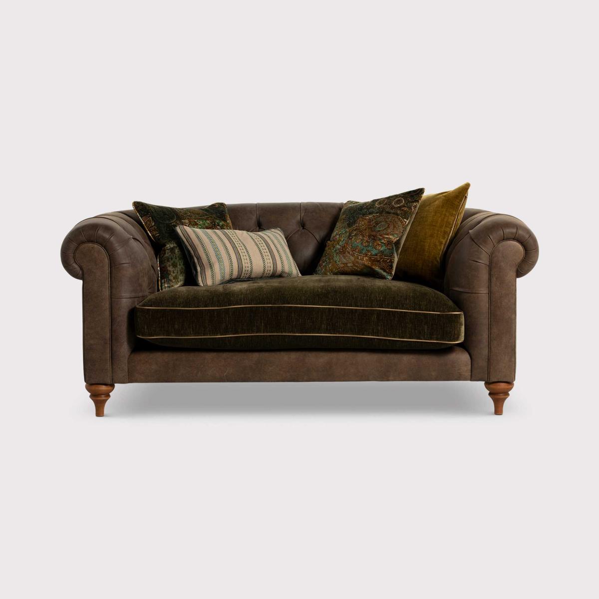 This brown loveseat is a versatile piece that adds classic charm to both traditional and eclectic interiors. I appreciate its timeless rolled arms and rich upholstery, which create a cosy and inviting feel. It's perfect for smaller living rooms or as part of a layered seating arrangement. To style it effectively, pair it with textured cushions in earthy tones or muted patterns to enhance its vintage appeal. Practical tips include adding a contrasting rug underneath to ground the space and layering throws for added comfort. Overall, it’s an approachable choice that balances elegance with everyday practicality.