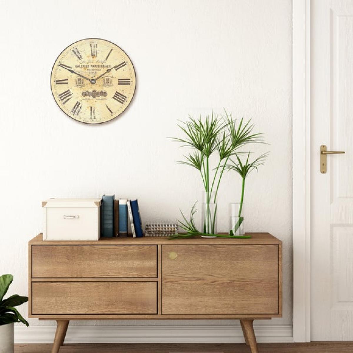 I love this vintage-style clock for its timeless appeal and subtle patina that adds character without overpowering a space. It works particularly well in eclectic, rustic, or vintage-inspired interiors, but also complements modern schemes when you want a touch of antiqued charm. To style it effectively, hang it at eye level above sideboards or console tables to create a focal point. Pair it with other antique or natural materials, like wooden furniture or potted plants, to keep the look cohesive. Keep the surrounding decor minimal for maximum impact, or use it as a statement piece in a gallery wall layout for a curated, curated look.