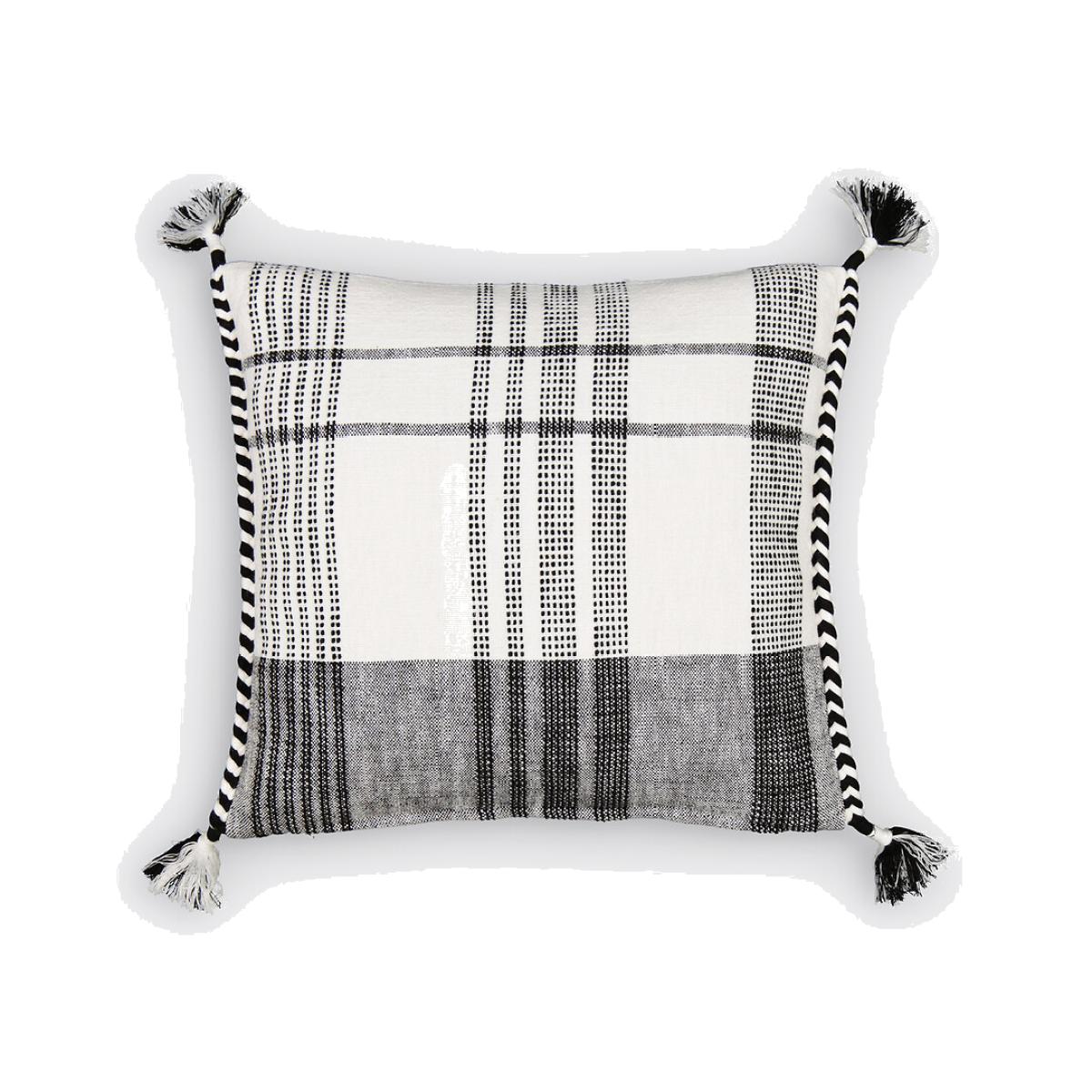 Textured cotton, woven cross stripes, two-tone braiding...: the Parfeti cushion cover is as simple as it is graphic. Placed on a sofa or an armchair, it adds a decorative touch to an interior. Product Details • 100% cotton • Crossed stripes woven on both sides • Two-tone braid finish and tassels at the corners • Zip fastening. Size • 45 x 45cm • OEKO-TEX® Standard 100. Standard 100 certification by OEKO-TEX® tests textile products for harmful substances via an independent, international label.