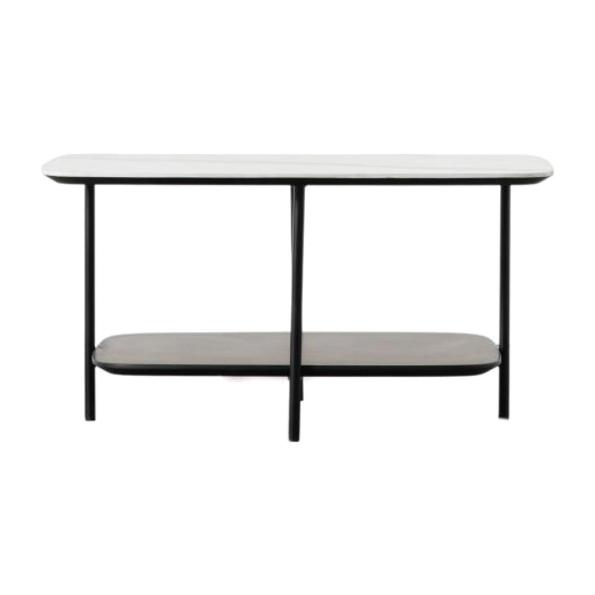 Featuring gently rounded corners, the stylish design of this eye-catching coffee table creates a clean, contemporary look. The top is white faux marble, which is perfectly complemented by the black metal frame, and the table has a lower shelf, with a black painted finish, for added practicality. The collection is part of our Packed-Flat Design Project, offering easy delivery to any room in any property, whilst reducing the packaging needed. Easy assembly is required, but all the tools needed are supplied.