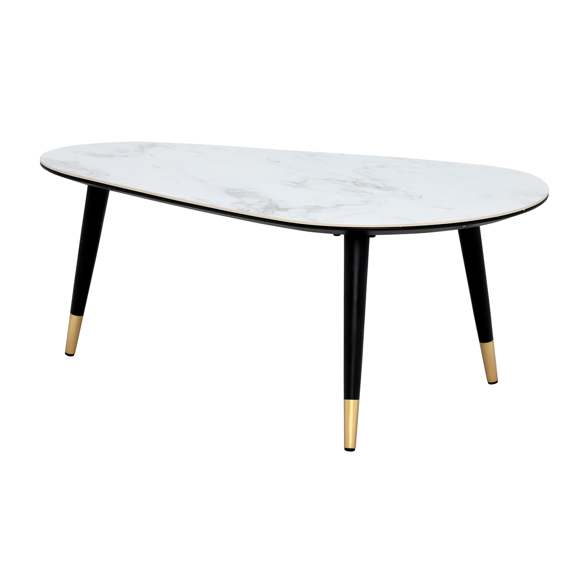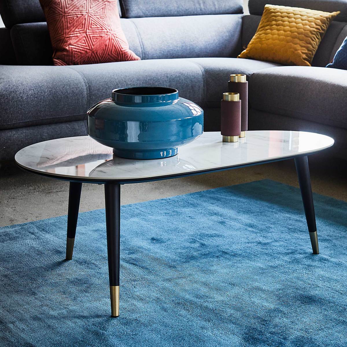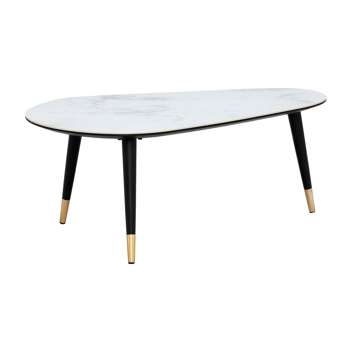 Modern style, sophistication and elegance are a combination that just works – as can be seen with the stunning Parian Coffee Table. A curvaceous shape is beautifully complemented by a white cararra finish top and a delicate splayed base for a sleek contemporary finish, making the Parian a perfect centre piece for any living space. Completing the Parian’s modern look, metal leg caps give this stunning coffee table a metallic edge that works in a range of decors.