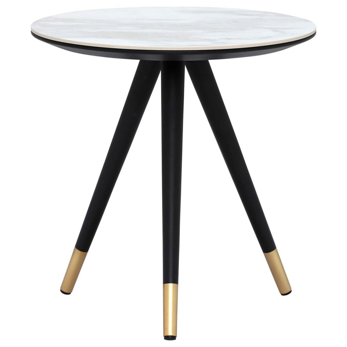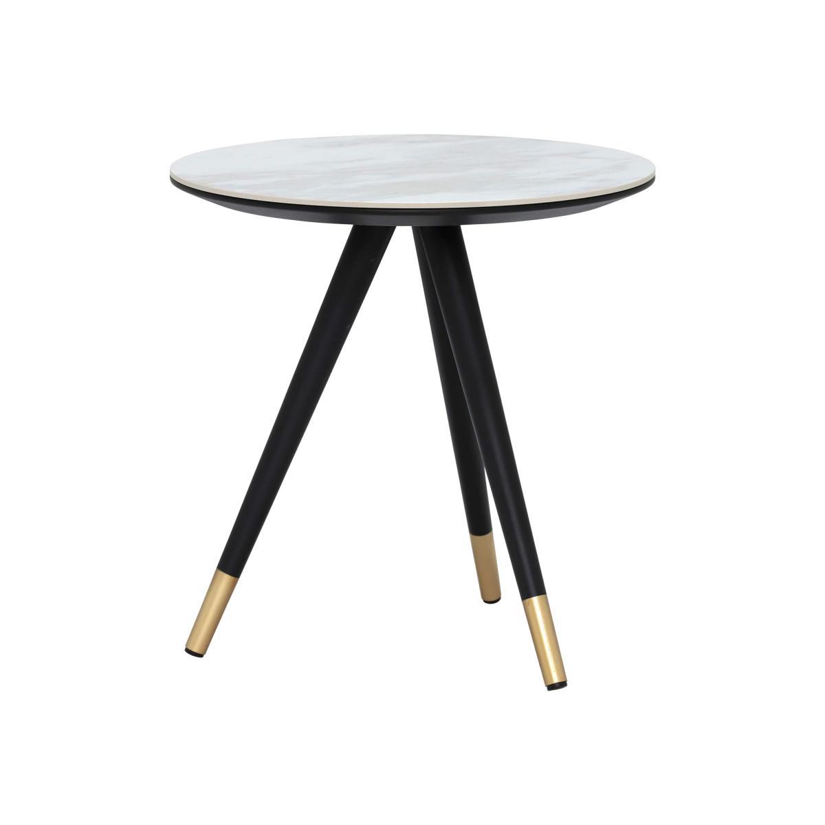 Design. Every lonely chair needs a handy surface-space accompaniment, and why not make it a stylish choice with the Parian Corner Table. A sleek design that incorporates the sophisticated finish of a marble look top and a black powder splayed base with chic metallic caps, the Parian offers it all when it comes to sleek modern style. Sure to stand out in any room it stands in, decorate with statement lighting or a contemporary candle holder to really showcase the beauty of the Parian.