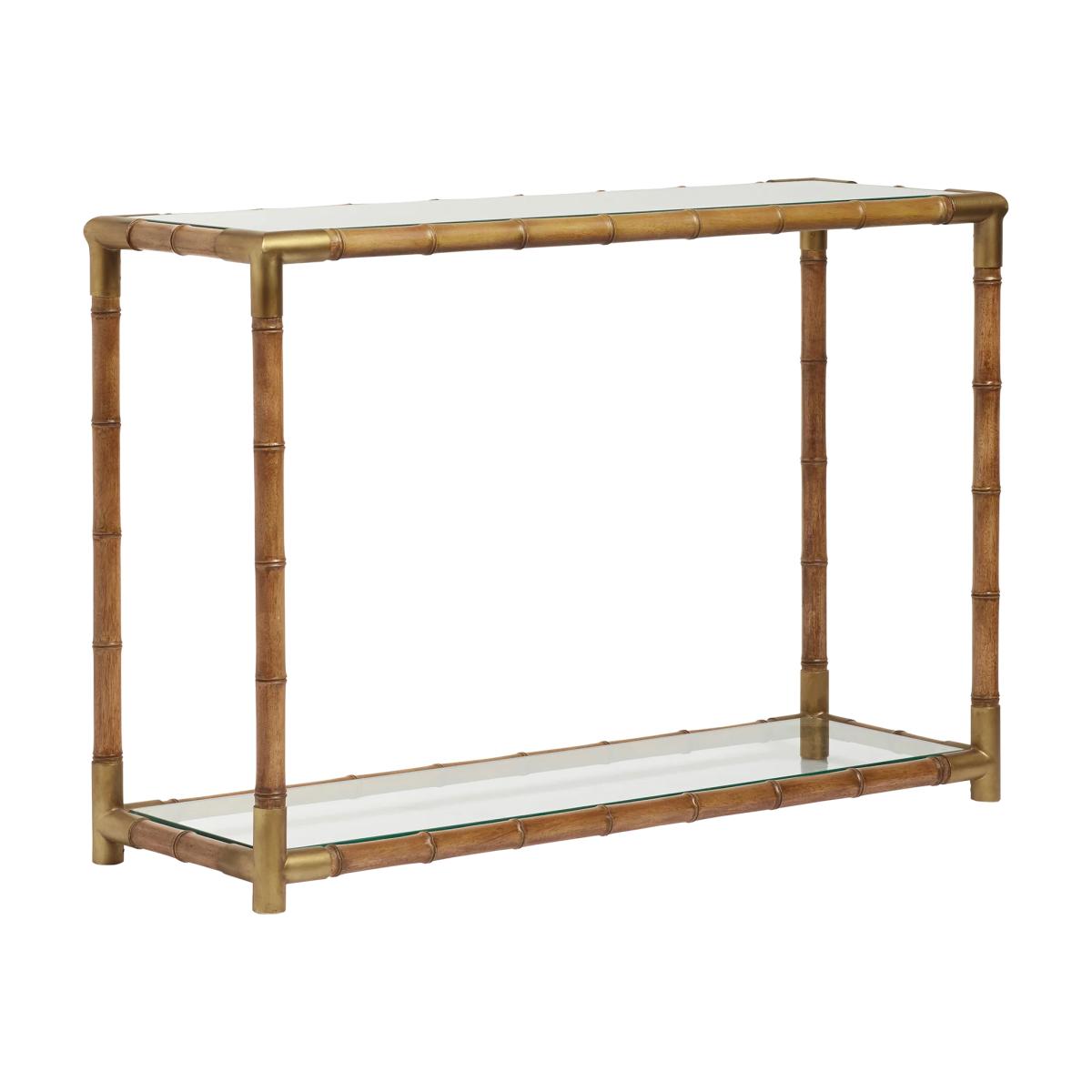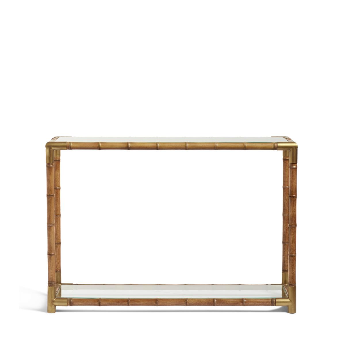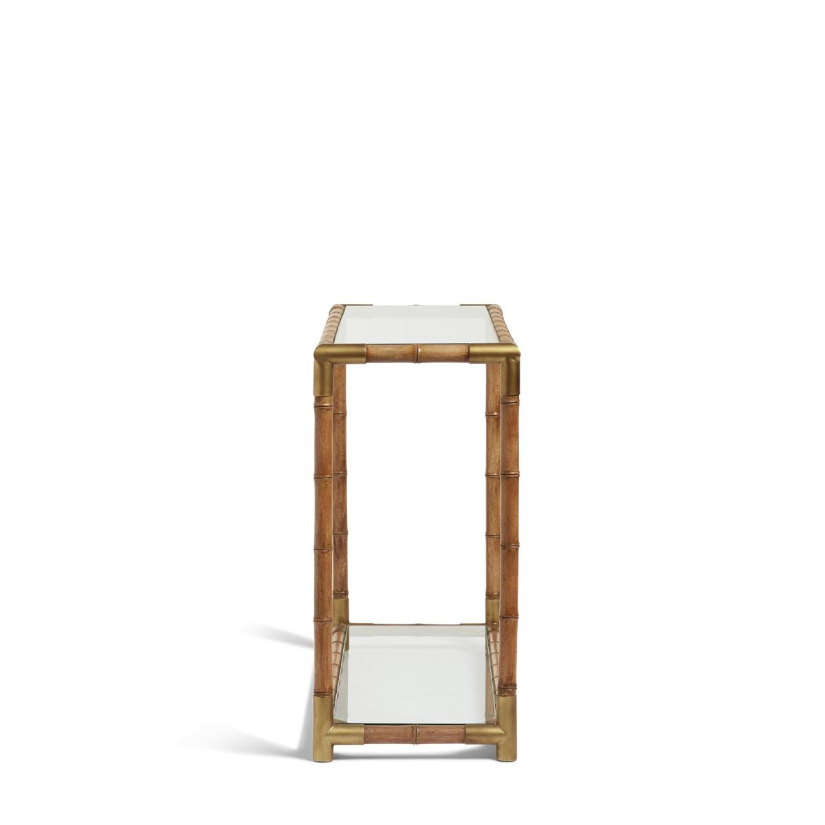 Bamboo has an extremely pleasing aesthetic form, yet it’s not a practical material for structured furniture due to its tendency to warp. Our Pariana captures the appearance of bamboo with the use of turned mindi wood, painted for realistic effect, so that glass panels can be fixed to offer two steady surfaces.