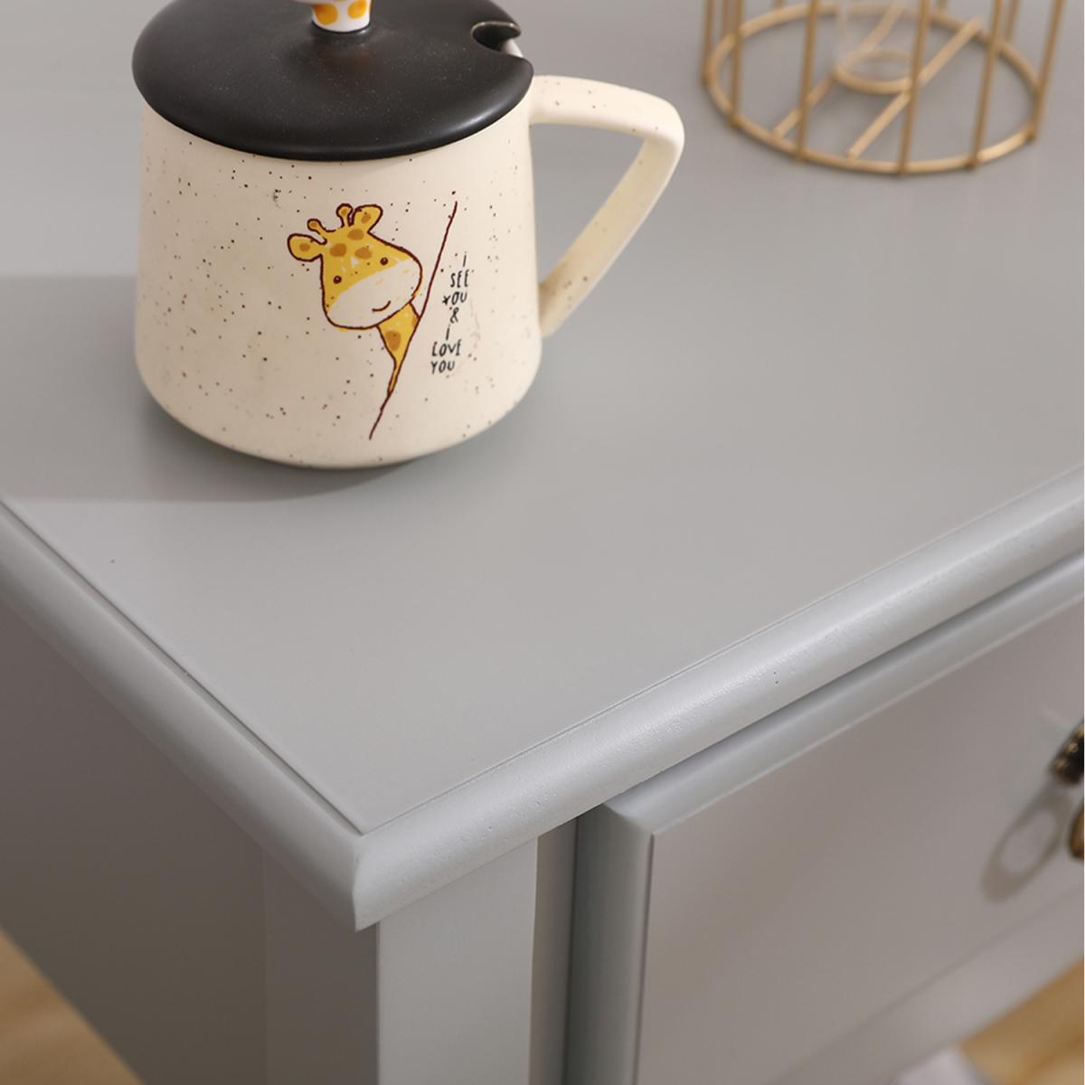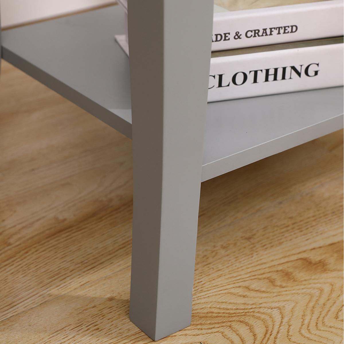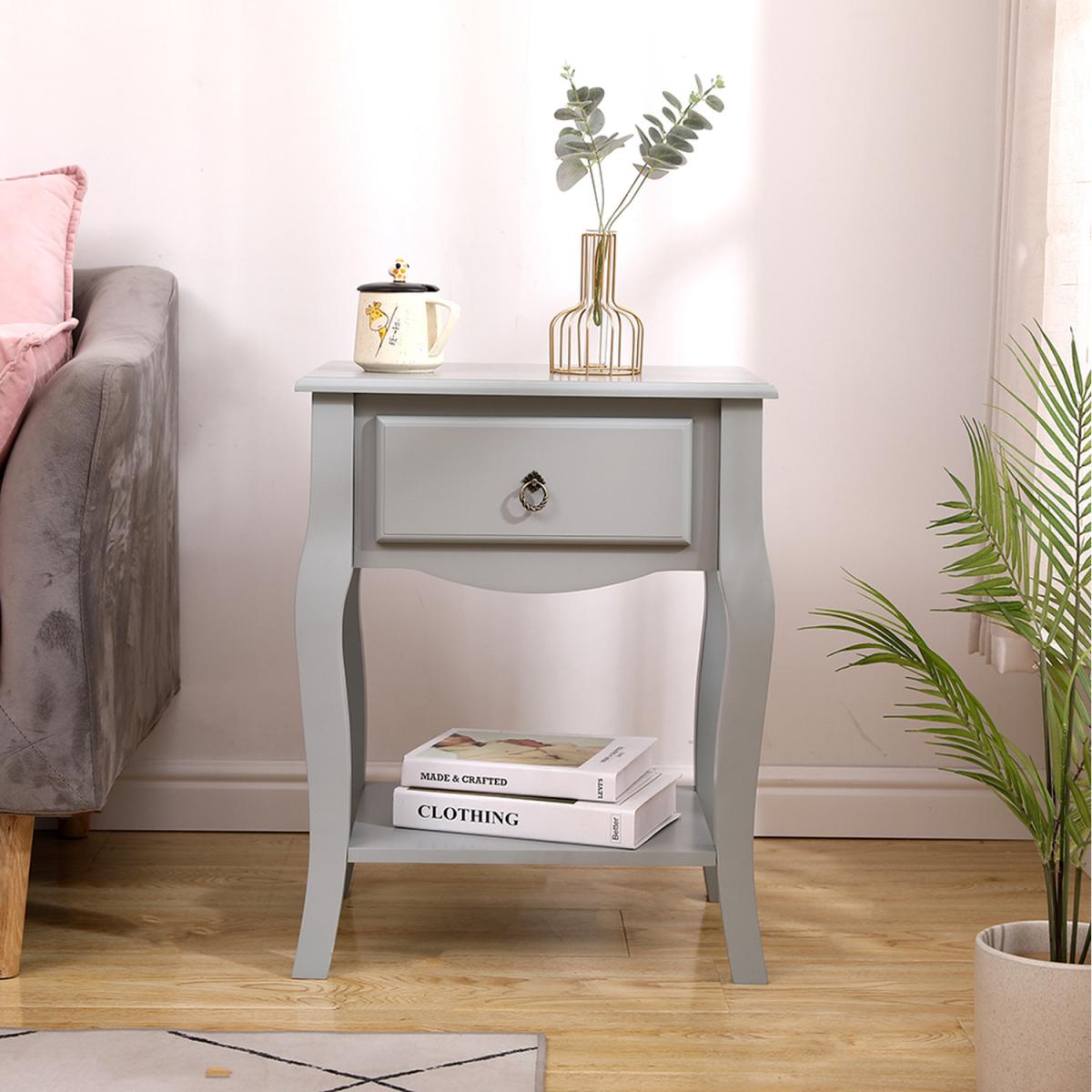 I really like this grey side table - it’s versatile and can suit both modern and classic interiors. Its clean lines and subtle colour make it easy to pair with different colour palettes, while the single drawer offers practical storage for essentials like coasters or reading glasses. It works particularly well next to a neutral sofa or bed, adding a touch of understated elegance. For styling, I’d suggest layering a small lamp, a decorative vase or a candle on top, and incorporating organisational trays inside the drawer to keep clutter at bay. The open shelf is perfect for stacking a few favourite books or magazines, making it both functional and stylish.