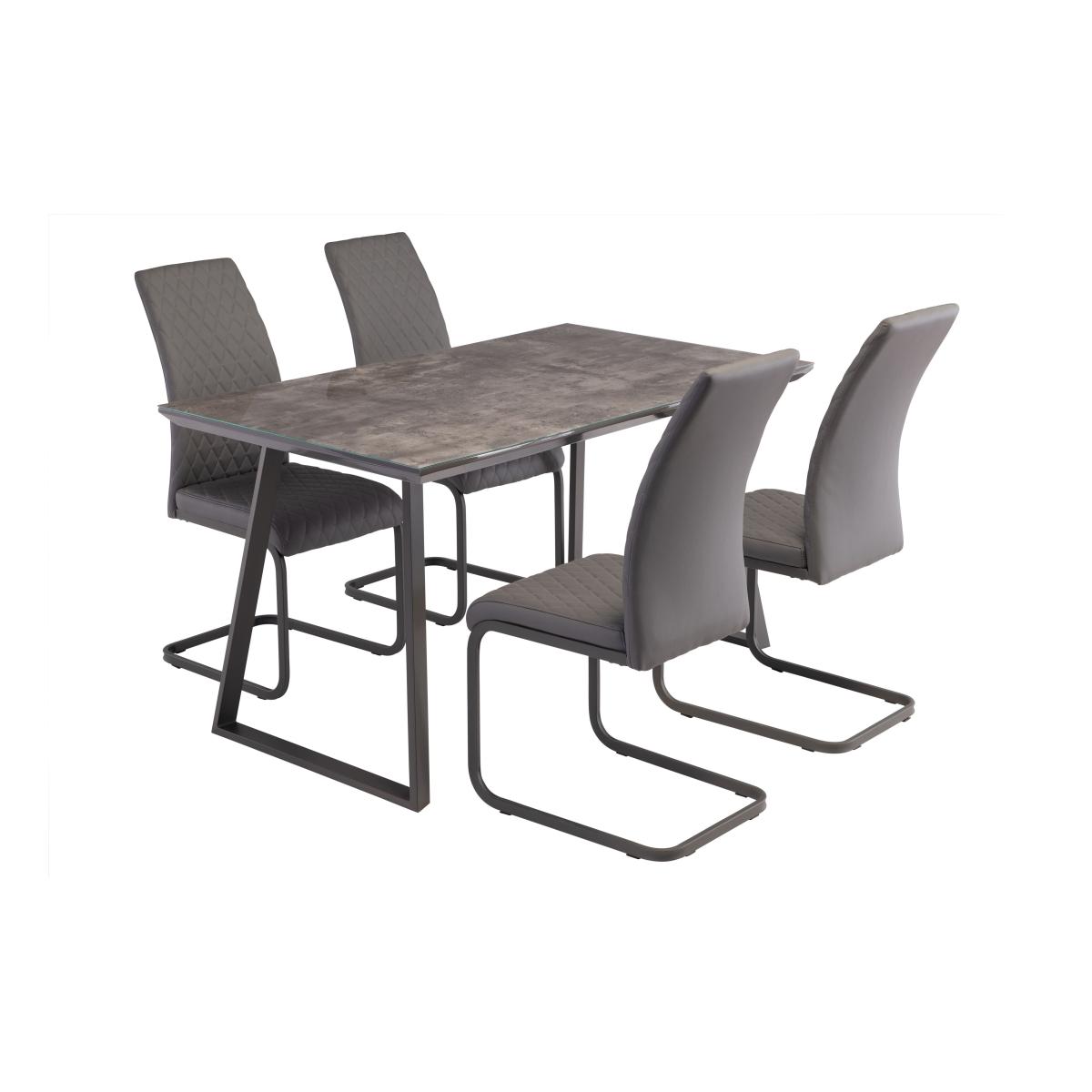 Paris 4 Seater Rectangular Glass Top Dining Table, Concrete Effect Grey