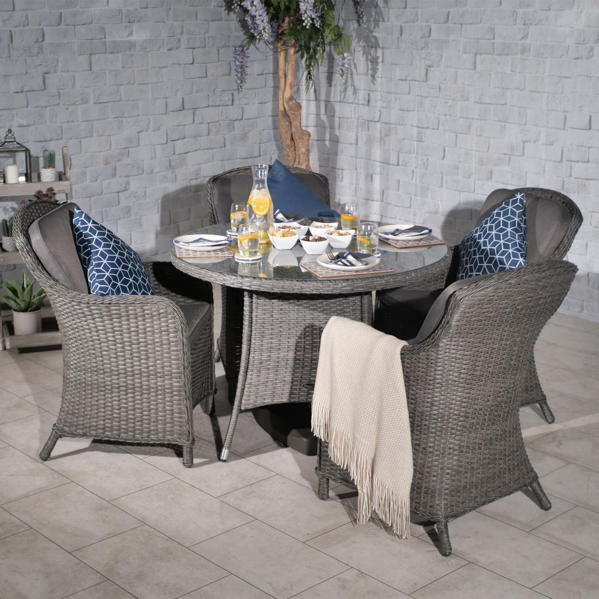 Paris 4 Seater Round Dining Set with 4 Imperial Chairs Grey