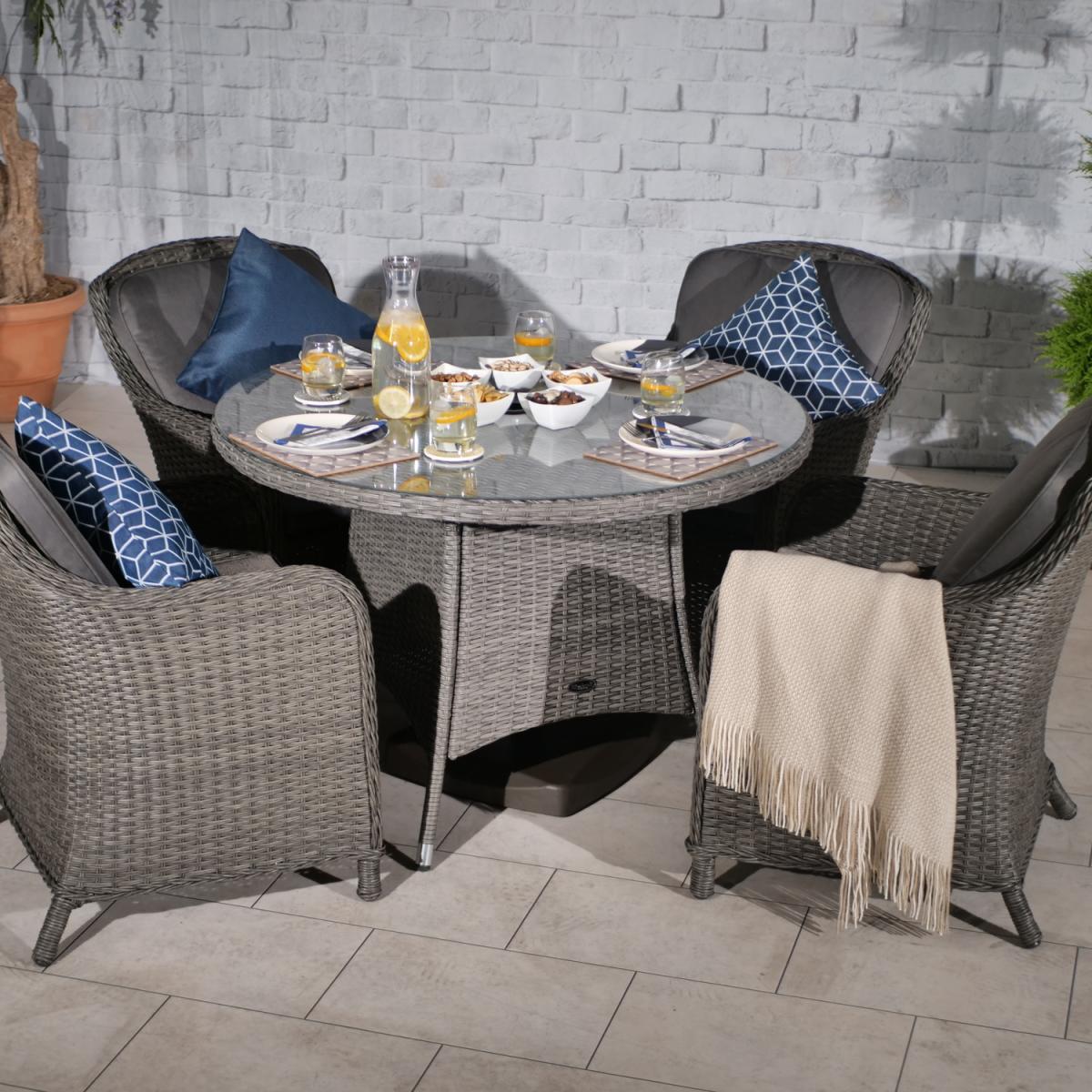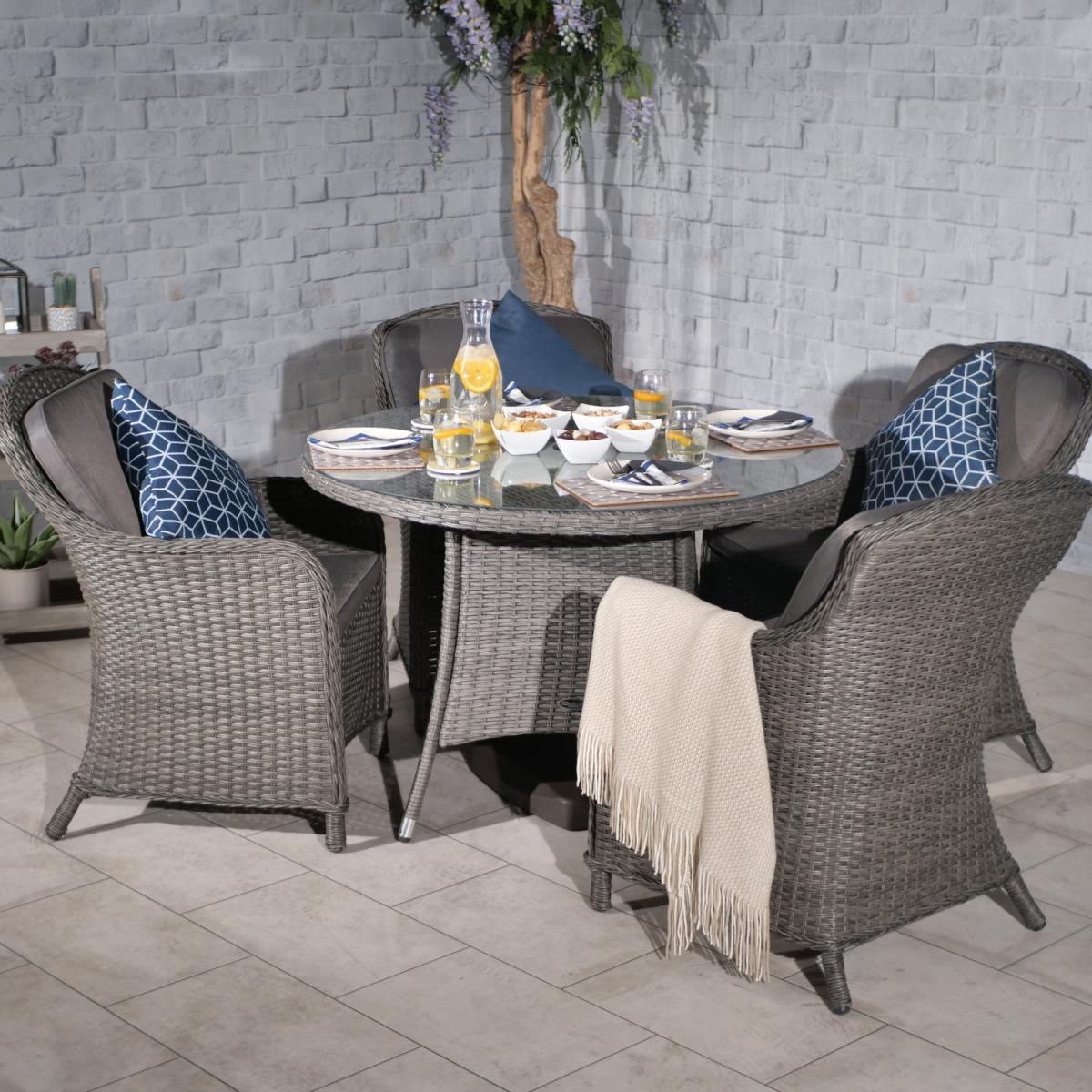 PARIS 4 Seater Round Imperial Dining Set - Grey