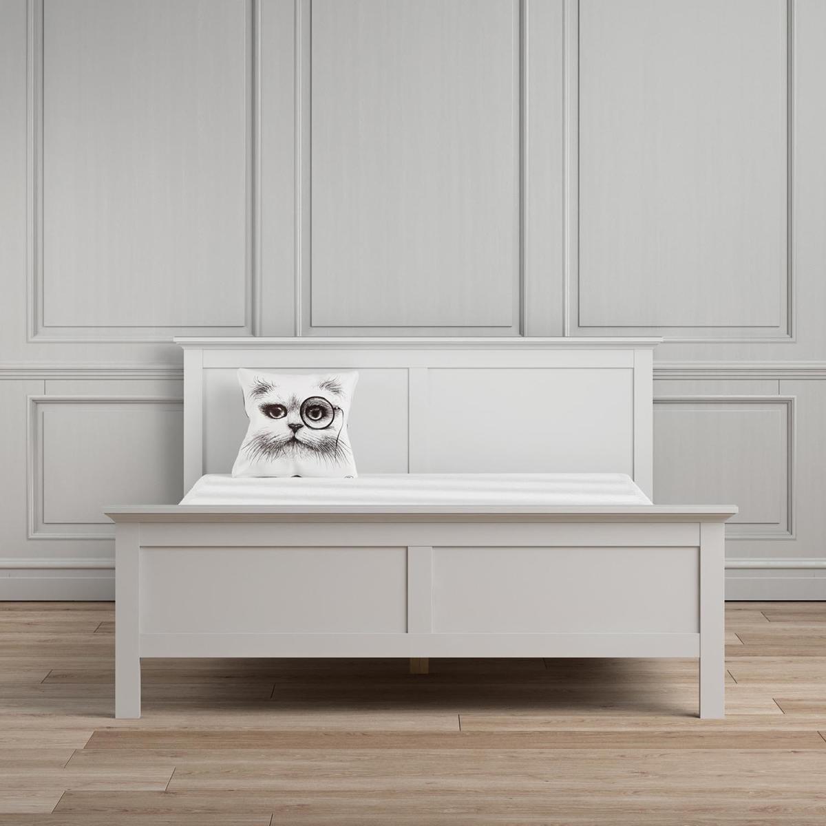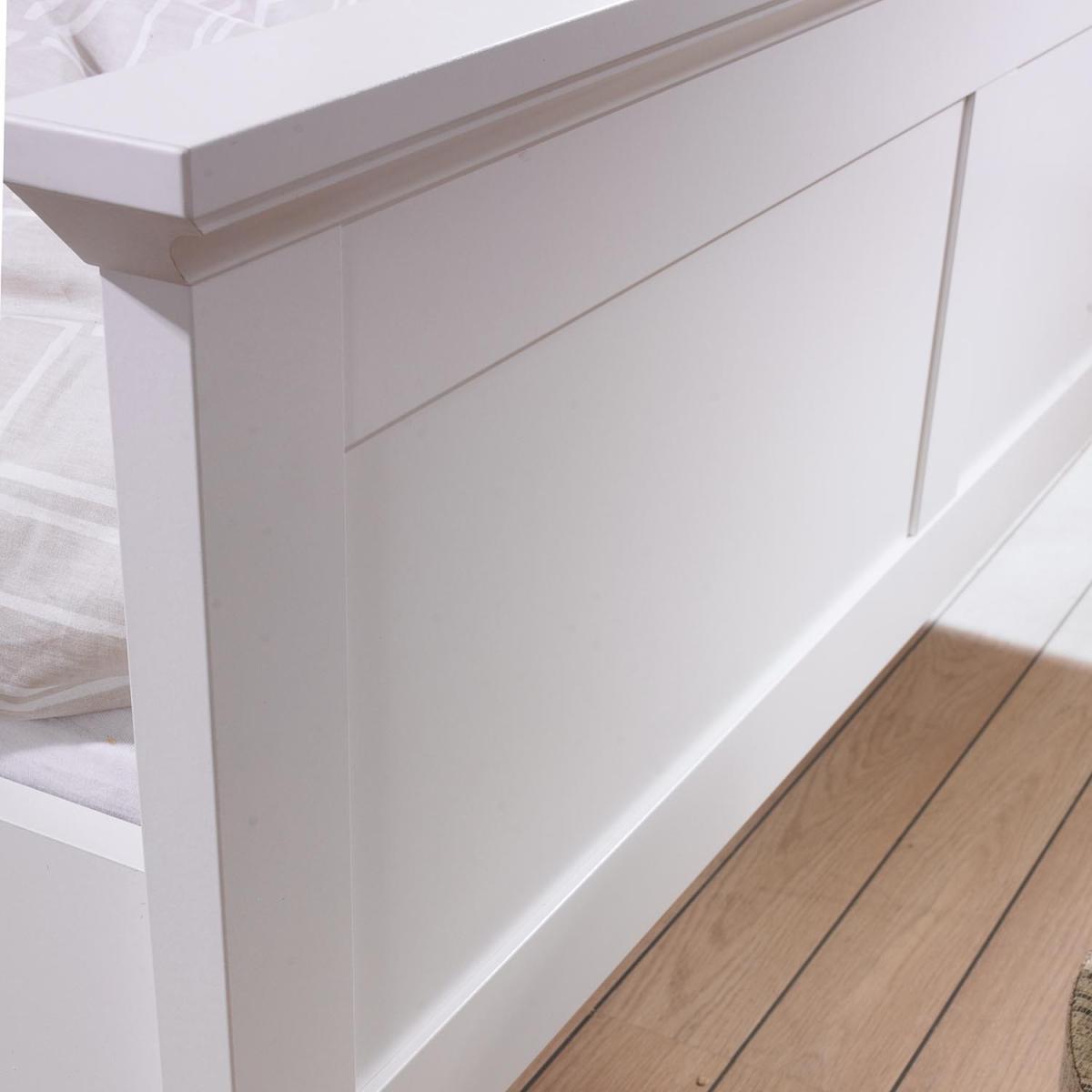 I’d choose this white double frame for its clean lines and sturdy feel - it’s a really versatile base that suits everything from Scandi-minimal to modern country schemes. The simple panelling and crisp finish mean you can introduce bolder bedding or statement cushions without overwhelming the room. To style it, layer neutral linen sheets with a coloured throw at the foot for a dash of warmth, then add a mix of textured cushions. Match with pale-wood or white bedside tables and a soft rug underneath to anchor the bed. If you need extra storage, slide low-profile boxes under the frame.