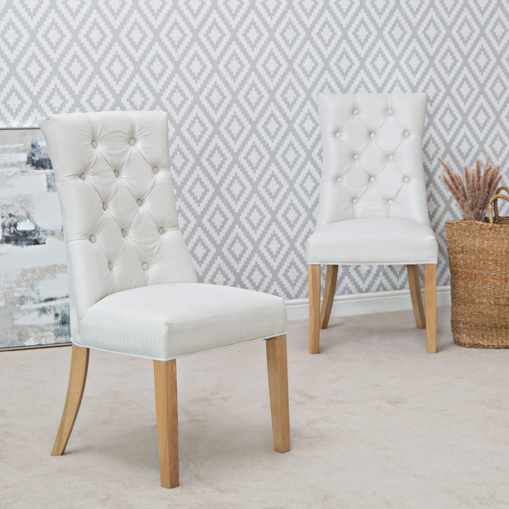 We like to think we've got all bases covered to ensure you can find the perfect Upholstered Dining Chair to match the table of your choosing. All of these chairs will match the vast majority of our light/medium oak and painted oak Dining Tables. Don't be afraid to mix and match different chairs around one table, in doing so you can create some really beautiful combinations.