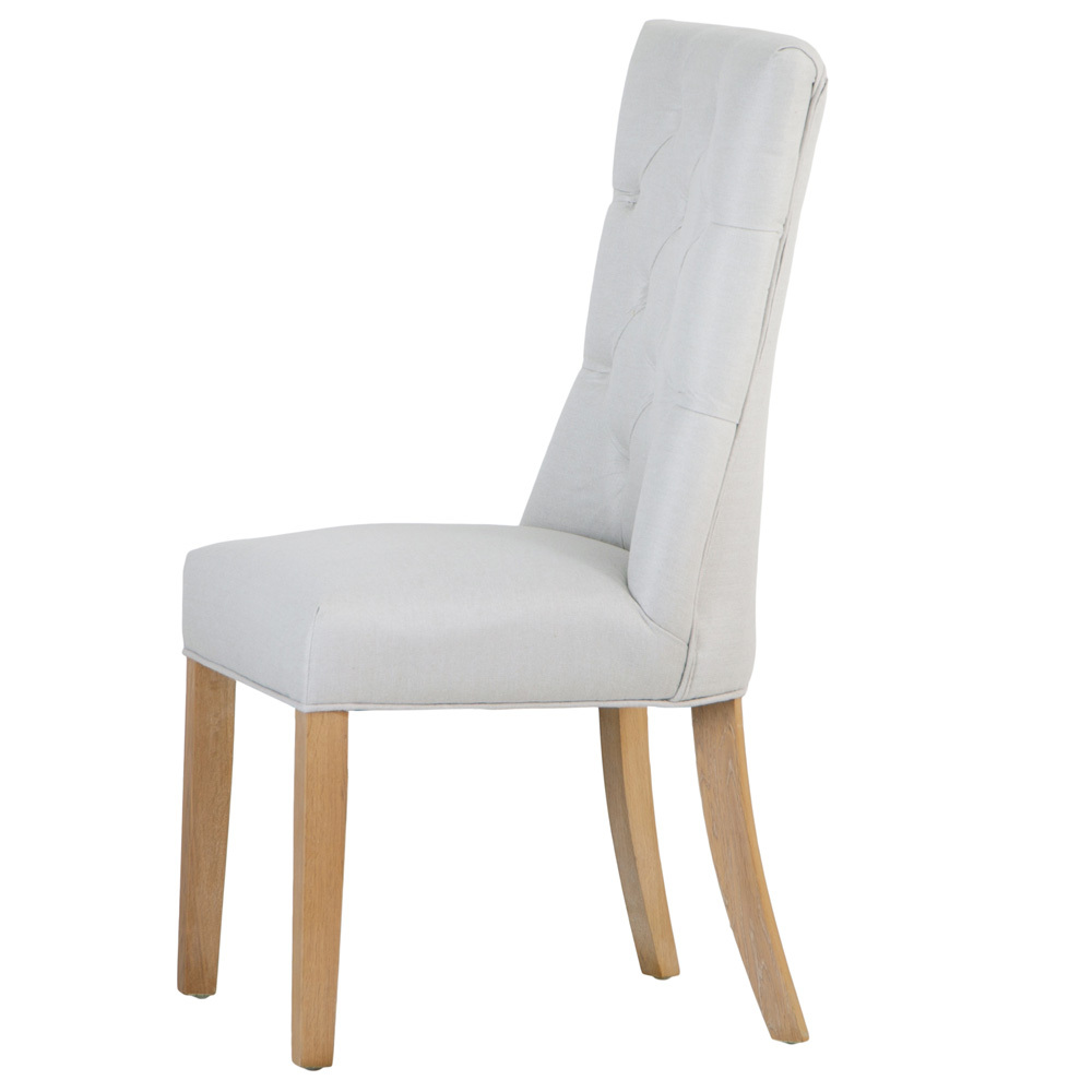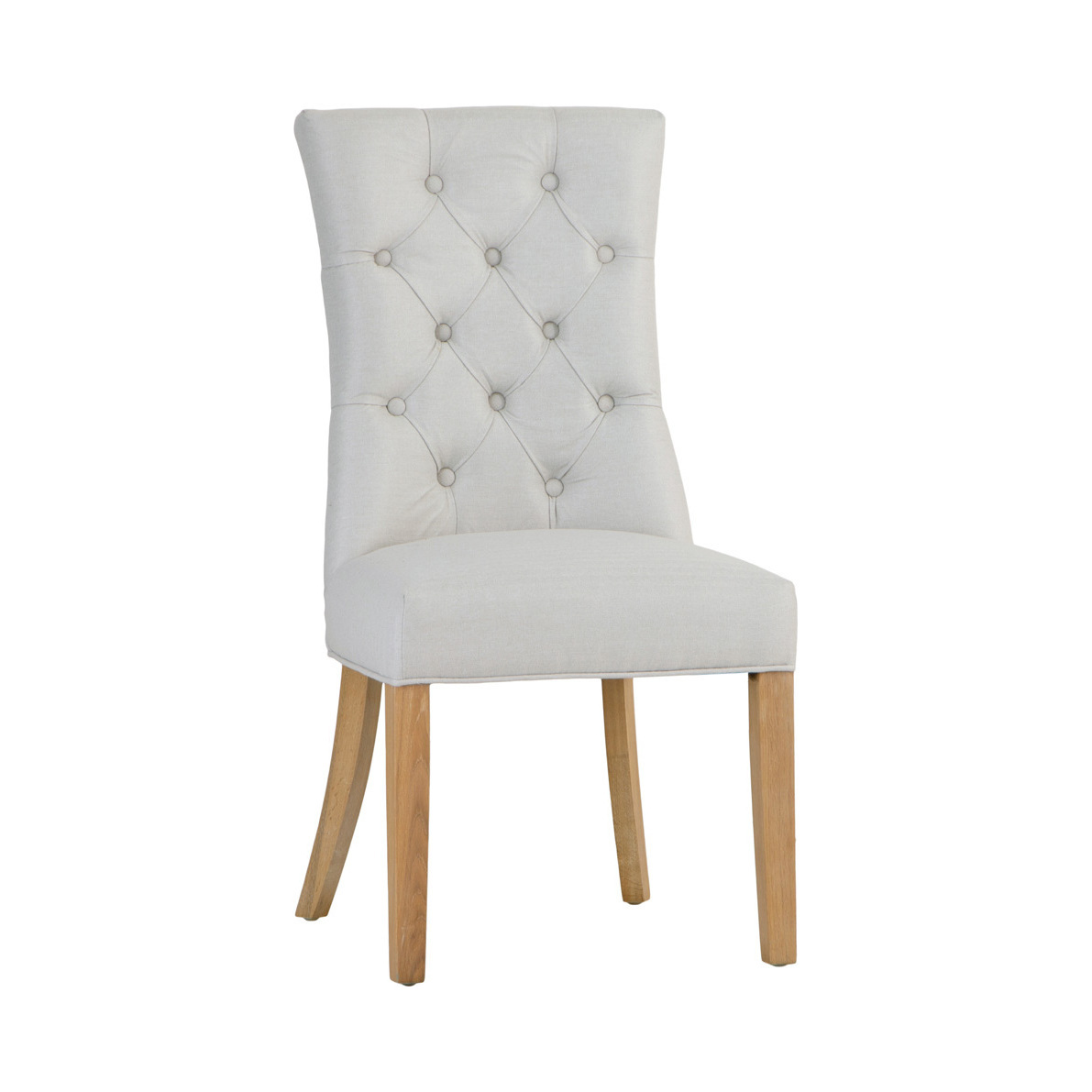 This chair's clean, neutral tone makes it a versatile choice for a range of dining room styles, from classic to contemporary. I love its button-back detailing, which adds a subtle touch of elegance without feeling overly formal. It works particularly well in cosy, laid-back interiors or paired with a rustic wooden table for a relaxed yet refined look. For practical styling, consider layering with textured table runners or placing it next to a light-coloured table to keep the space feeling fresh. Its simple design also makes it easy to mix with patterned or colourful dining pieces, adding flexibility to your interior.