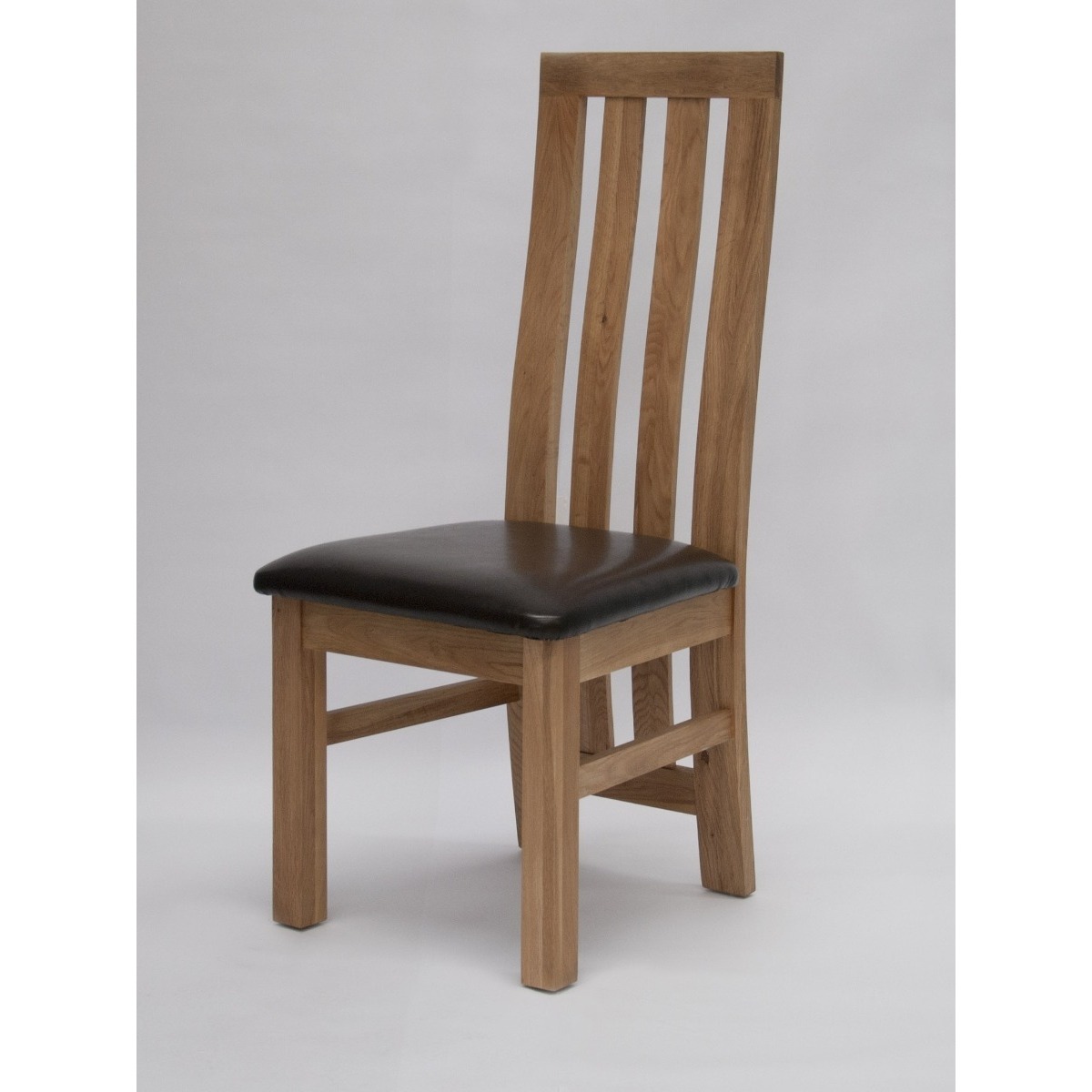 Parisian chic is a much sought after style that is often copied but rarely this well. The Paris solid oak dining chair has presence, clear and consistent detailing and a beautiful finish. The chair would be equally at home in dining rooms or kitchens. With its high back, which has a soft curve flows elegantly top to floor, beautifully showing off the natural grain of the timber. A Chunky front legs and a thick frame further highlight the quality of the piece. The chair seat is upholstered in durable, sleek, dark brown bycast leather. The timbers are finished with a clear protective lacquer. The Chairs are sold in pairs.