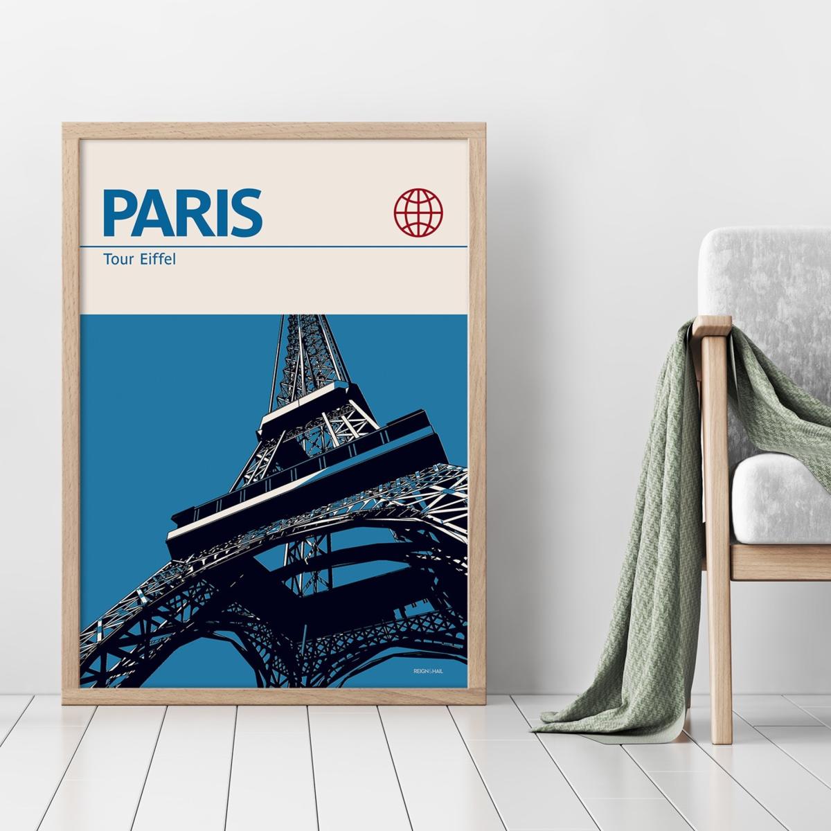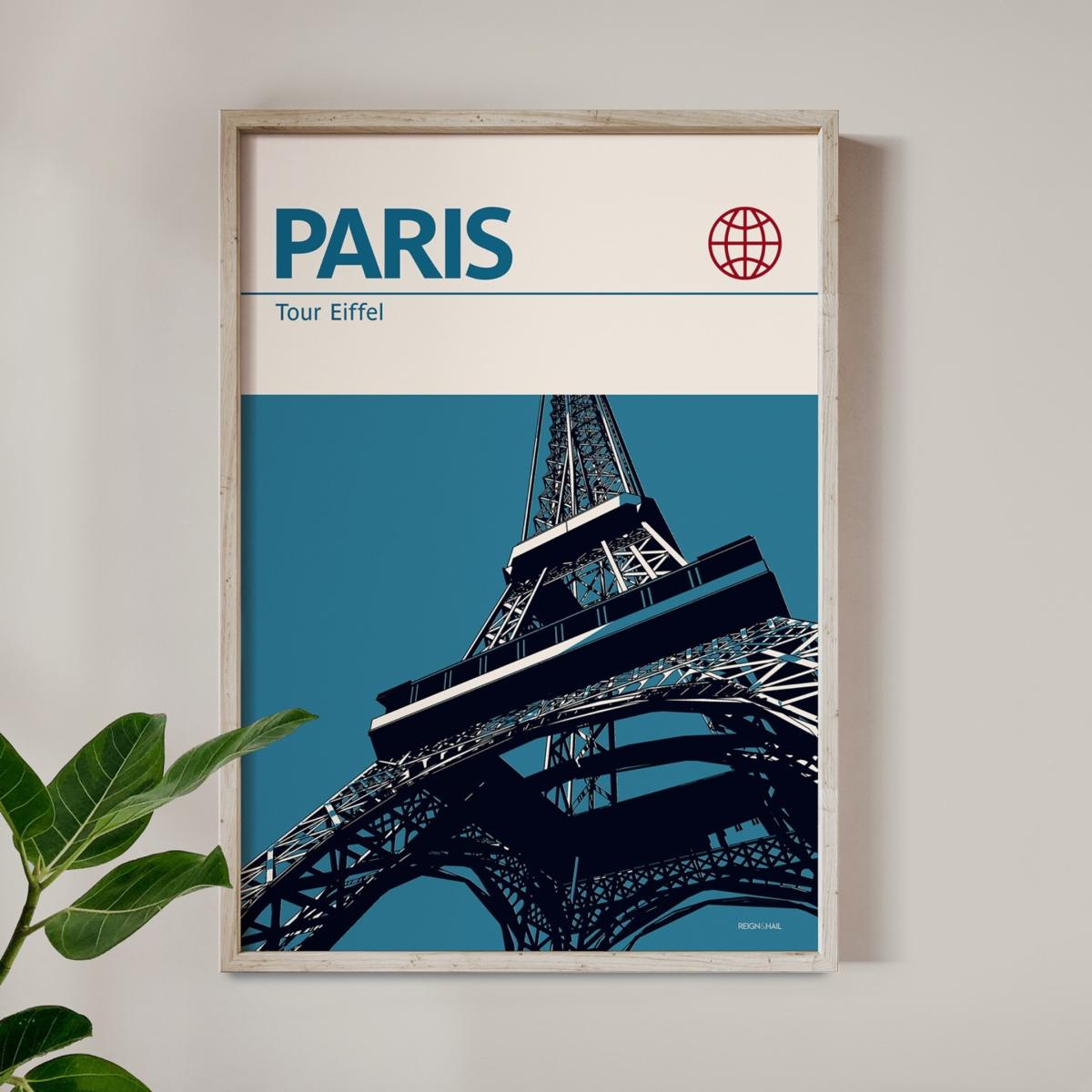 Paris Eiffel Tower Modernist Architectural Travel Poster A2 420 X 594Mm Reign & Hail