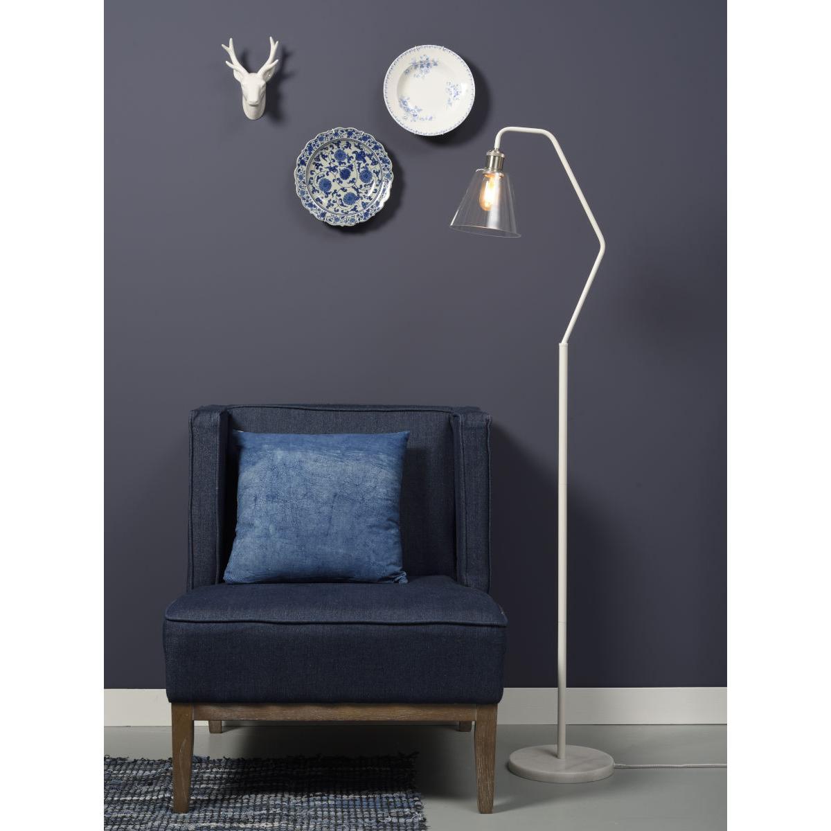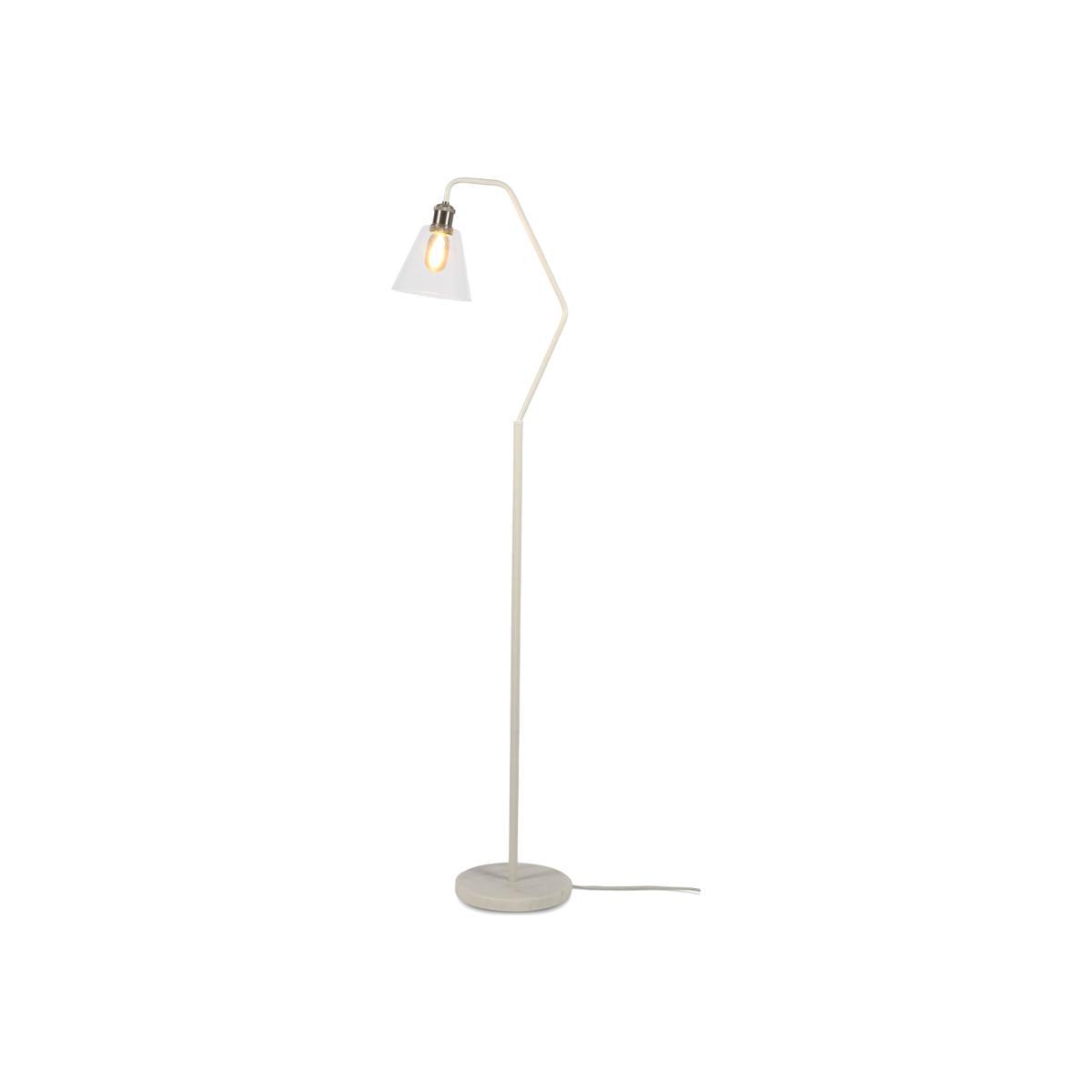 An industrial, vintage look for this Paris floor lamp! The sleek construction lets you appreciate the mixture of noble materials. The Paris floor lamp consists of a round marble base and an angled foot made of painted iron. The transparent glass shade is topped off by a silver metal socket. Thanks to the transparency of the lampshade, the bulb plays the starring role! You can use any decorative bulb of your choice (E27 cap) : A classic bulb with a filament, an oversized globe or even a coloured bulb. Get creative!.