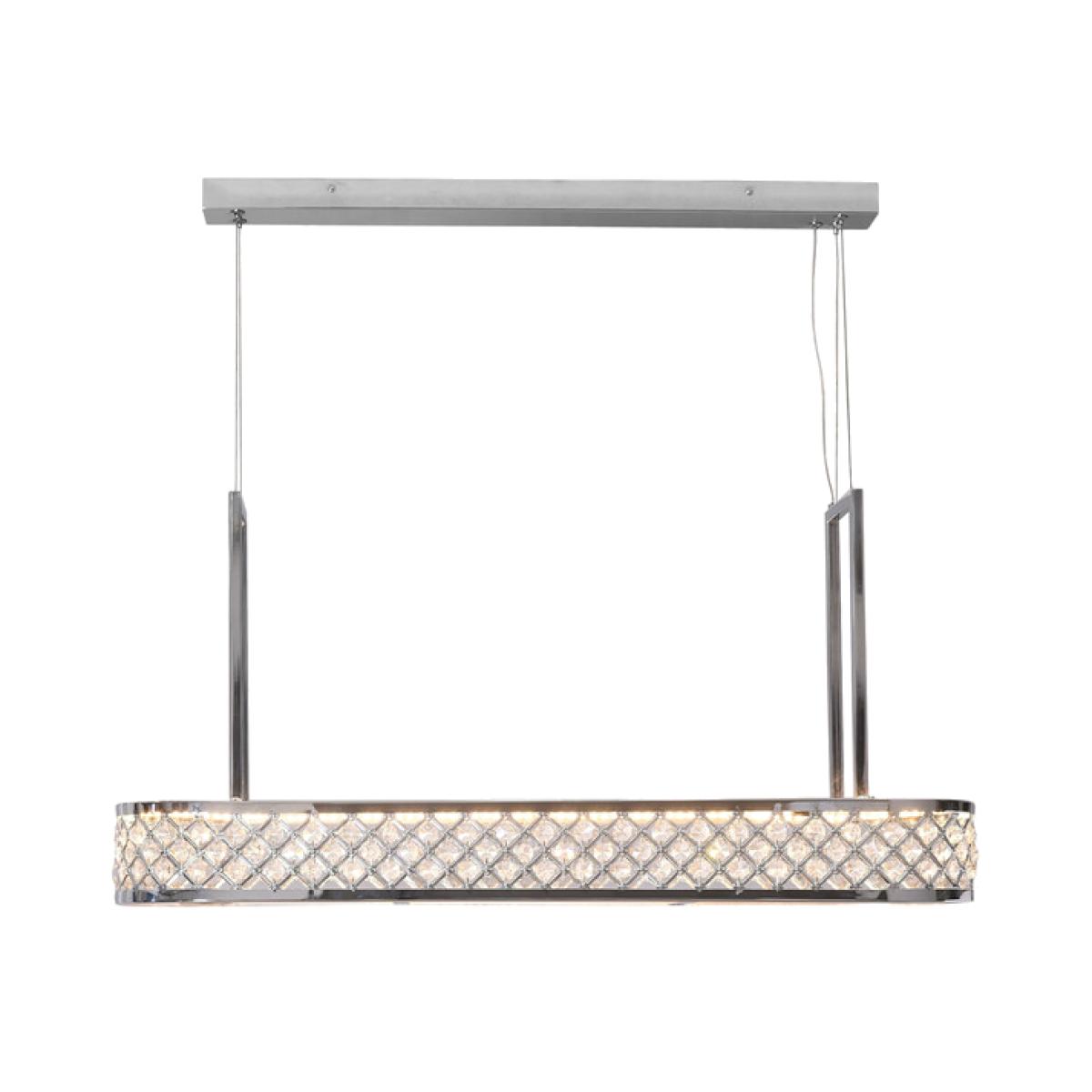 A large, sophisticated centrepiece for any room, the Paris LED Ceiling Fitting with Shelf is sure to dazzle. Finished with beautiful crystals along the outside, this wouldn't look out of place in a swanky bar or a luxurious living room. The light is fitted with non-replaceable bulbs that offer bright and convenient light for a sleek look around your home. Easy to coordinate with your existing decor thanks to the chrome materials, this is a must-have for any space.