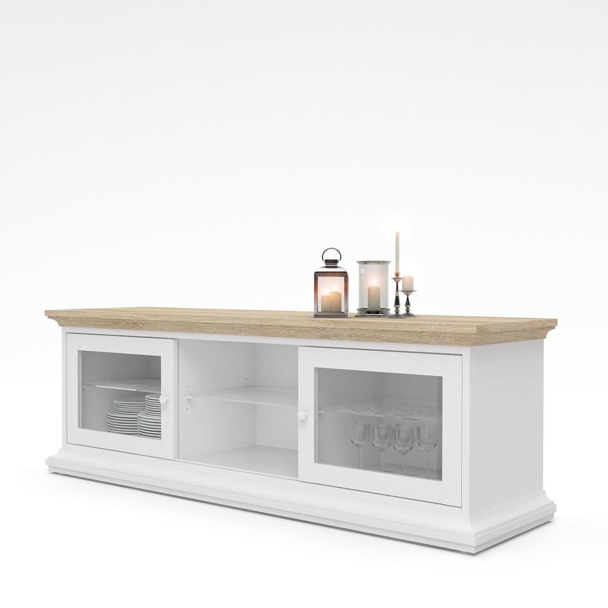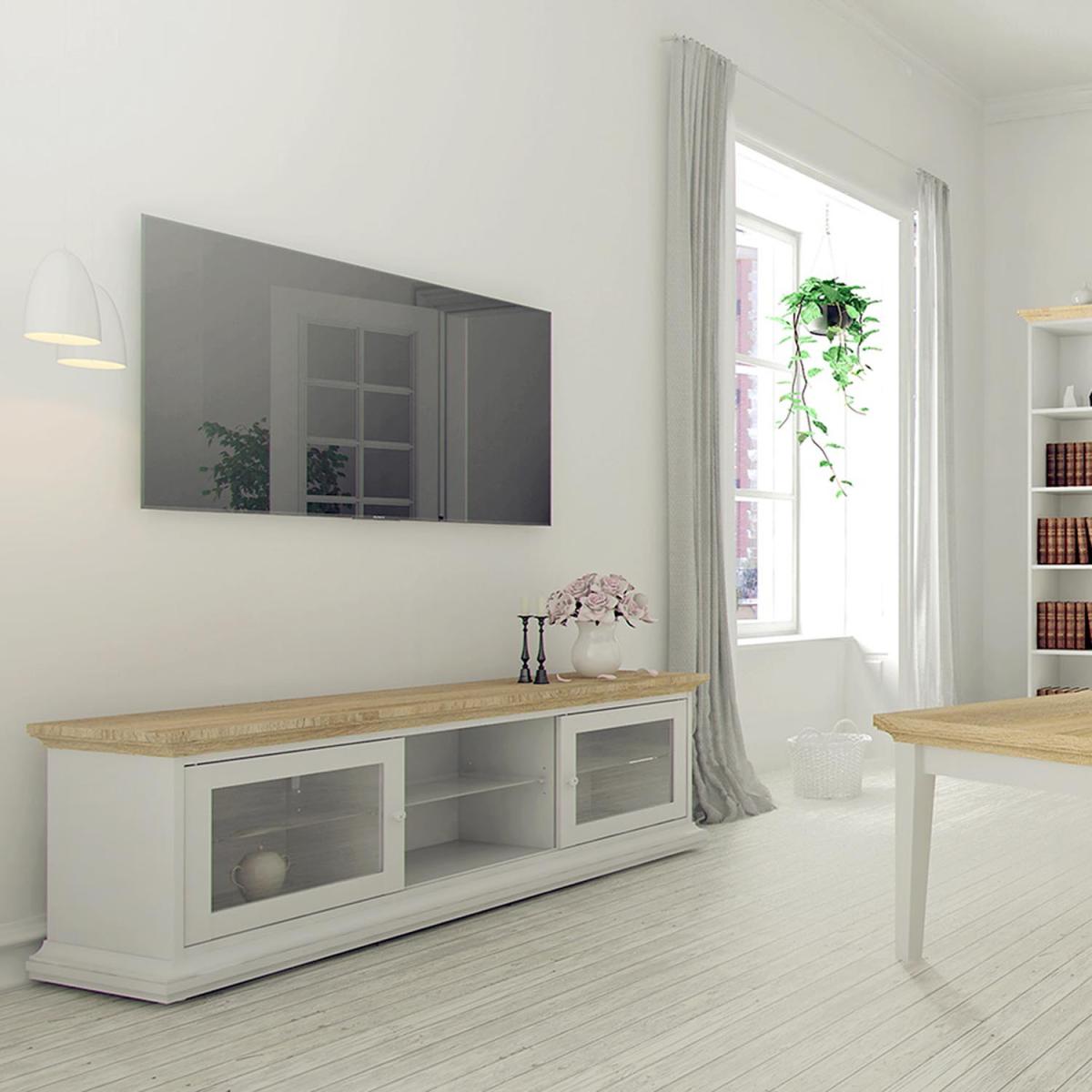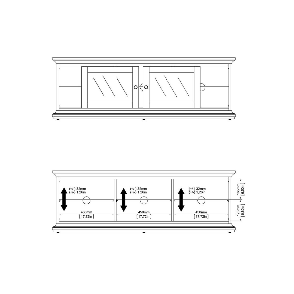 The Paris Wide 2-Door 1-Shelf TV Unit really lives up to its name, with its romantic style, sophisticated look and beautiful classic feel, making it the perfect way to enhance your space! The attractive TV unit is bold and offers plenty of storage options, with charm eluding from every angle. Both functional and stylish, the Paris collection comes in a fade-resistant and easy to clean finish with a high-quality laminated board that's resistant to damage and scratches, moisture and high temperature.