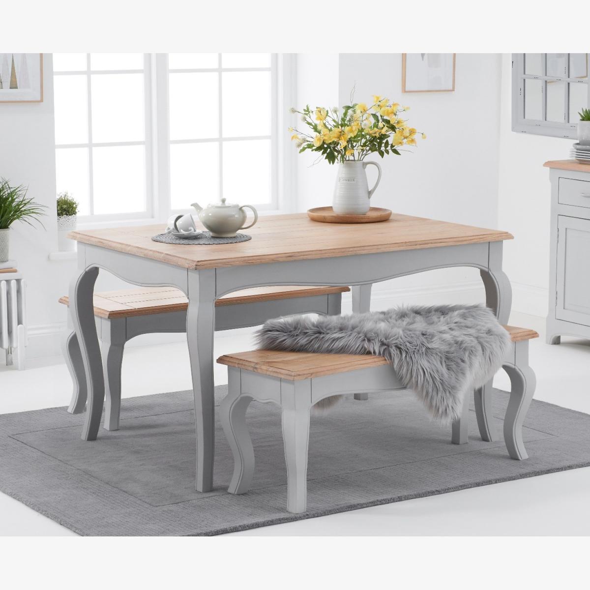 I love this Parisian 130cm Grey Shabby Chic dining table set for its charming blend of rustic charm and soft colour palette, making it versatile for various interiors. It works particularly well in cosy, country-style or cottage kitchens, as well as eclectic spaces that embrace a relaxed, vintage vibe. When styling, consider layering with neutral-toned crockery and textured textiles like linen or wicker for warmth. Adding a statement centrepiece, such as fresh flowers or a collection of candles, can elevate the look. Its size and shape make it ideal for smaller dining spaces or breakfast areas, and pairing it with mismatched chairs or a mix of chairs and benches can enhance the shabby chic aesthetic perfectly.