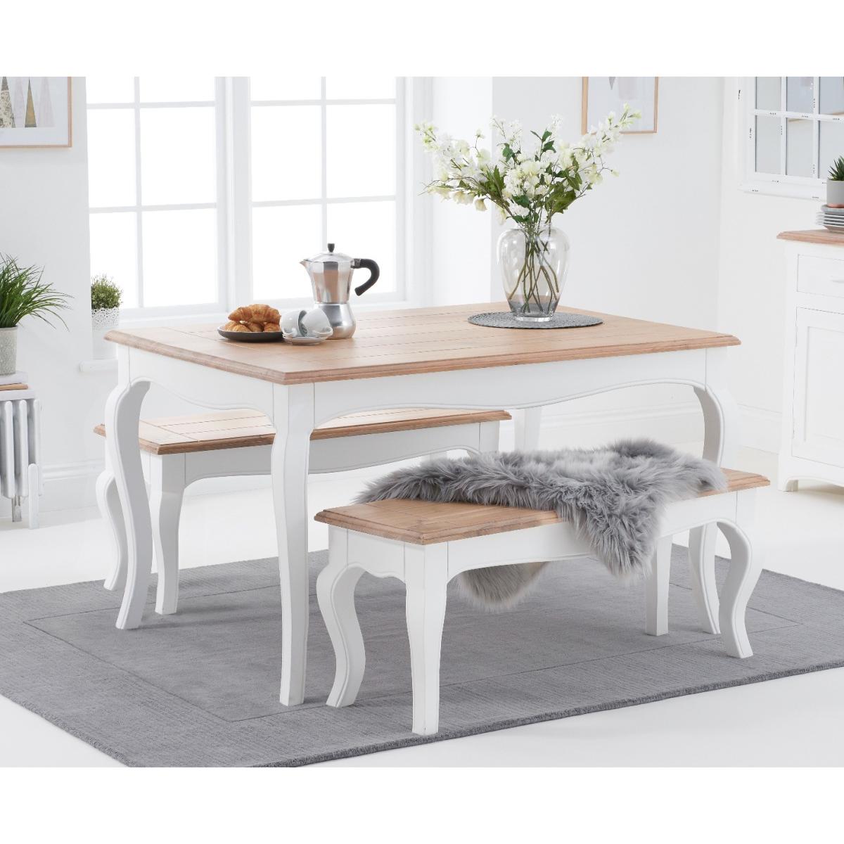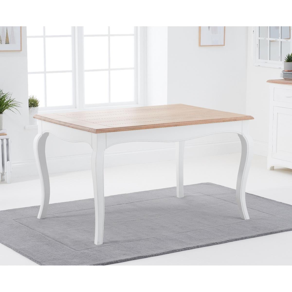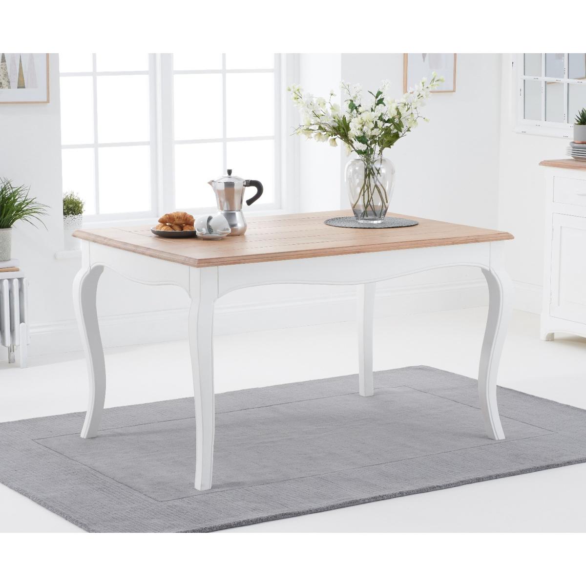 Elegant and opulent, the Parisian 130cm Shabby Chic Dining Table has an undeniable style that will impress upon any dining area. Perfectly practical, the 130cm dining table comfortably seats 6 people, making it ideal for enjoying everyday meals and intimate dining occasions. The Parisian has been expertly crafted from naturally strong acacia and finished with shabby chic distressed white paintwork to the curved legs. The table has a beautifully baroque look to it that will enrich the ambience of any occasion. The Shabby Chic Dining Table is complemented by matching Parisian Benches that are complete with white paintwork, elegantly curved front legs and a natural acacia seat. Further Items in the Collection:Parisian 175cm Shabby Chic Dining Table with Chairs, Parisian 175cm Shabby Chic Dining Table with Benches, Parisian 130cm Shabby Chic Dining Table with Chairs, Parisian 90cm Shabby Chic Dining Table with Chairs and Parisian Shabby Chic Sideboard