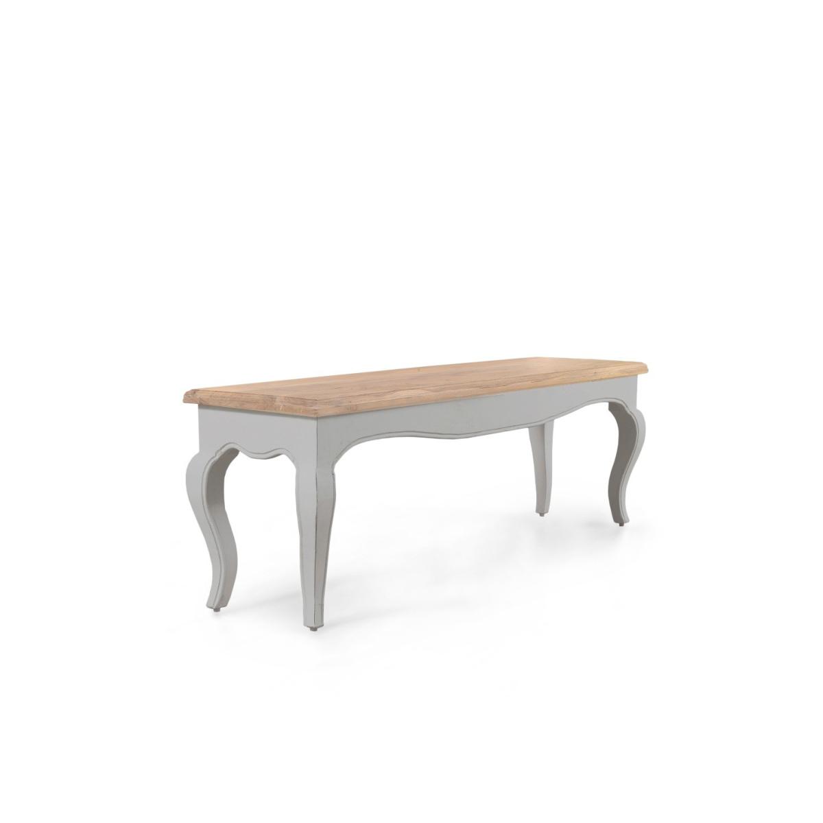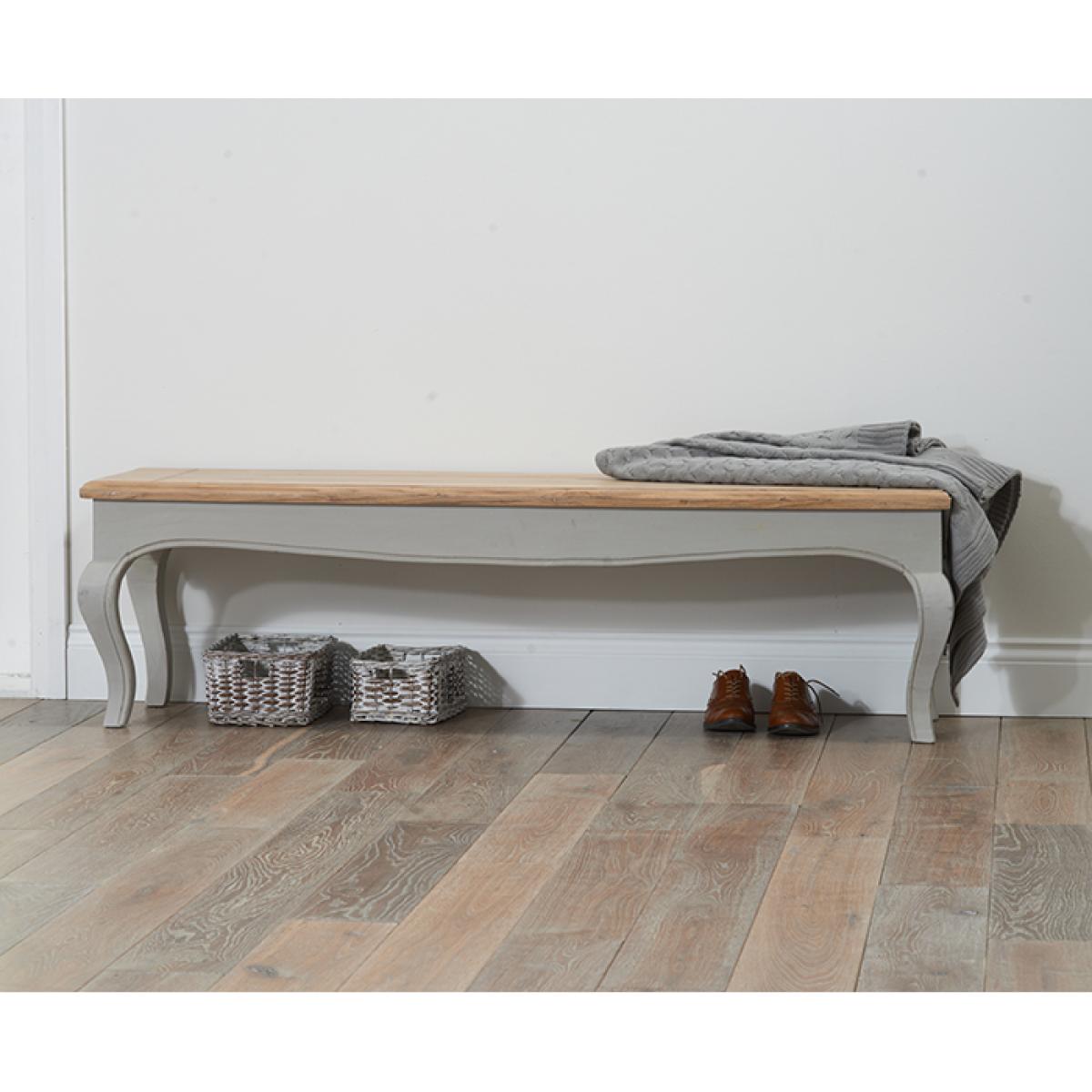 The Parisian Shabby Grey Chic Large Bench brings distinct style to your dining area. Effortlessly complementing the Parisian 175cm Grey Shabby Chic Dining Table, the large painted bench seats up to 3 diners. Crafted from solid acacia, the shabby chic bench baroque style bowed legs and a putty grey painted finish that contrasts beautifully with the natural seat.