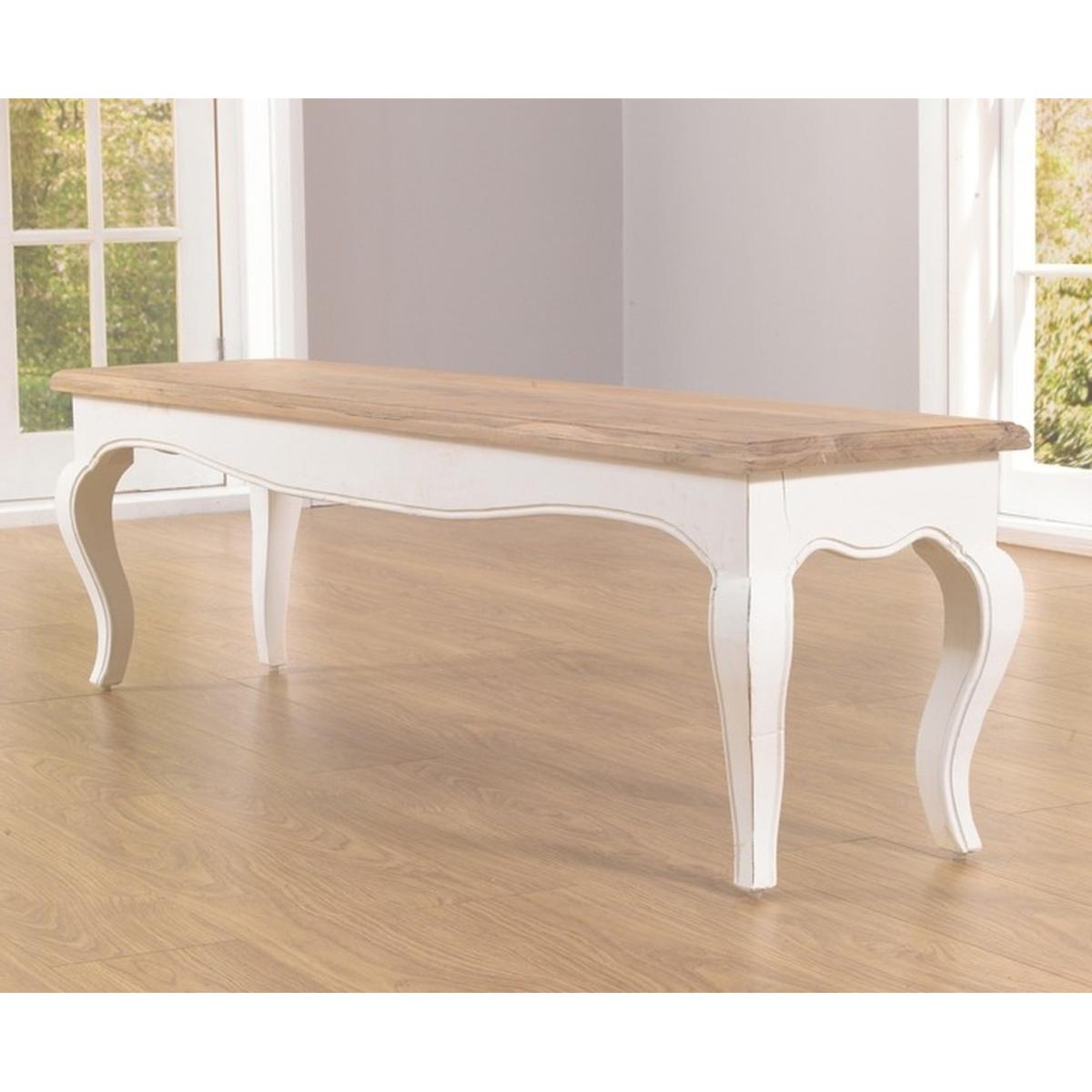 The Parisian Shabby Chic Large Bench brings chic baroque style to any dining area. Complementing the Parisian 175cm Shabby Chic Dining Table, the large painted bench is designed to seat up to 3 diners. The bench is crafted from solid acacia and features elegant bowed legs with a distressed white painted finish and is complete with a natural seat.