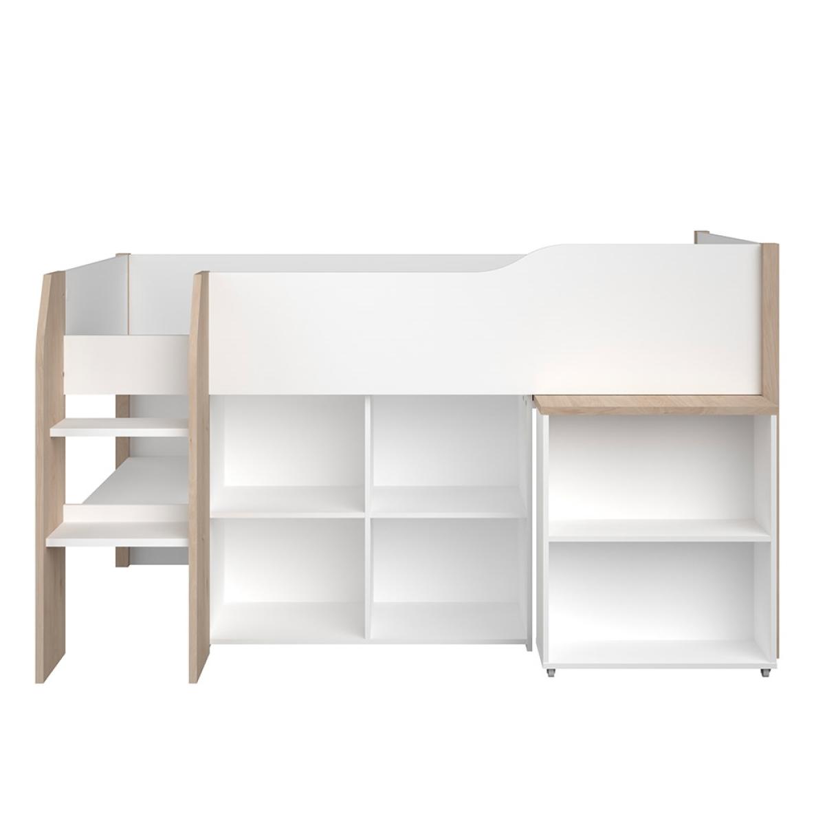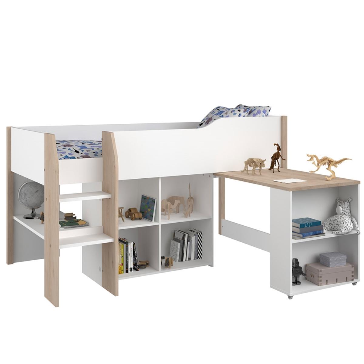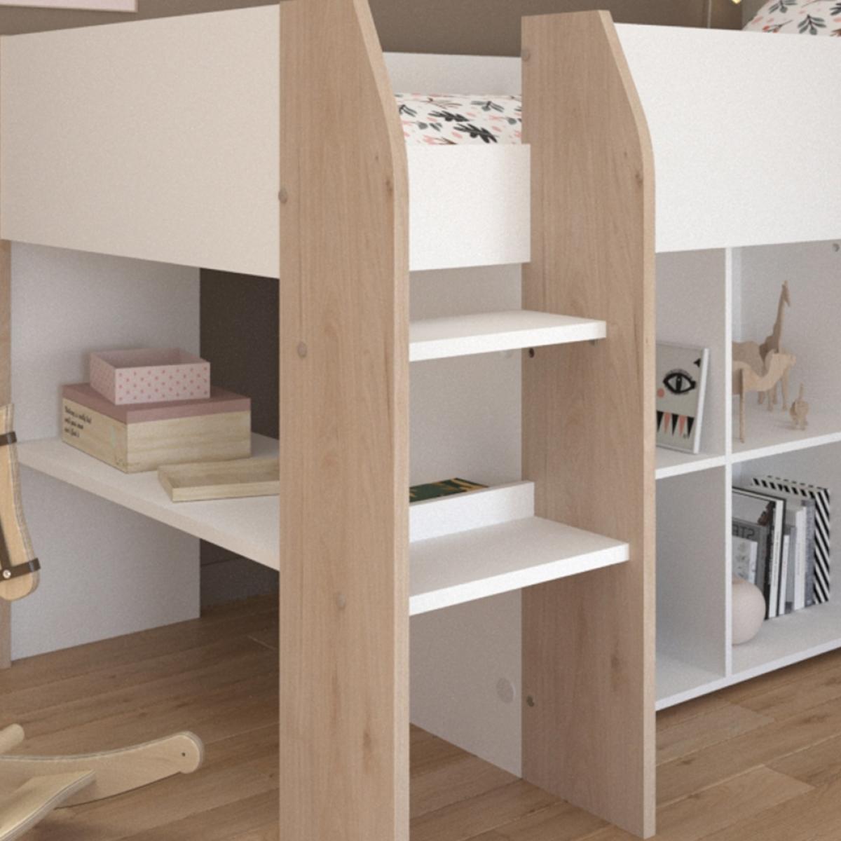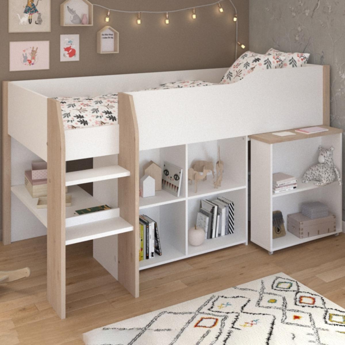 The Parisot Finland Mid Sleeper with Desk & Storage will be the perfect addition to your youngster's room. It will be the ideal spot for any dreaded homework or fun crafts with the handy pull-out desk. The desk also has shelves, perfect for storing books and notepads within easy reach. When homework is all finished the desk can be tucked away clearing your kiddies room for more fun and games! There are also 4 large open shelves to the side of the bed to show off your little ones treasured trinkets!.