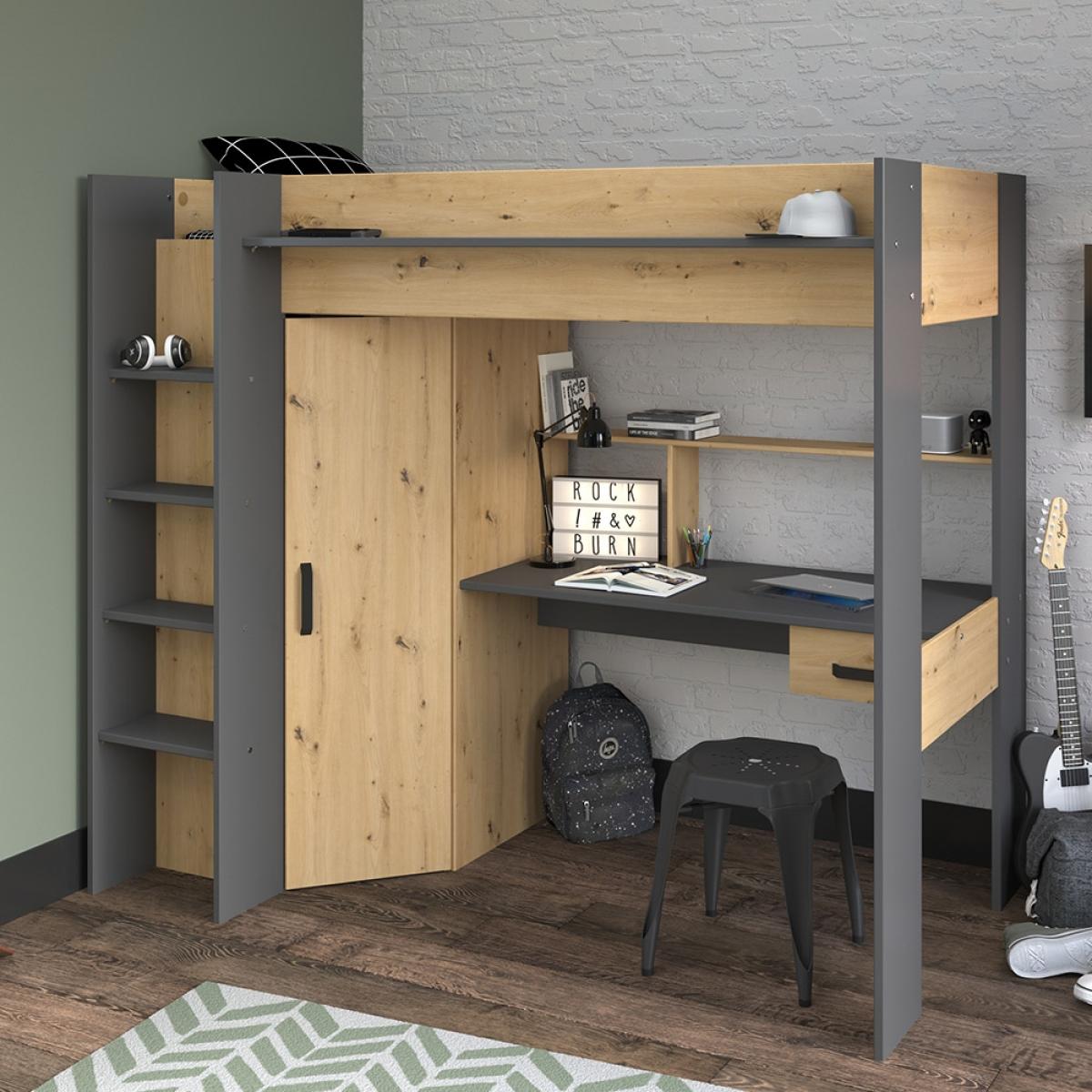 An ideal option for any teenagers room, the Grayson High Sleeper with Desk and Wardrobe from Parisot has everything you could need! With plenty of storage space, it's perfect for cramped bedrooms. Featuring a corner wardrobe fitted with a hanging rail and shelves, your youngster will have no trouble keeping their room spick and span (or hopefully at least!). The desk beneath will make a wonderful spot to catch up on that homework or to create a great gaming set-up. Offering up somewhere to sleep, somewhere to relax and somewhere to do that dreaded school work this high bed with desk will be superb in any kids room.