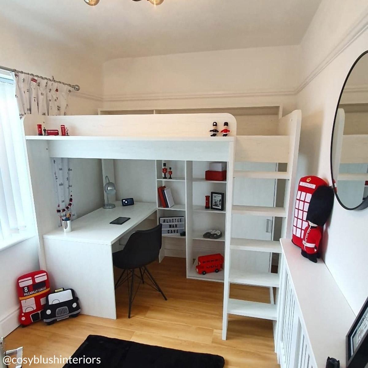Perfect for studying and sleeping, the Parisot Higher Kids High Sleeper Bed with Wardrobe and Desk is a wonderful space saving solution for your youngster's room. With all the storage this High Sleeper Cabin Bed with Desk is ideal for cramped bedrooms and your little ones will have no trouble keeping their room spick and span, or hopefully at least! With the addition of a large desk beneath it is the ideal homework or. Gaming set up. And it could be a cosy place to watch a film with friends! Whats more, with a wardrobe and shelving, included they'll be able to keep their clothes nice and organised. Offering up somewhere to sleep, somewhere to relax and somewhere to do that dreaded school work this high bed with desk will be superb in any kids room.