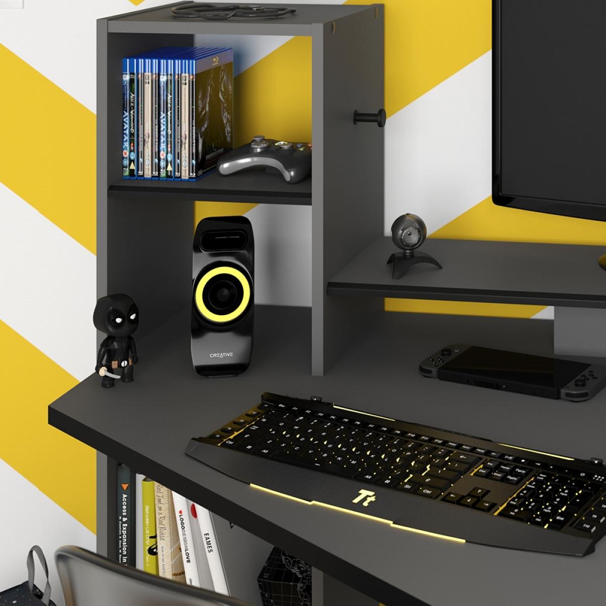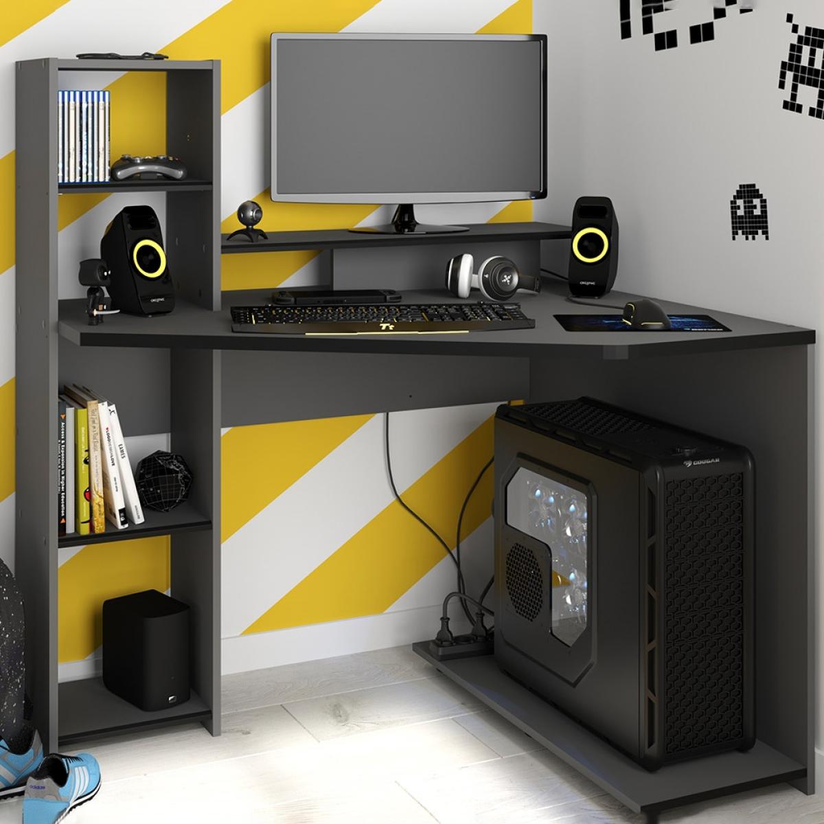 For the optimal gaming experience if you're short on space, look no further than the Set. Up Corner Gaming Desk from Parisot. With its compact design, it will be perfectly nestled in the corner of the room. Complete with a large desktop and raised shelf for the screen, each element has been added to give you the best gaming experience! Including storage shelves, there will be ample space to store those spare accessories and controllers plus there is even a hook to hang your headphones when you're all gamed out! All these amazing features will really give you the best set up so you can truly immerse yourself in the latest release.