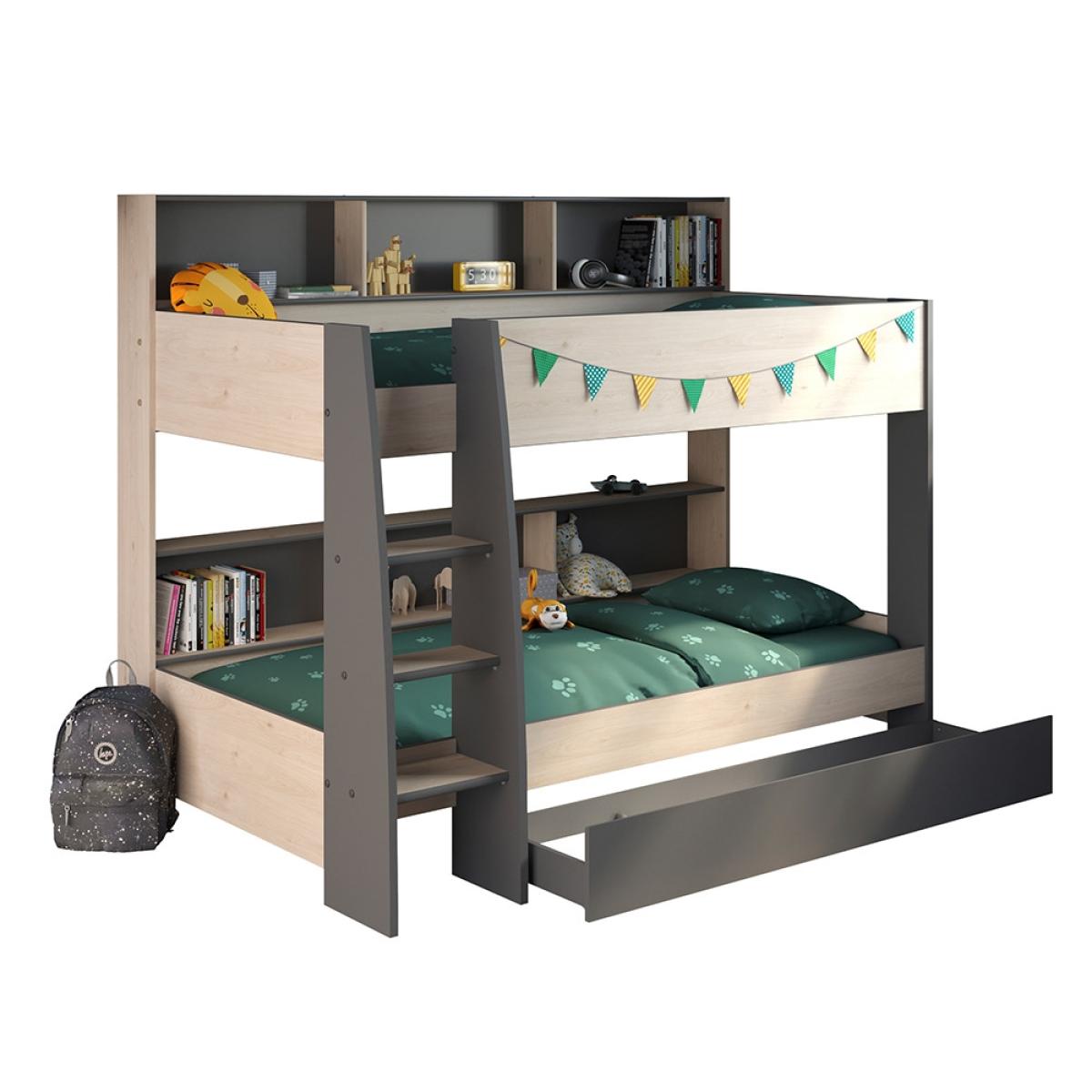 TheTamTam 5 Bunk Bed from Parisot is a superb addition to any room whether for younger children or teens. Its trendy high bunk bed design with smooth, curved lines will suit a contemporary bedroom and the addition of shelves on the top and bottom bunks means its occupants won't struggle for storage space for books, bits and bobs - great for bedtime reading! The ladder features wider, flat rungs leading up to the top bunk which is more comfortable underfoot than conventional ones. With the addition of the under bed drawer, makes this a super storage bed, ideal for any kids bedroom.