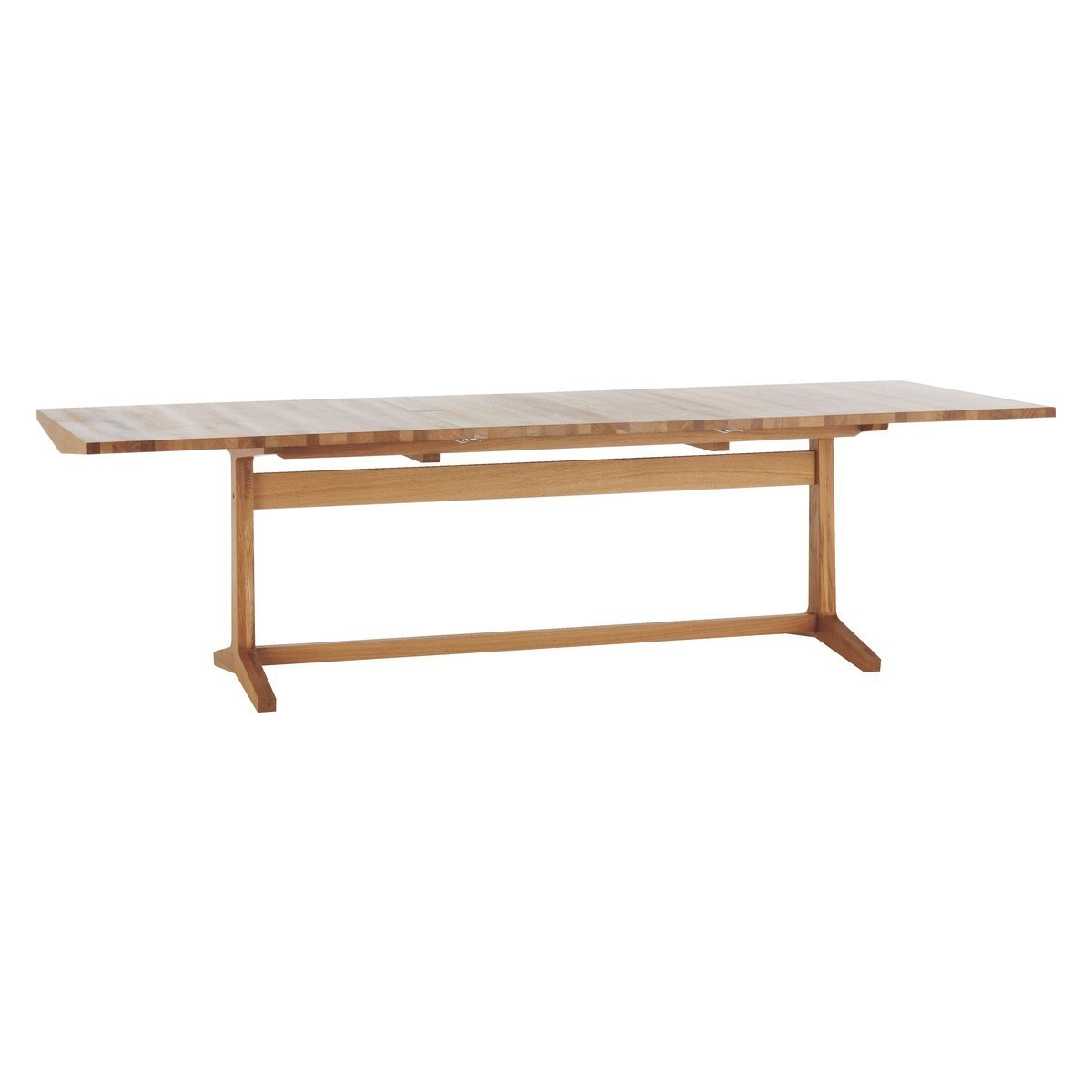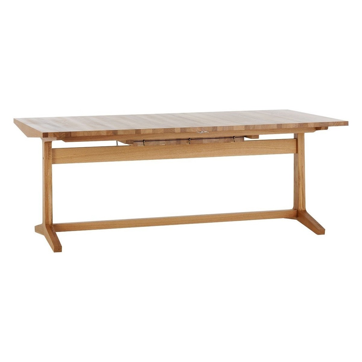 Classically Habitat, Parker oak extending dining table is reminiscent of refectory style dining furniture.;Designed in house and exclusive to Habitat,the table's solid oak construction and modern subtle design features reflect the authentic craftsmanship of each piece.;Great for large family suppers or parties with friends, it can accommodate up to 12 people, using an extension leaf stored inside the table.;The table is also in available in walnut stained ash and both have matching Parker benches.