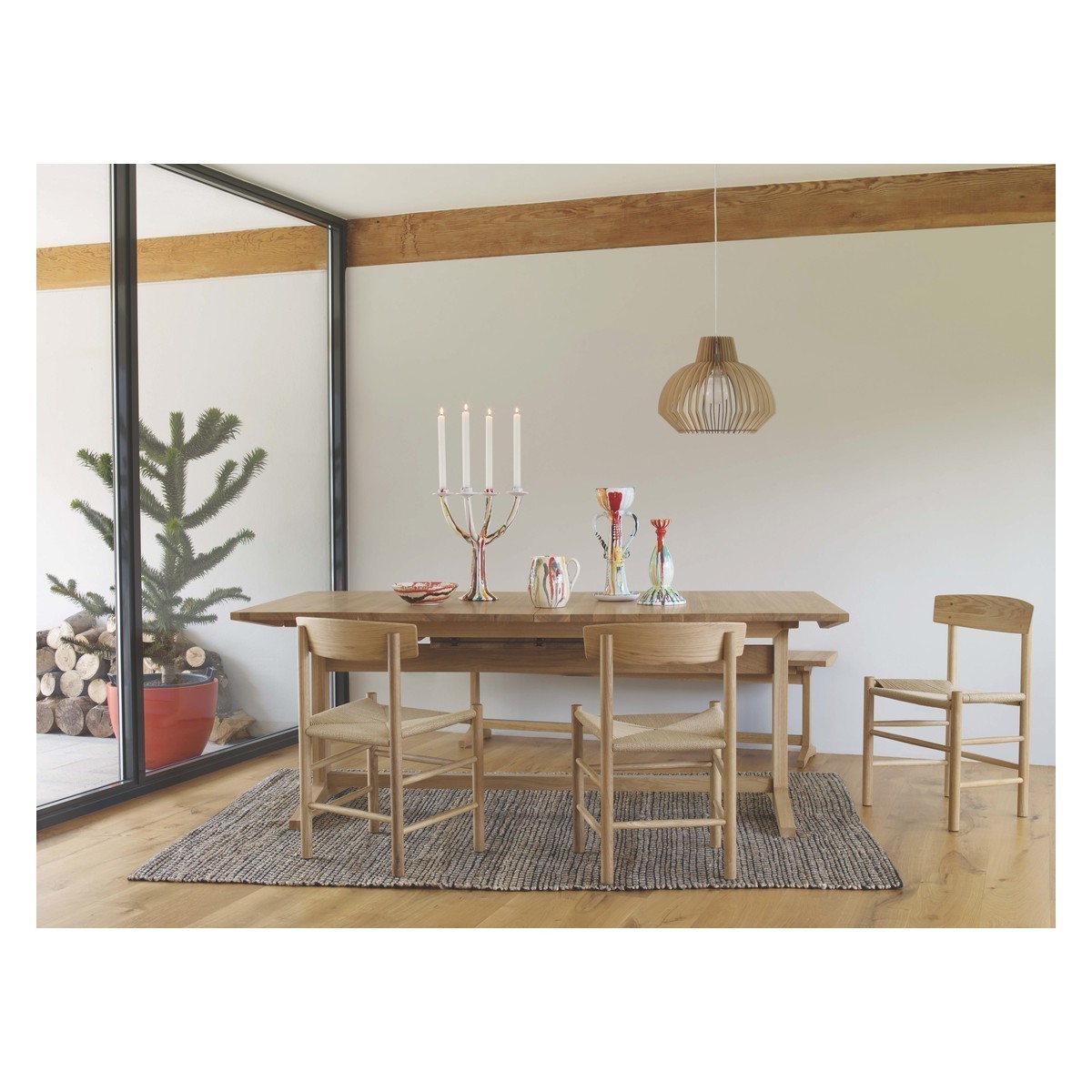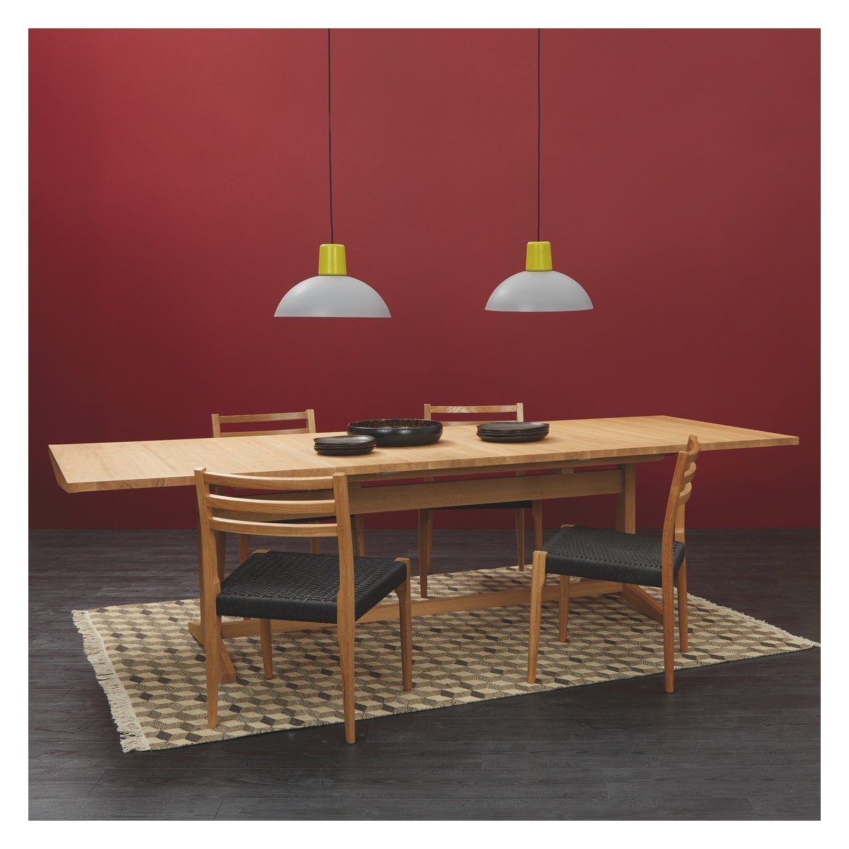 I love this table for its versatile and timeless appeal. Its clean, natural oak finish makes it a great statement piece that can work equally well in classic, scandinavian, or modern minimalist interiors. The extendable feature is ideal for entertaining, giving flexibility for both everyday and larger gatherings without cluttering your space. Styling tips include pairing it with neutral or textured placemats to highlight the wood’s grain, and mixing up the chairs-say, a combination of upholstered and wooden styles-to add visual interest. It also pairs beautifully with rugs in natural fibres or simple woven textiles, making it perfect for creating a welcoming, functional dining area.