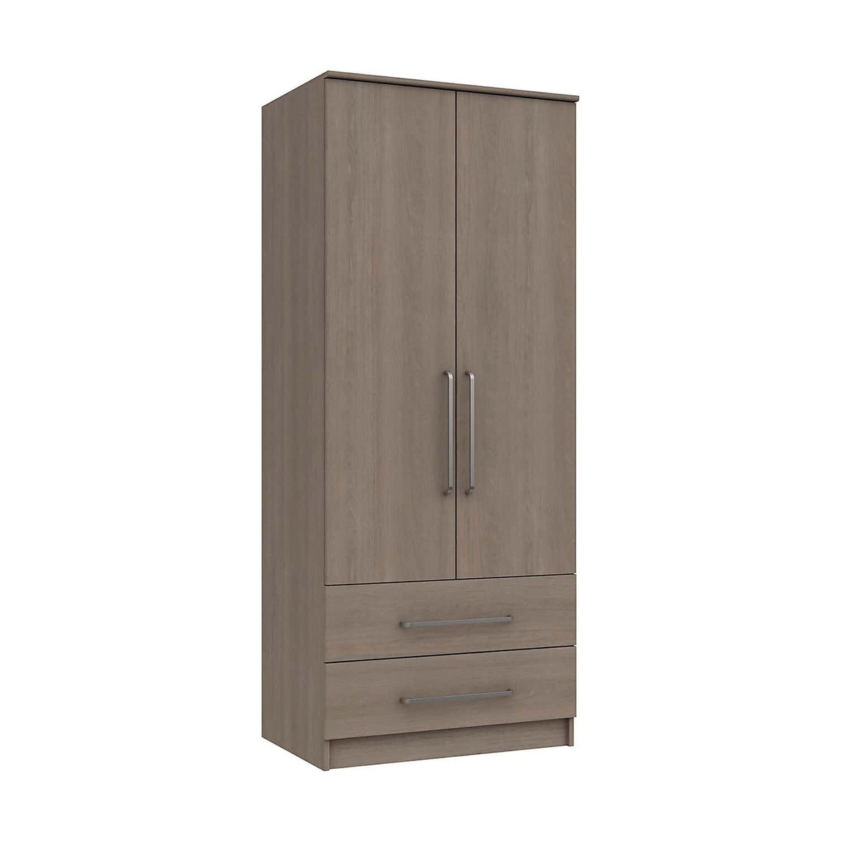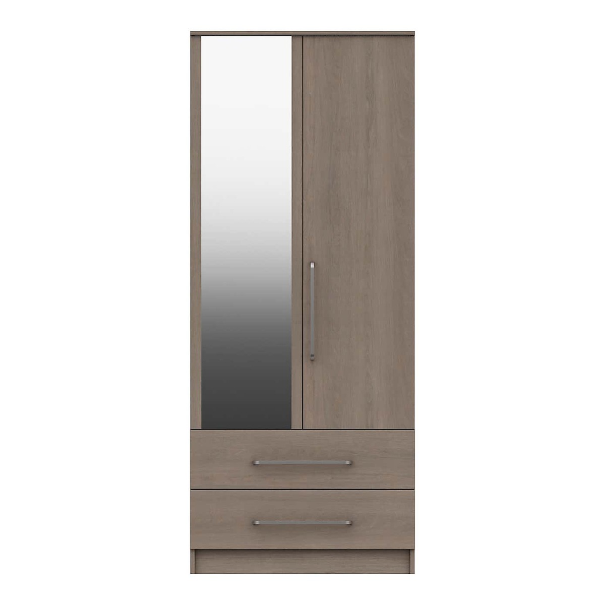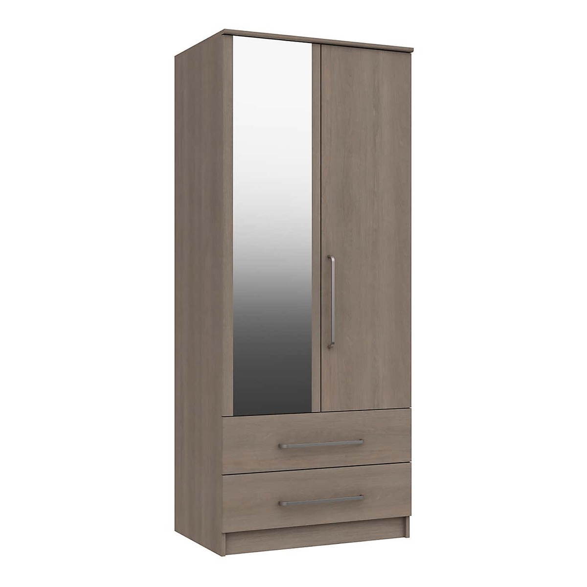 Boasting a beige oak effect finish with a realistic natural textured grain look, the Parker 2 Door Combi Wardrobe offers a contemporary design that would suit a wide range of décor styles. This stunning wardrobe is supplied fully assembled and features linen look drawer insides and wardrobe backs and soft radius metal effect handles. Complete with a spacious hanging area, and two large drawers with 8mm heavy duty bases and easy glide metal runners, this wardrobe would be a practical addition to any home and also comes with the option for a full length mirrored door. This wardrobe also comes with the option for a full length mirrored door for added convenience.