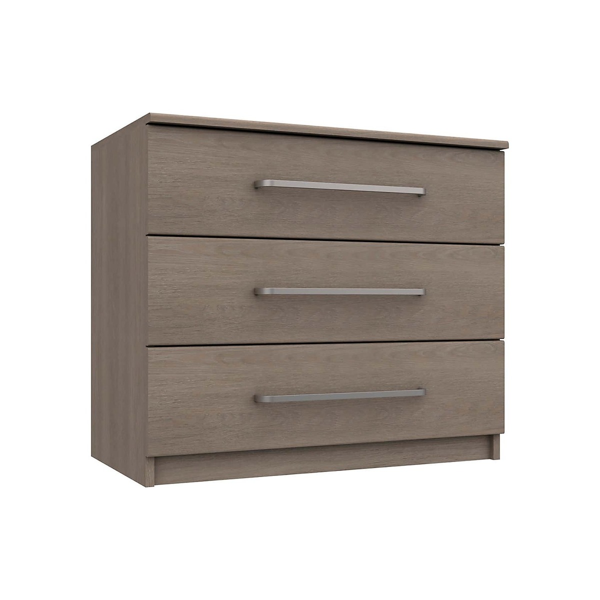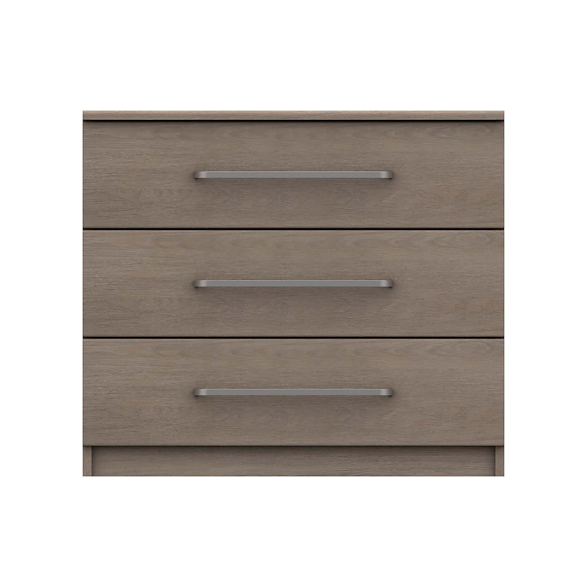 Boasting a beige oak effect finish with a realistic natural textured grain look, the Parker 3 Drawer chest offers a contemporary design that would suit a wide range of décor styles. This stunning chest of drawers is supplied fully assembled and features linen look drawer insides and soft radius metal effect handles. Complete with three large drawers with 8mm heavy duty bases and easy glide metal runners, this chest would make a practical addition to any home.