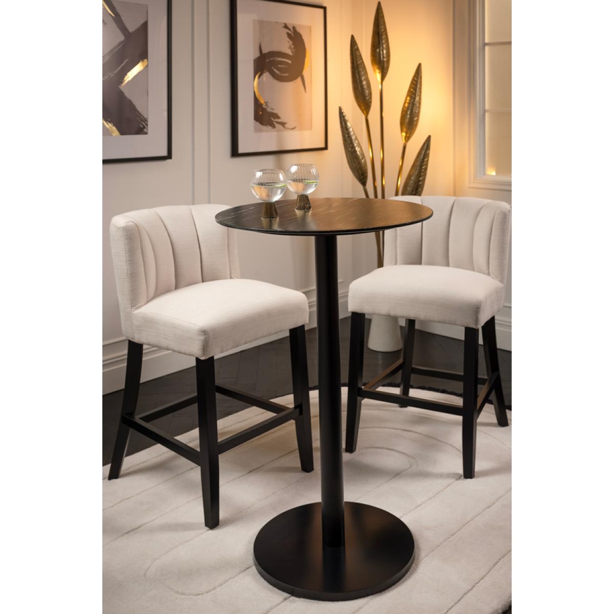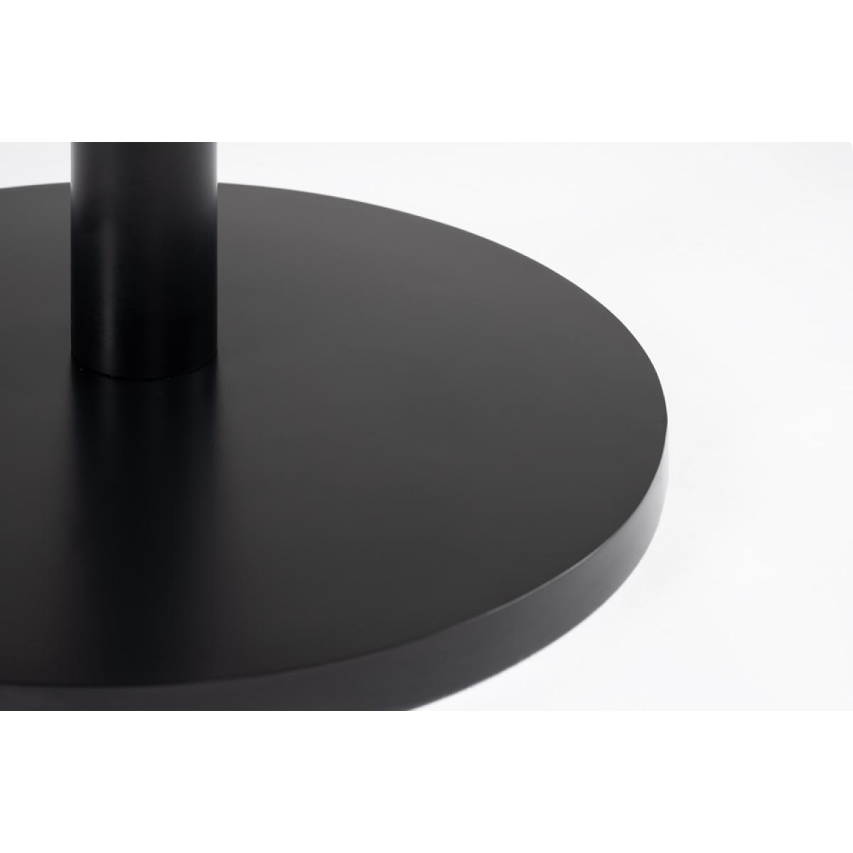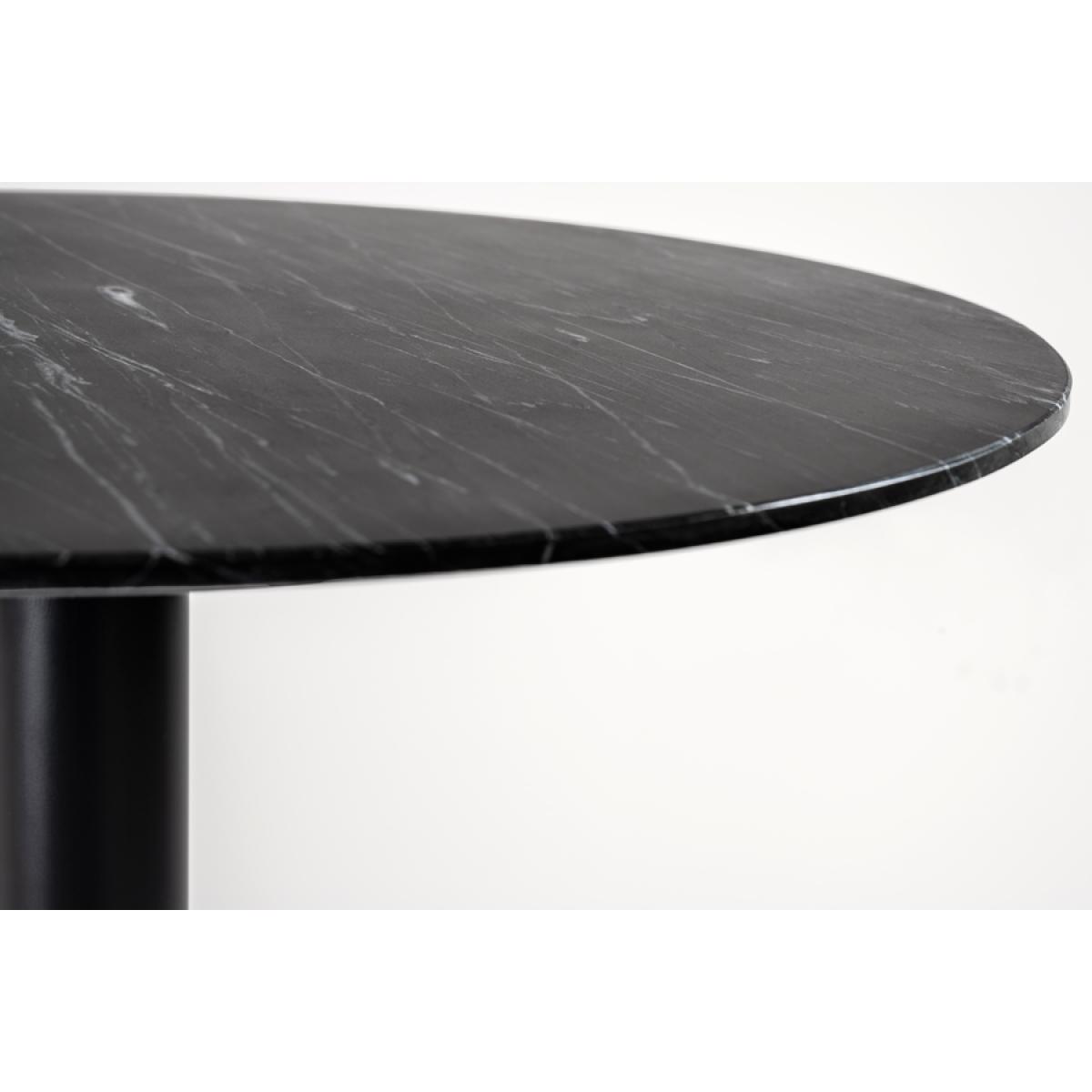 Chic, timeless, understated, elegant - this is our 'little black dress' of the bar table world. Weighted spun aluminium base with matt black powder-coated finish. Solid marble top with painted wooden support to the underside. Simple assembly required. Due to its natural formation, every piece of marble is unique, there may be subtle differences in colour, tone and composition from the image shown. On occasions fissures may be present, these are natural characteristics and do not compromise the marble’s structural integrity. Wipe with a soft, dry cloth - avoid using chemical-based cleaners as these could damage the finish.