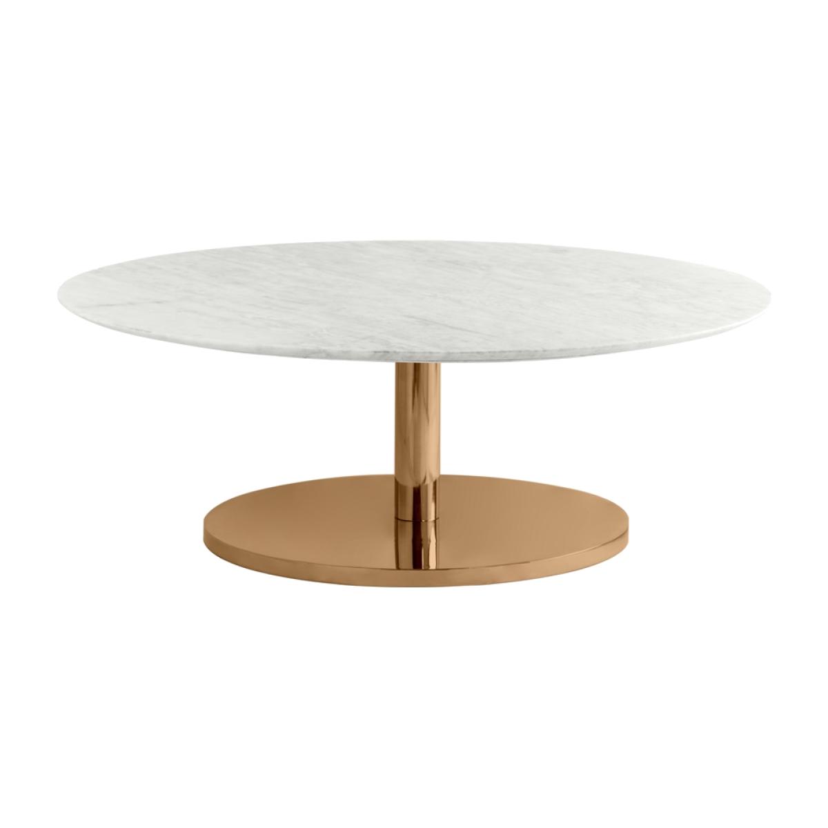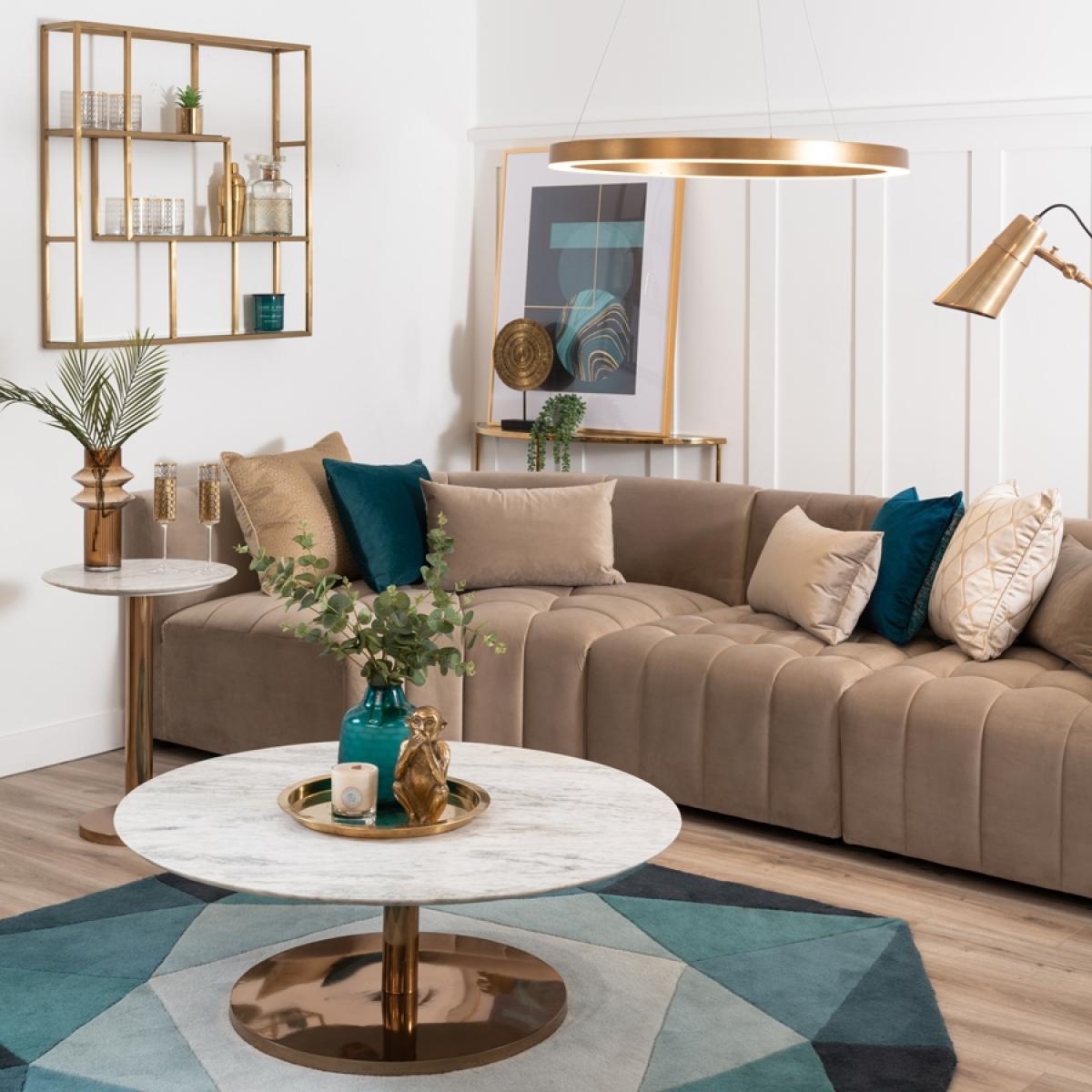 A timeless, classic coffee table. Weighted spun aluminium base with brass finish. Solid marble top with painted wooden support to underside. Simple assembly required. Due to its natural formation every piece of marble is unique. There may be subtle differences in colour, tone and composition from the image shown. On occasions fissures may be present, these are natural characteristics and do not compromise the marble’s structural integrity. Wipe with a soft, dry cloth. Avoid using chemical based cleaners as these could damage the finish.