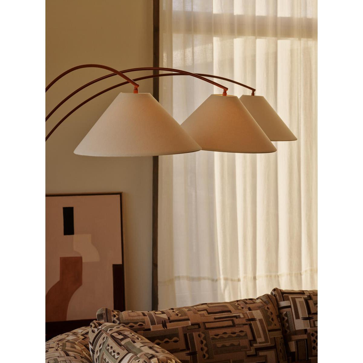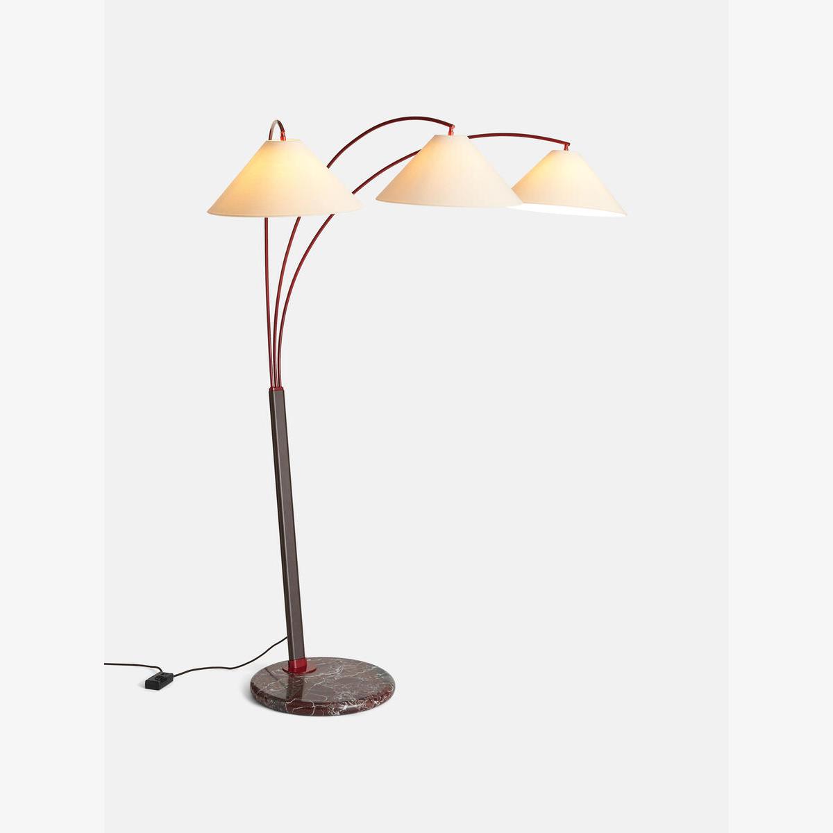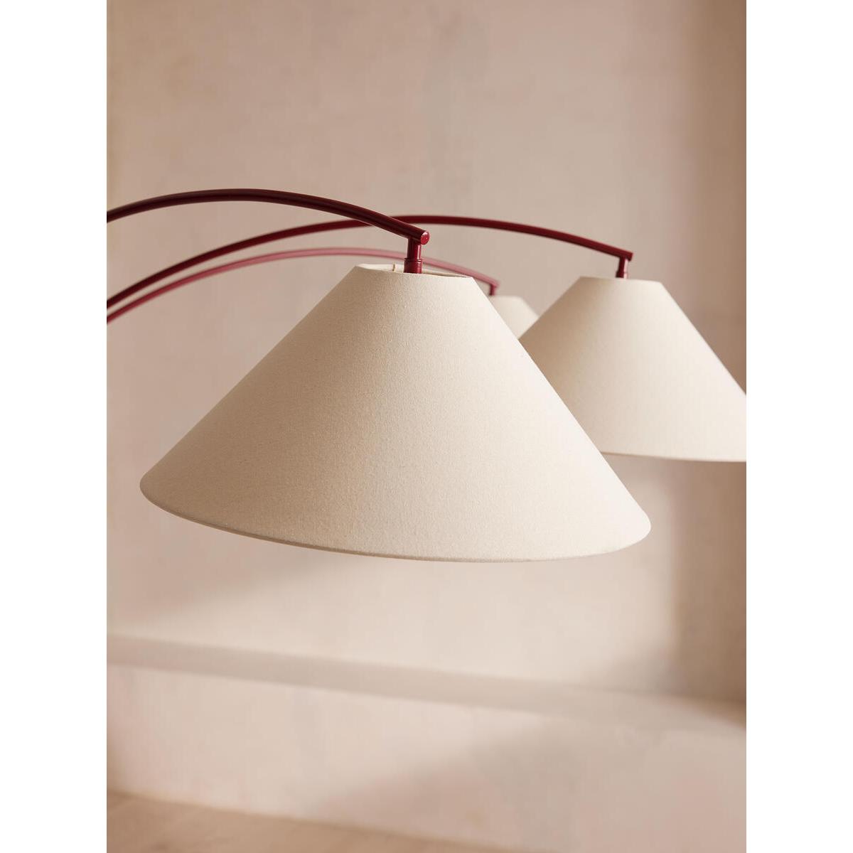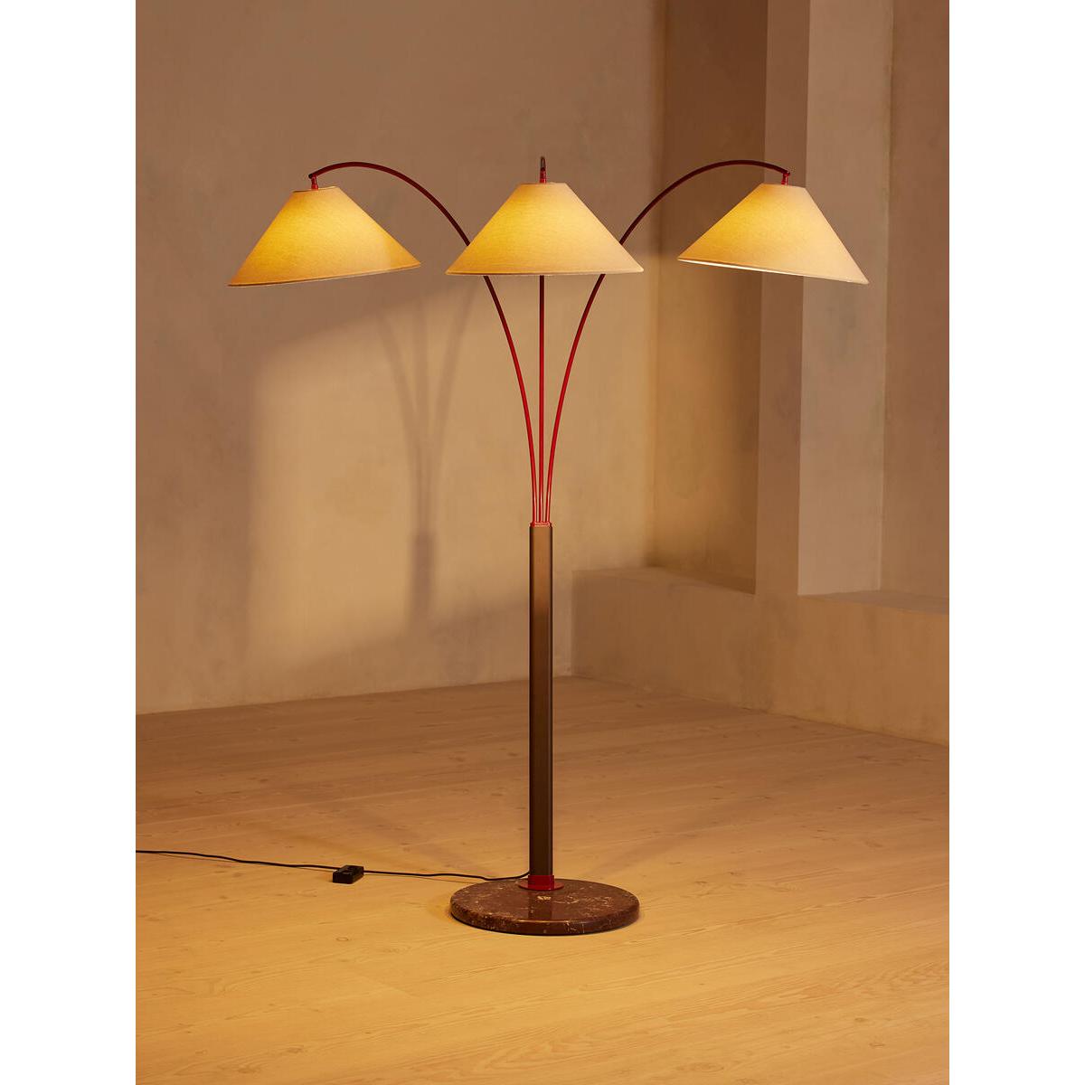The Parker lamp is designed to be a focal point in any room. Inspired by the 1960s interiors of White City House, a multi-head arched frame has been given a red lacquered finish for a touch of colour, with three diffused cream linen lampshades that can be removed for a brighter light setting. Adjustable arms allow this light to adapt to your living space, anchored by a honed Rosso Levanto marble base. Multi-head floor lamp Honed Rosso Levanto marble base Deep red to black with white veining Natural variation in the stone means no two are the same Red lacquered frame Three diffused linen lampshades Recommended bulb:Tala 6W Globe LED Inspired by White City House